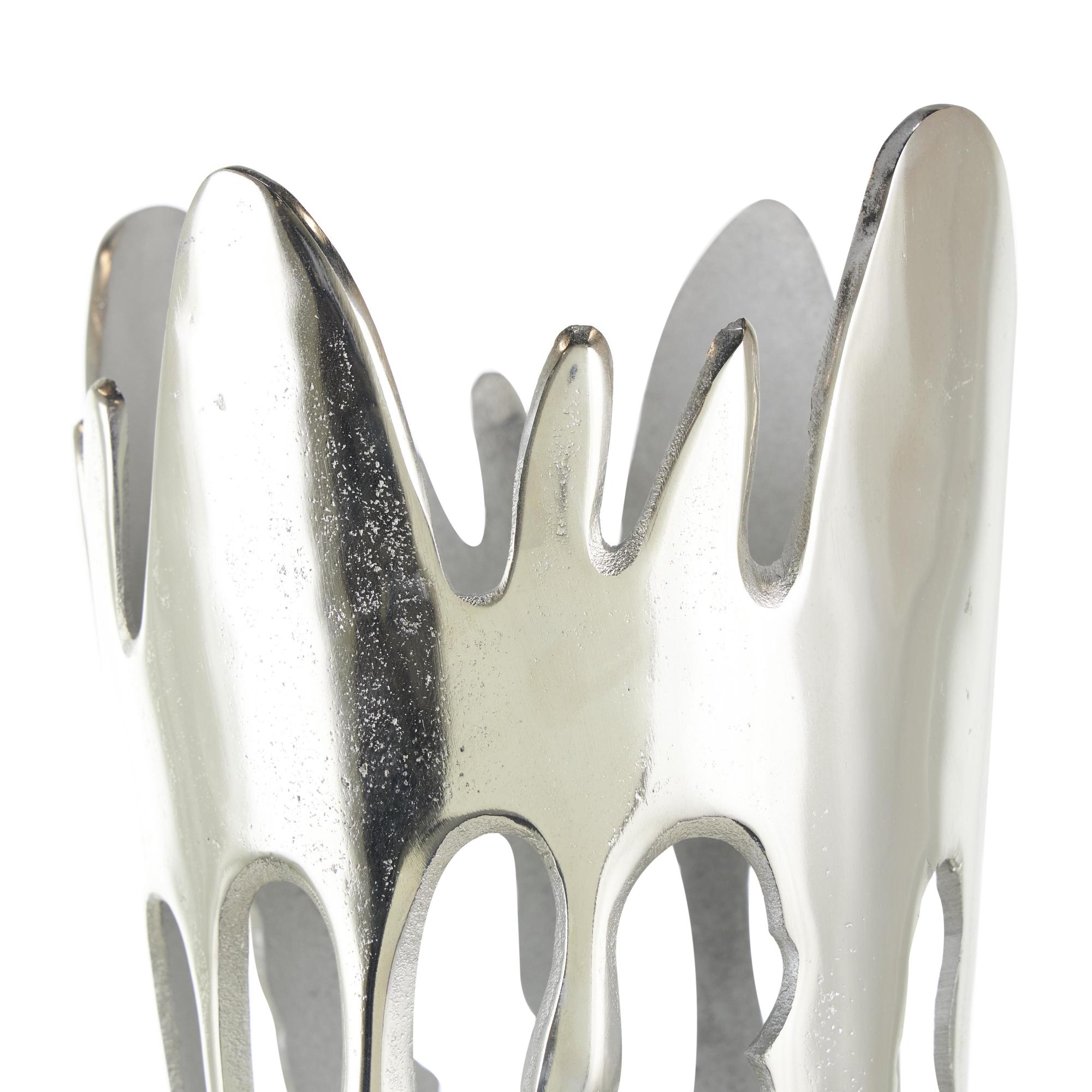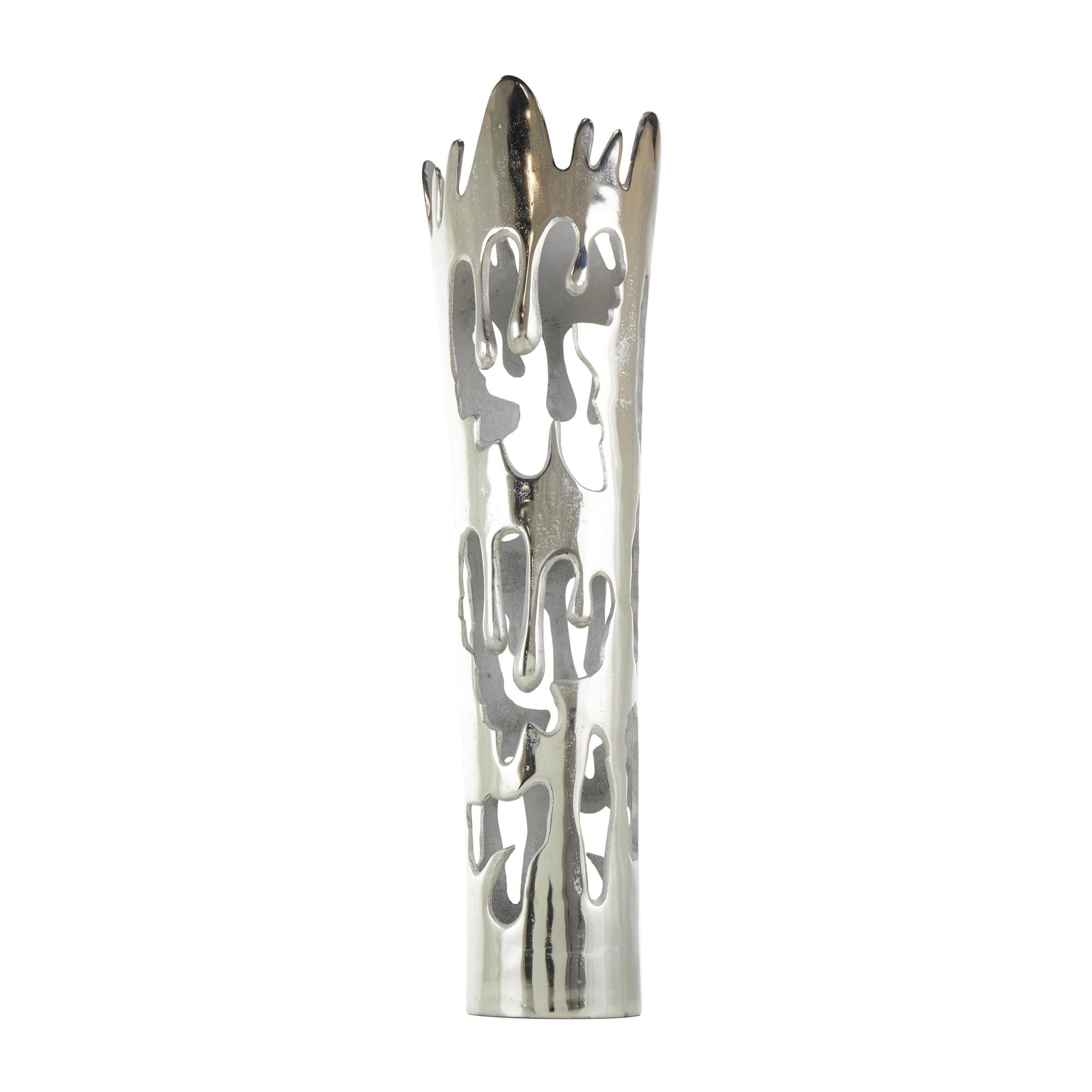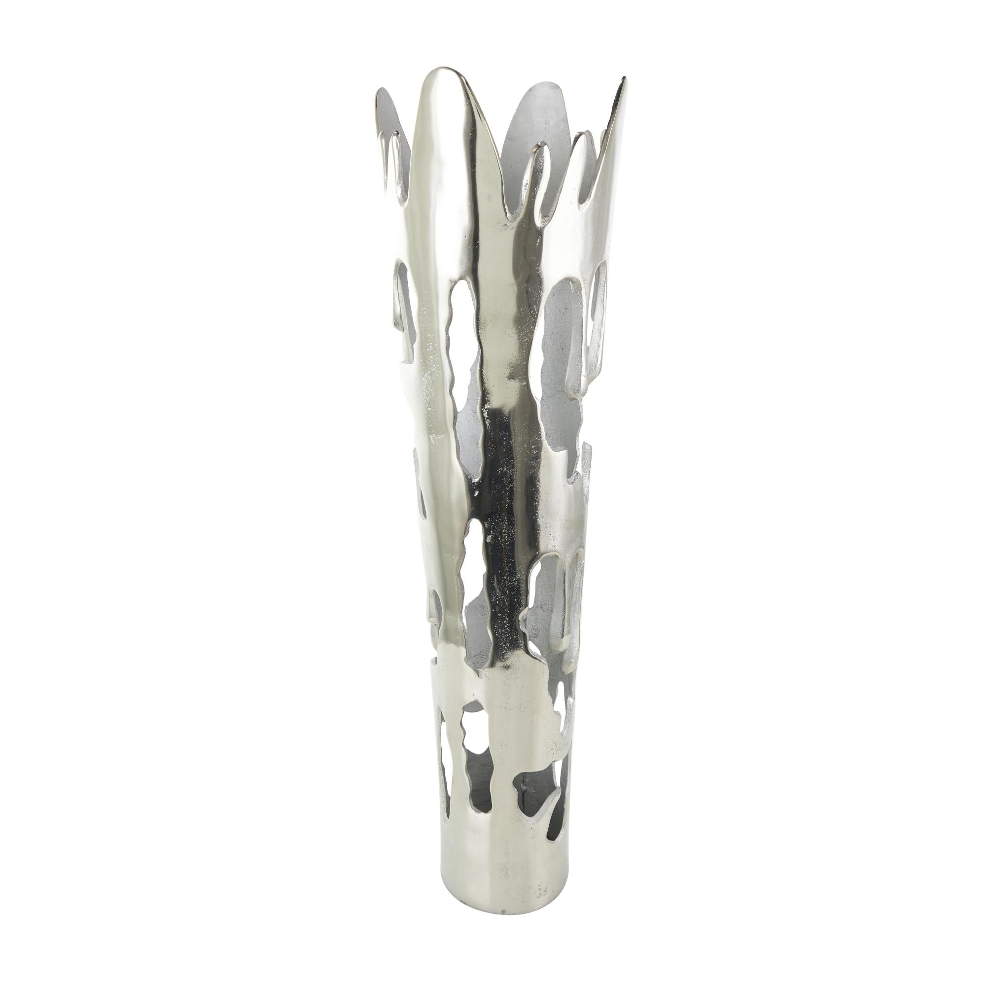 •This aluminum vase boasts a melting body design that makes it perfect to use as a standalone decorative piece