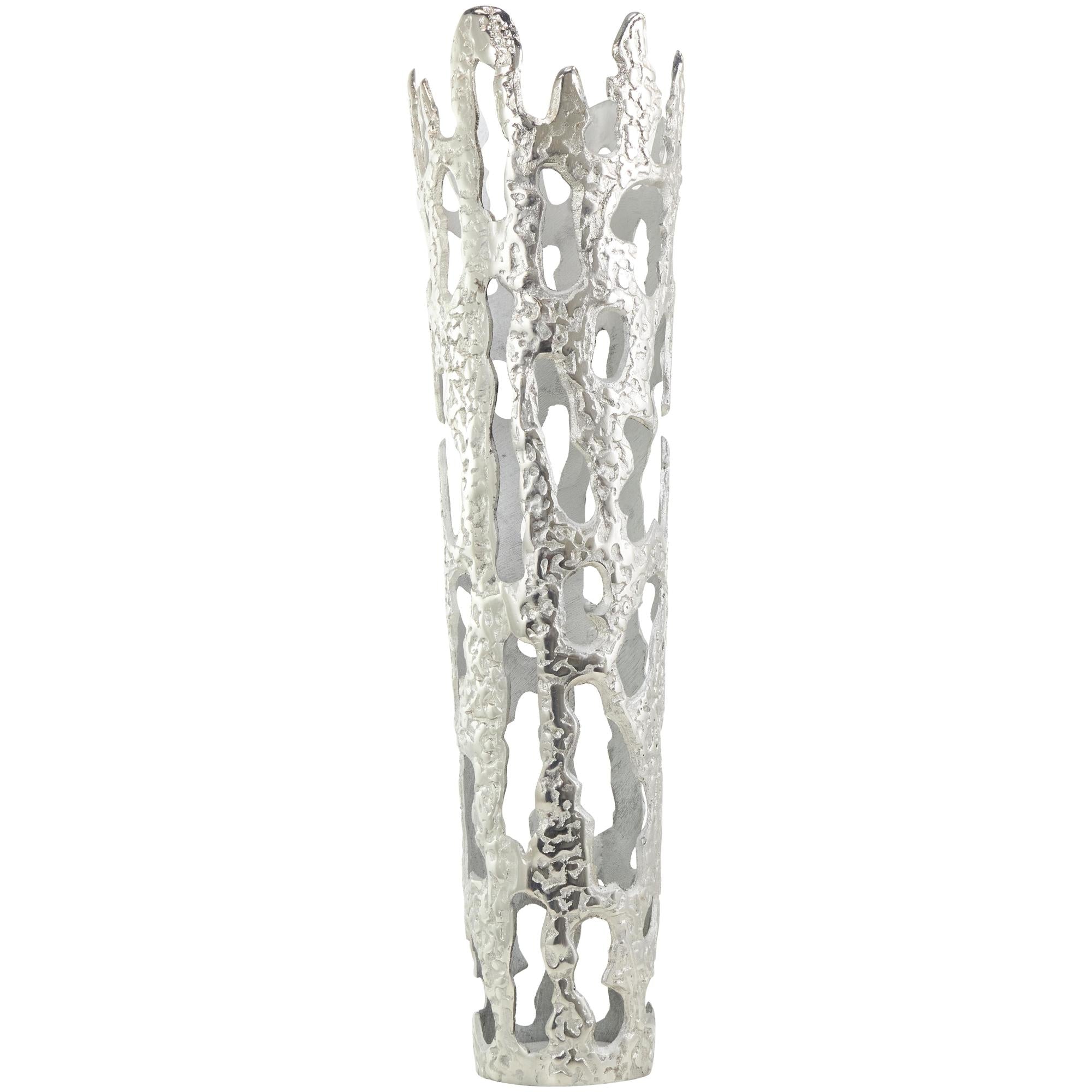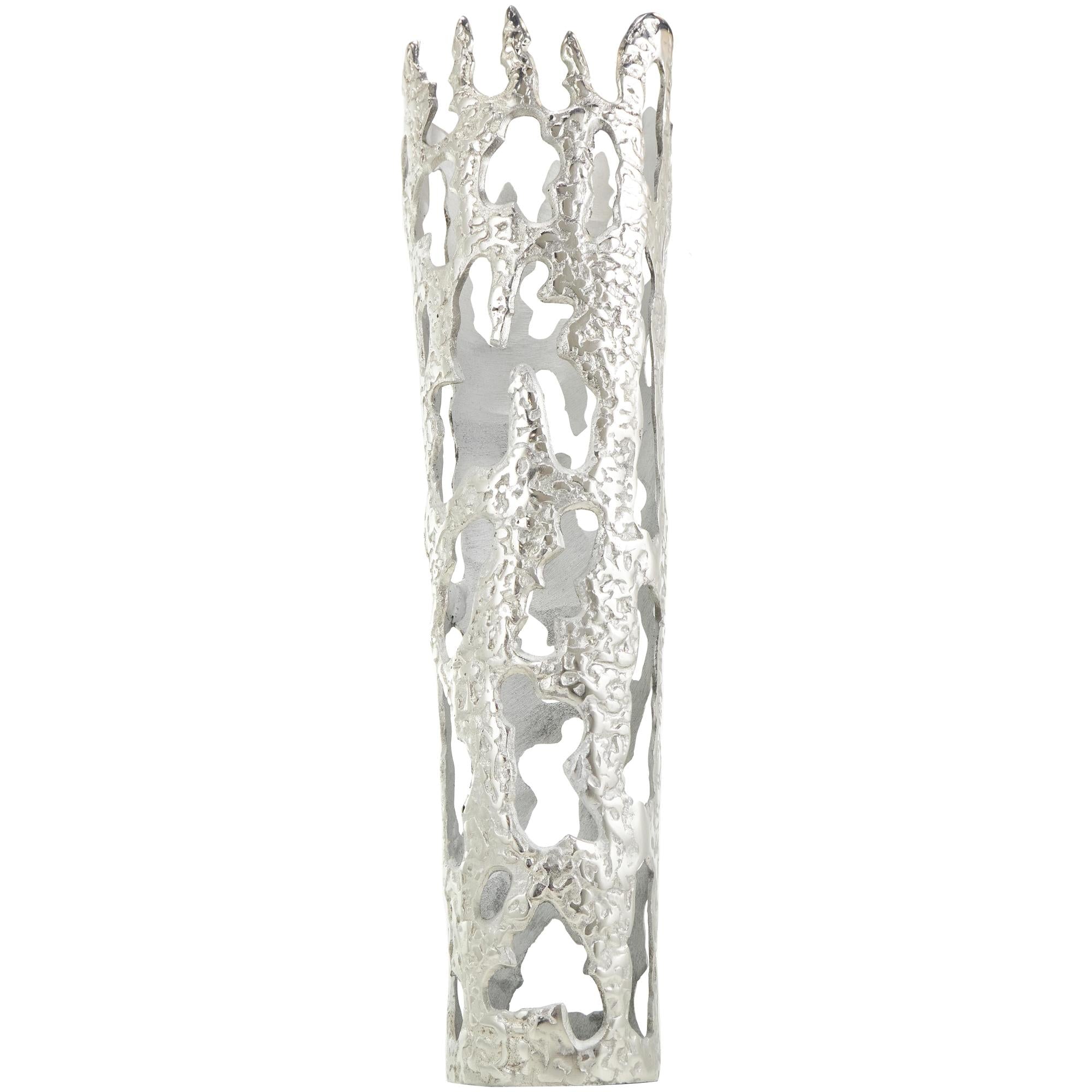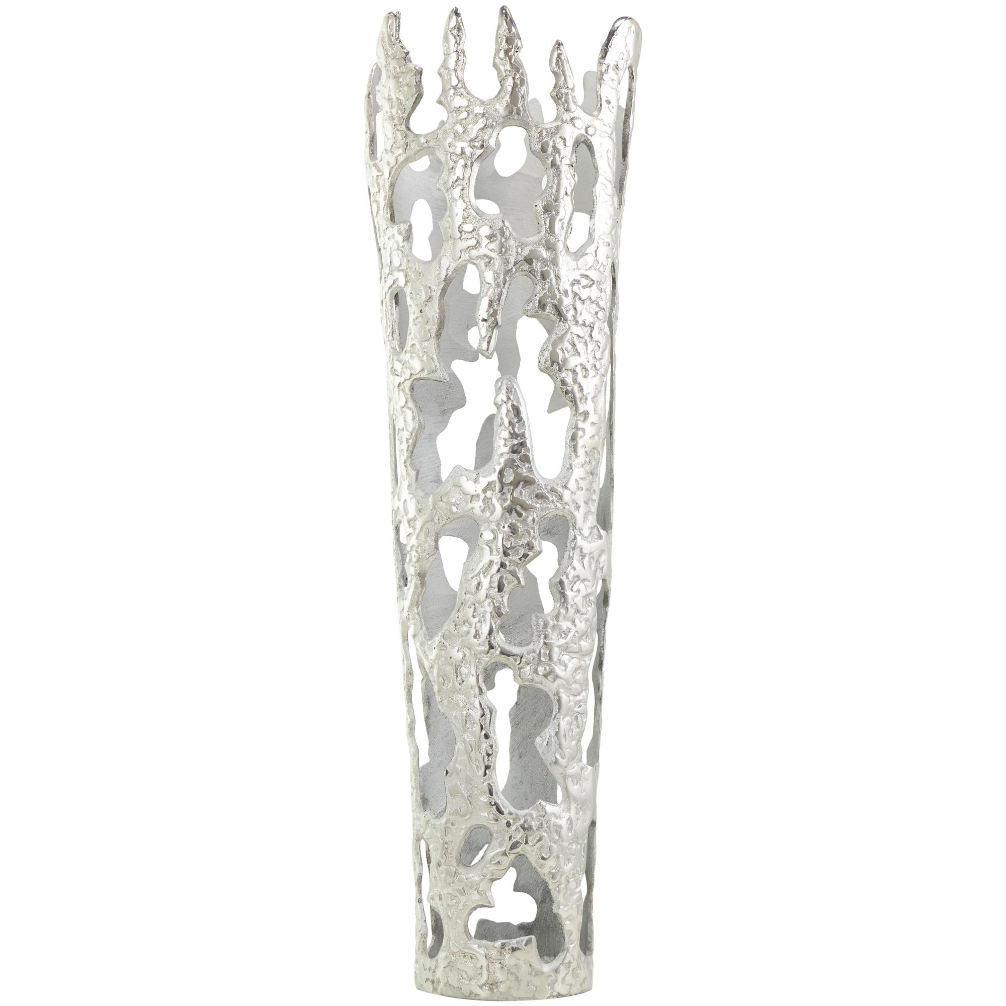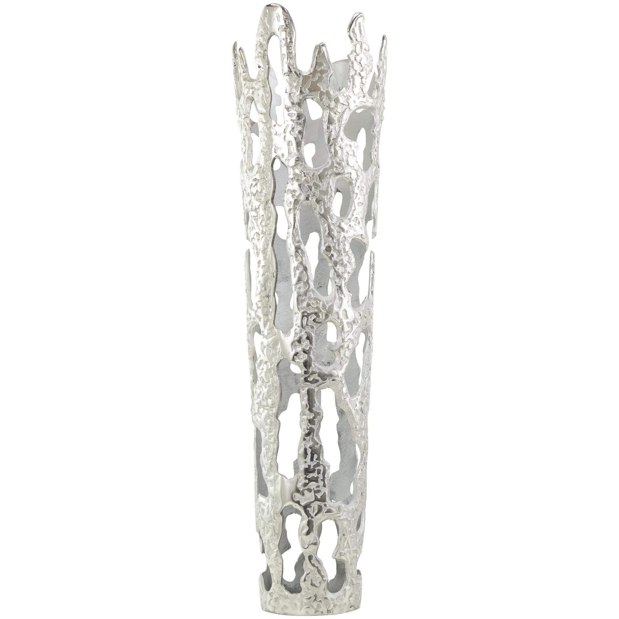 •This aluminum vase boasts a melting body design that makes it perfect to use as a standalone decorative piece