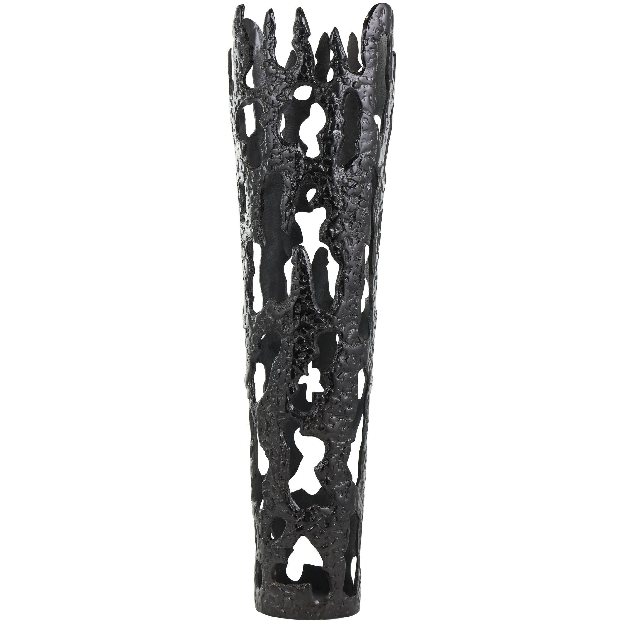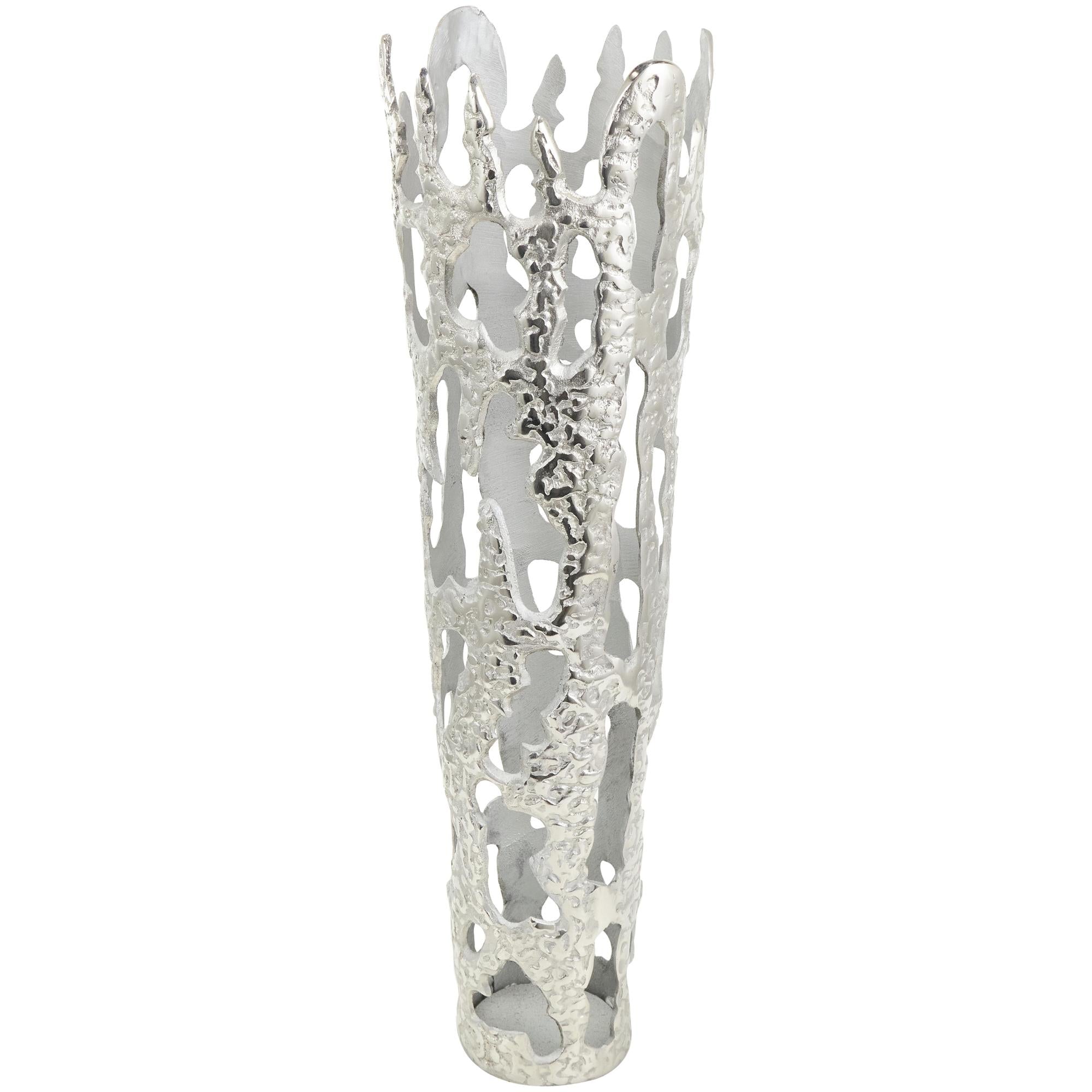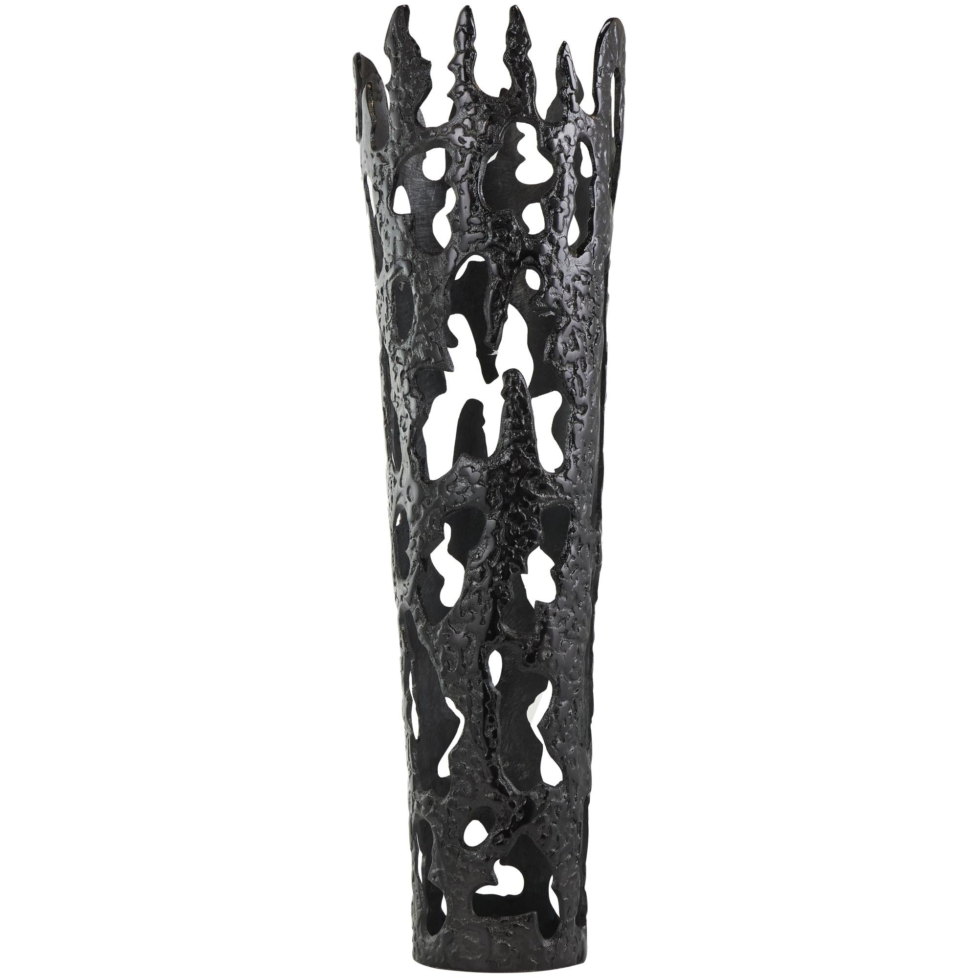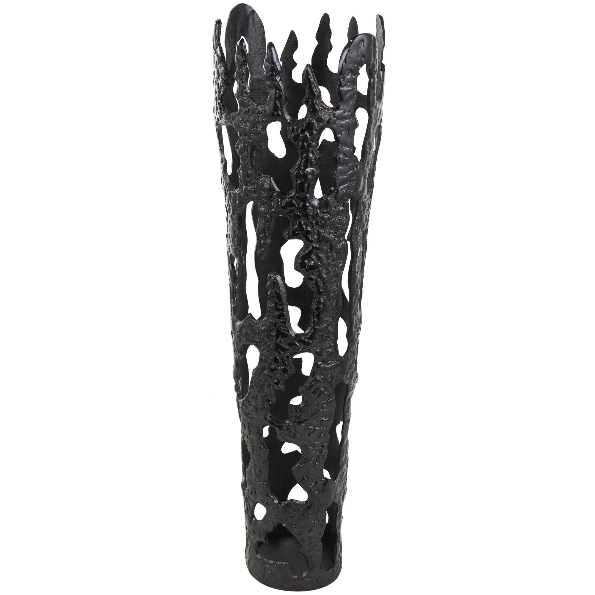 •The construction of this contemporary vase for home decor is meticulous, featuring aluminum molded into a sturdy design that looks like molten lava dripping down