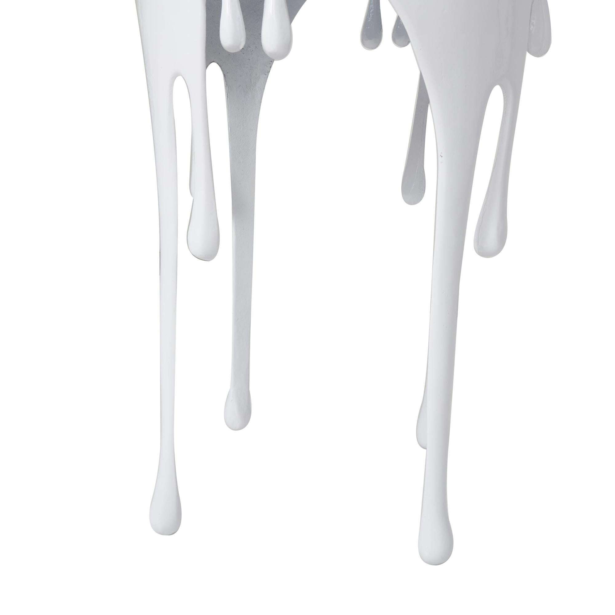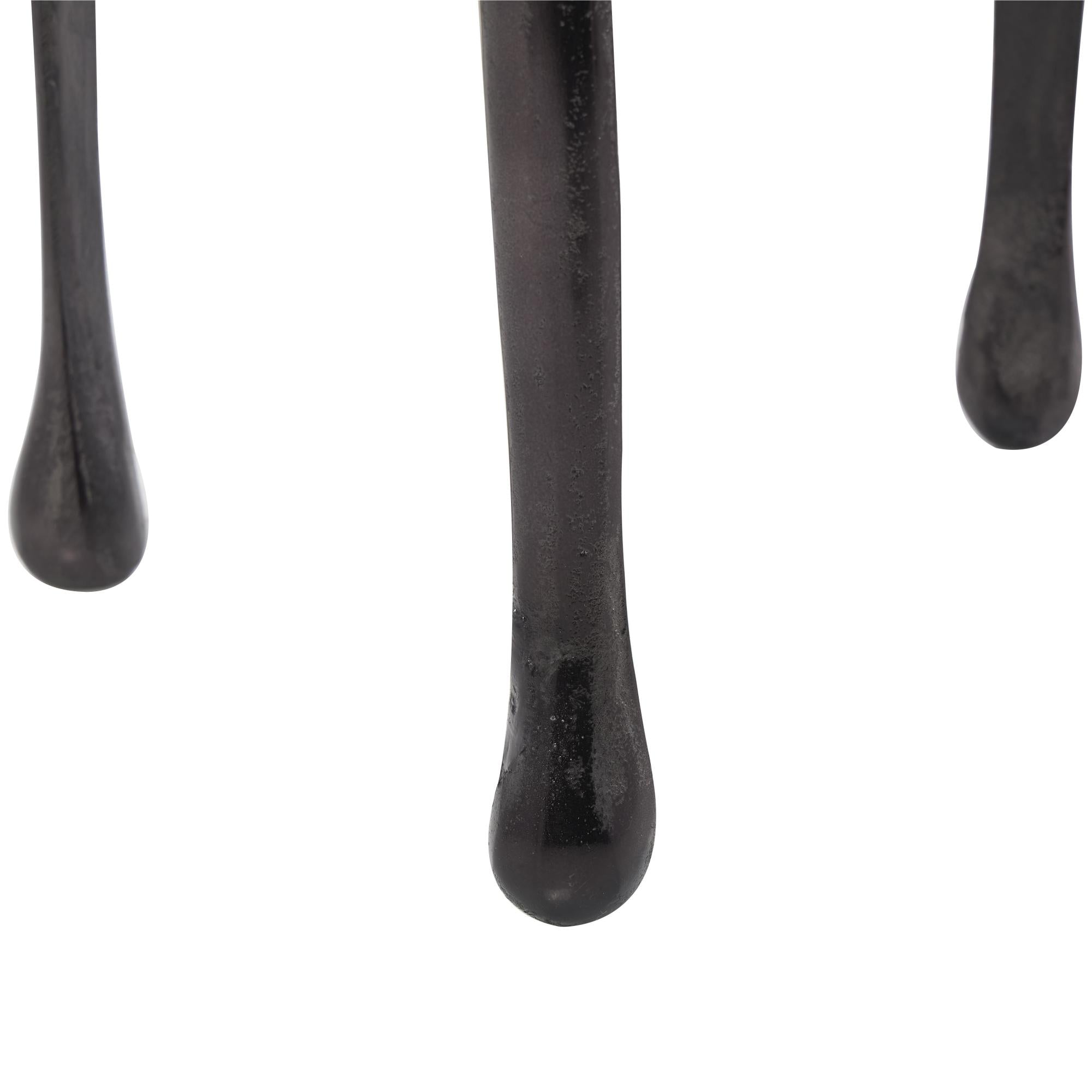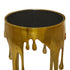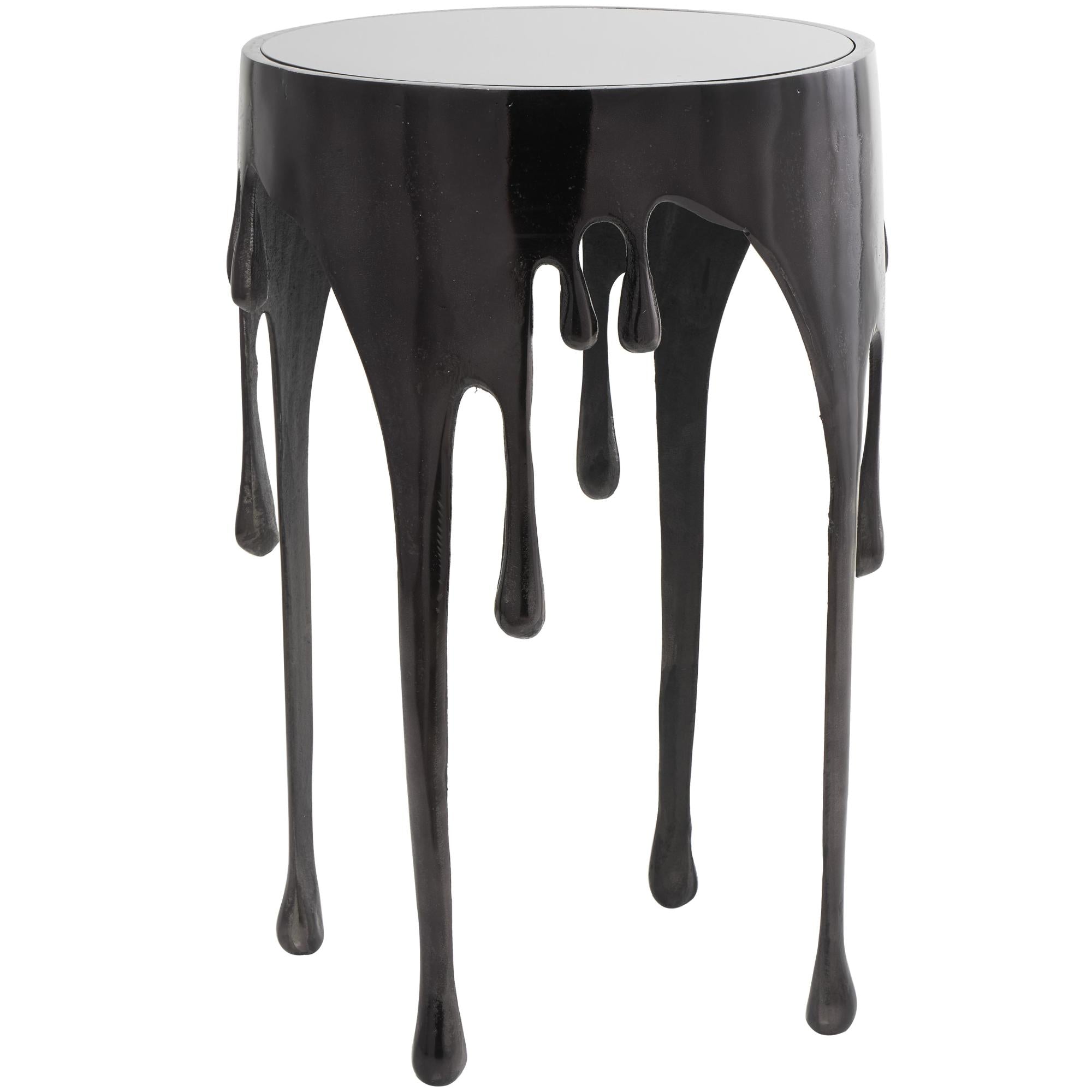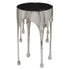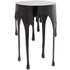 •The aluminum accent table stands out with its beautiful sculptural base that features a dripping metal silhouette serving as both a striking embellishment and a solid structure, topped by dark glass