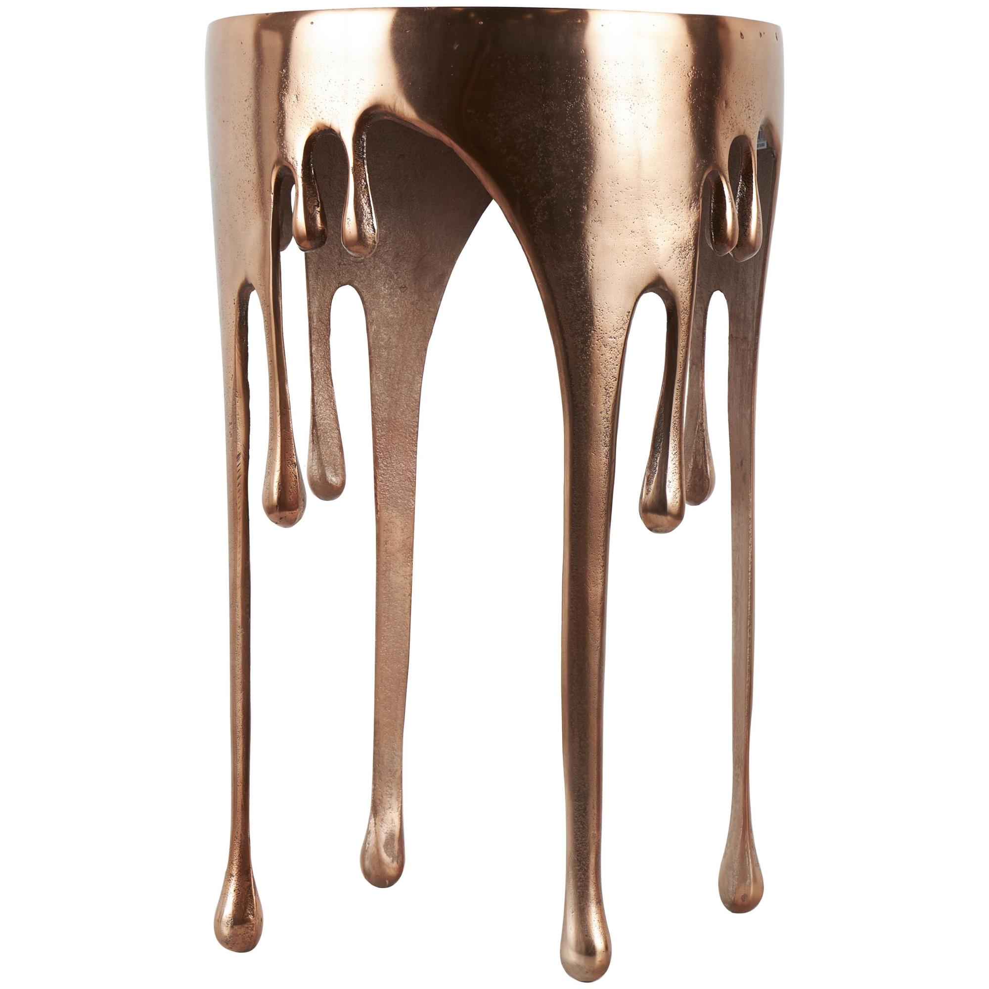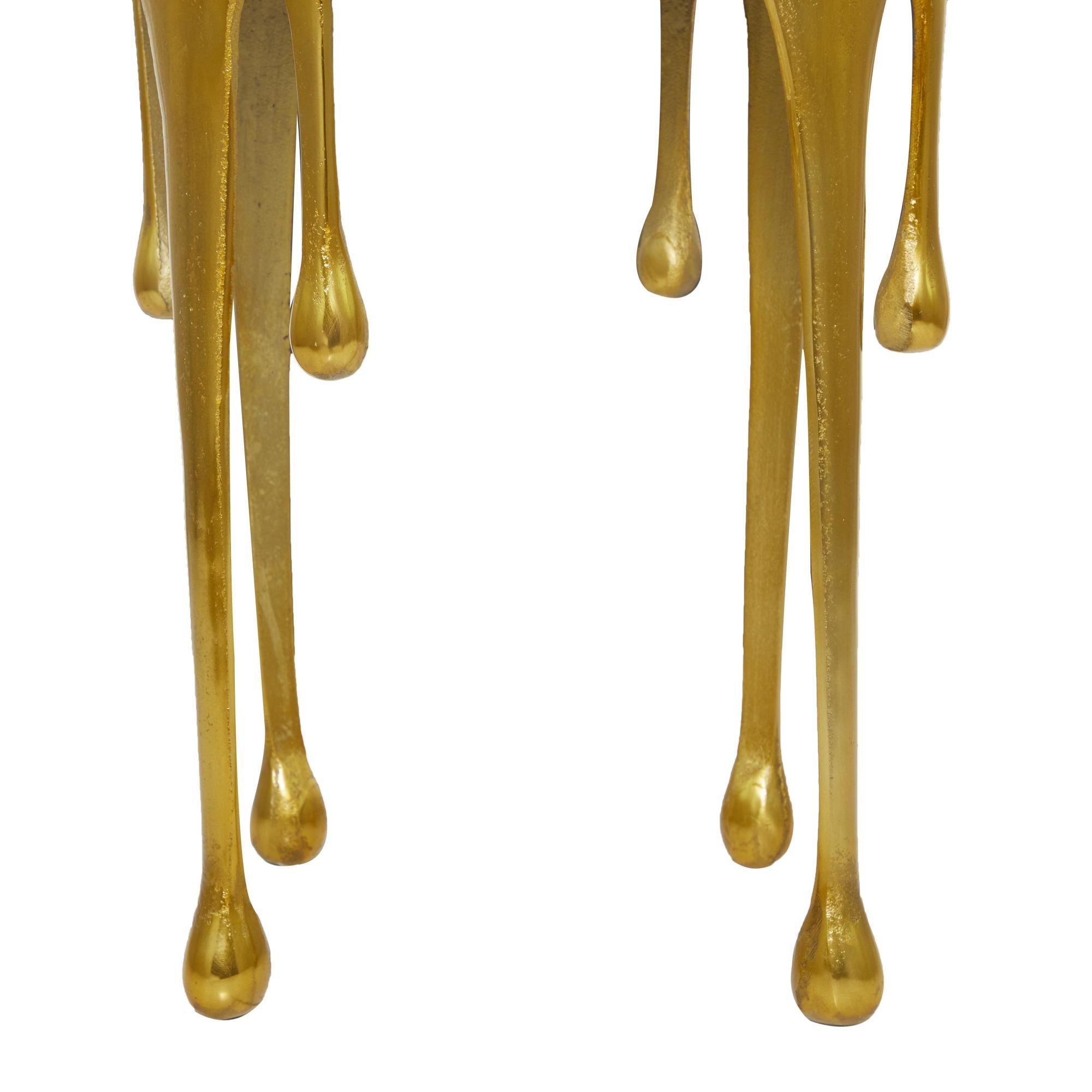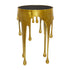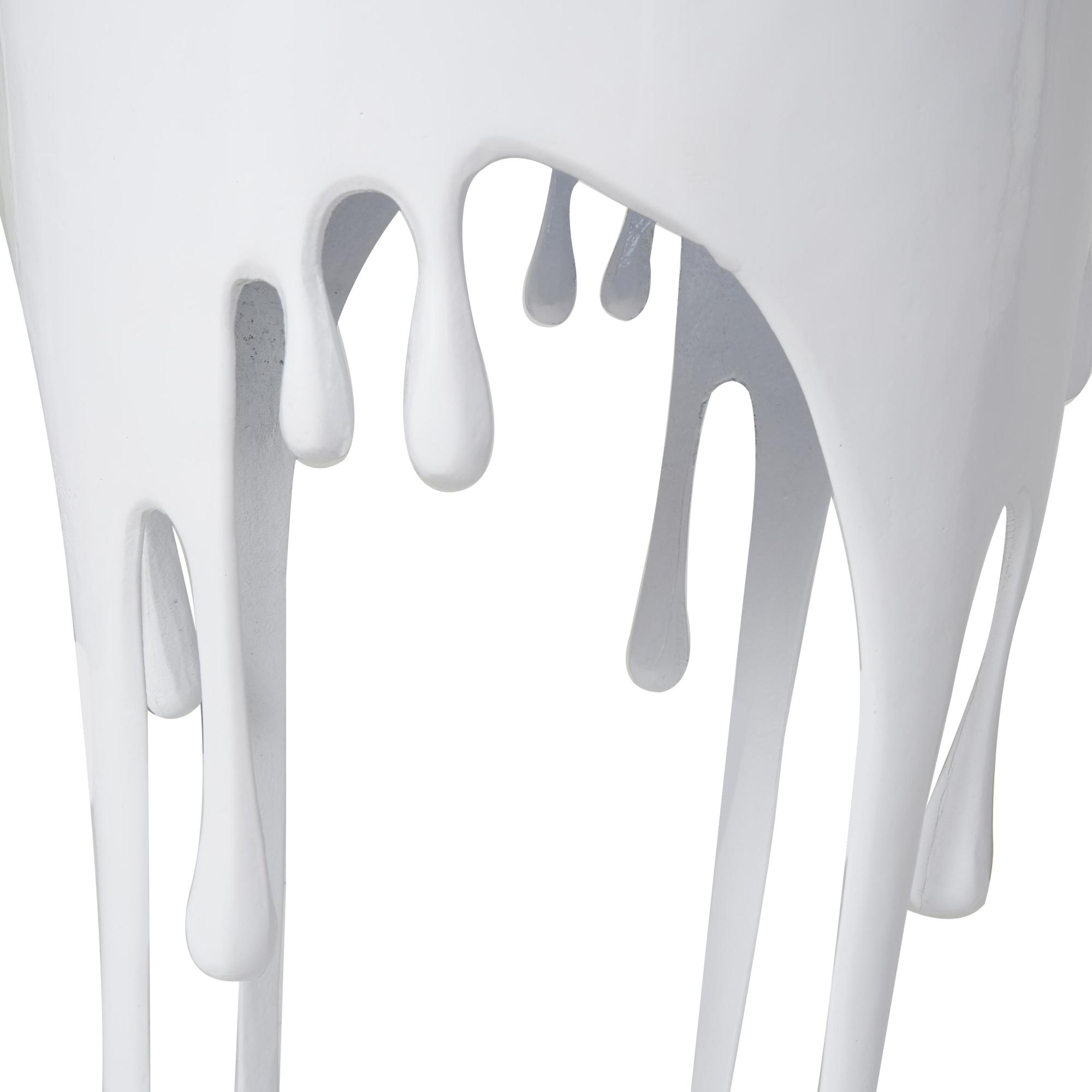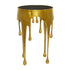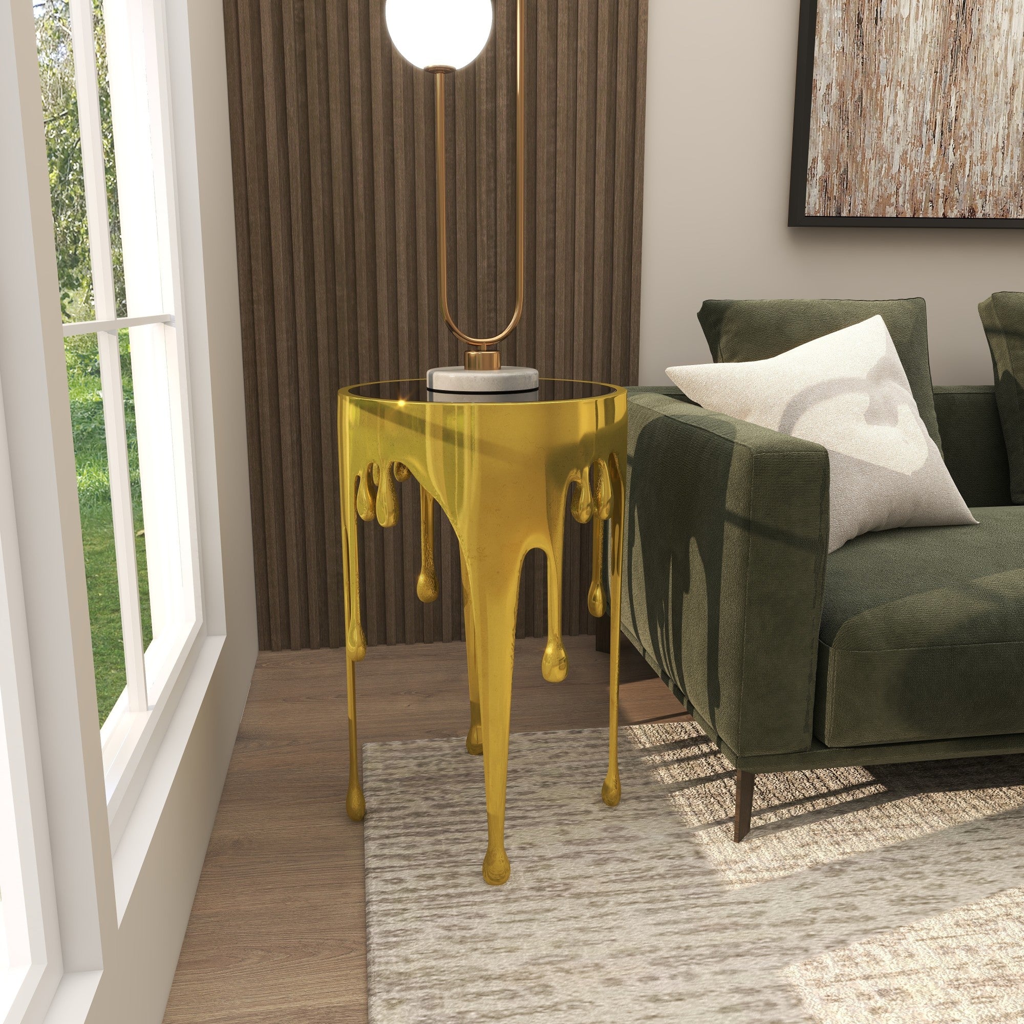 •The aluminum accent table stands out with its beautiful sculptural base that features a dripping metal silhouette serving as both a striking embellishment and a solid structure, topped by dark glass