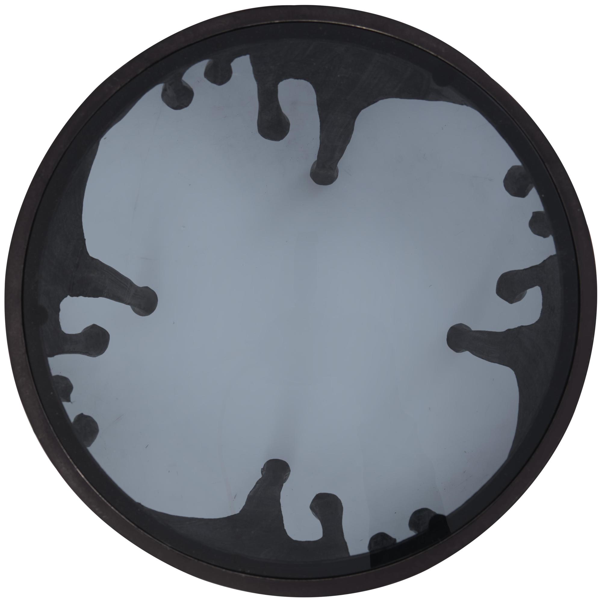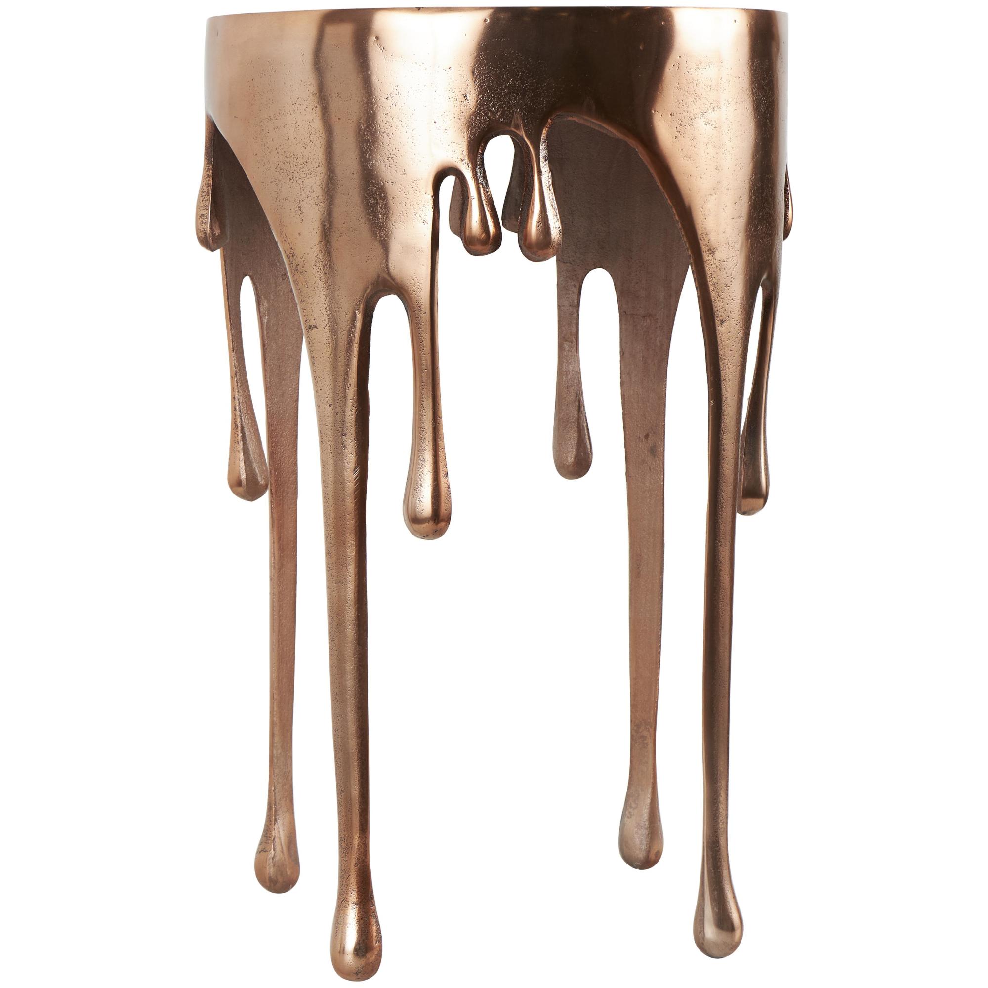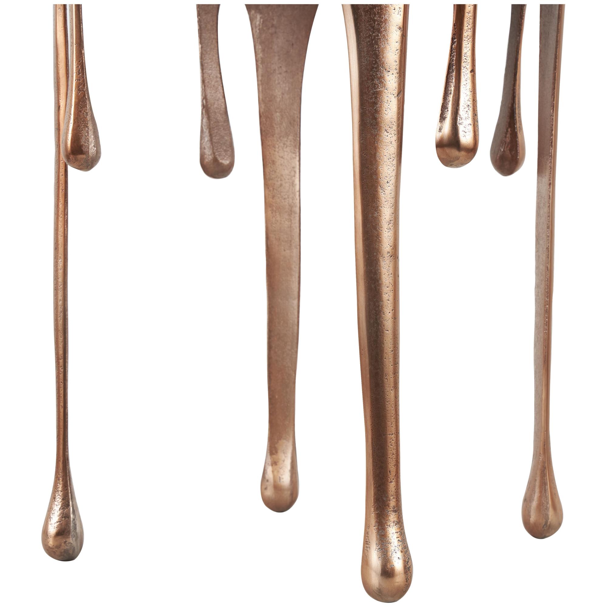 Abstract Aluminum Metal Drip Side End Accent Table with Melting Design and Shaded Glass Top