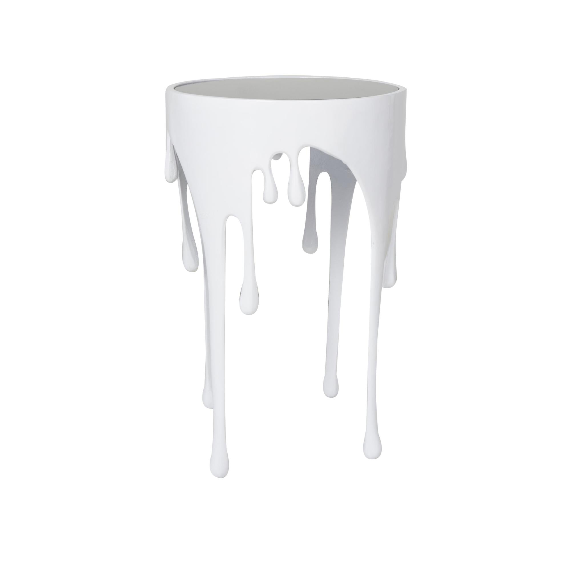 •The polished living room table takes on an intriguing form with its round shape and 3D sculpted dripping paint body, legs, and feet design that gives off a floating illusion
