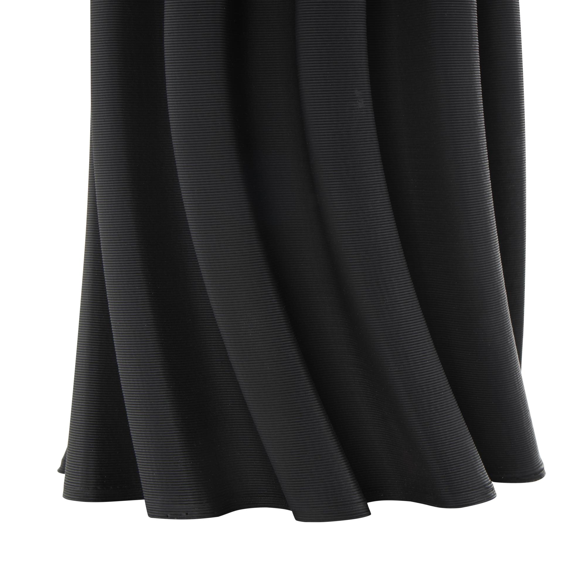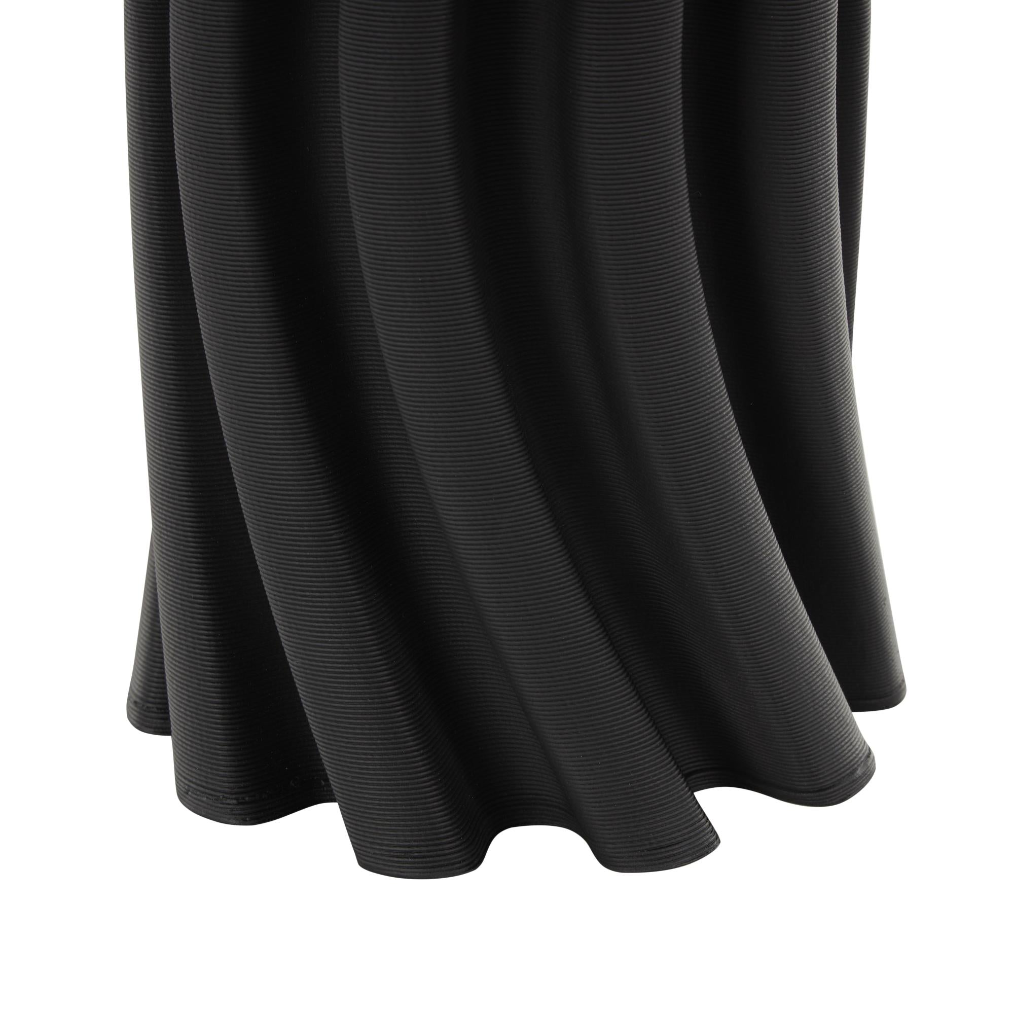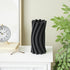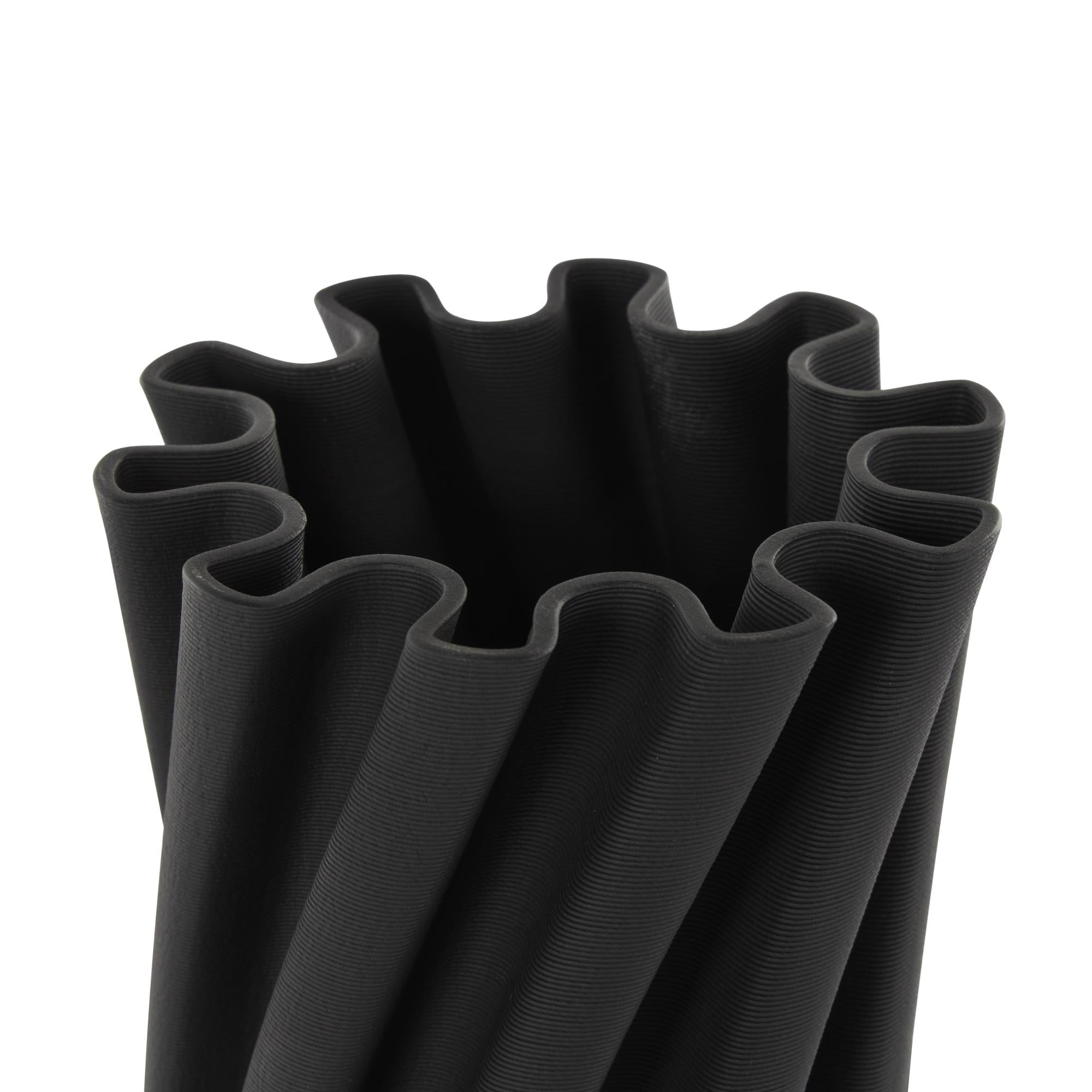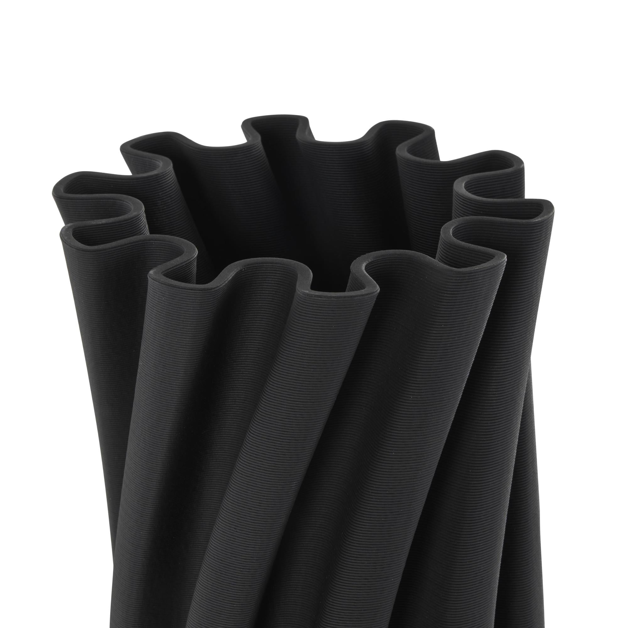 Abstract Black Ceramic Curvy Ribbed Decorative Vase with Floral Shaped Rim