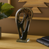 •Polished home decor figurine has a unique shape on a square-shaped base, three cutouts in the figurine, and an abstract pattern that adds depth and interest to its overall design
