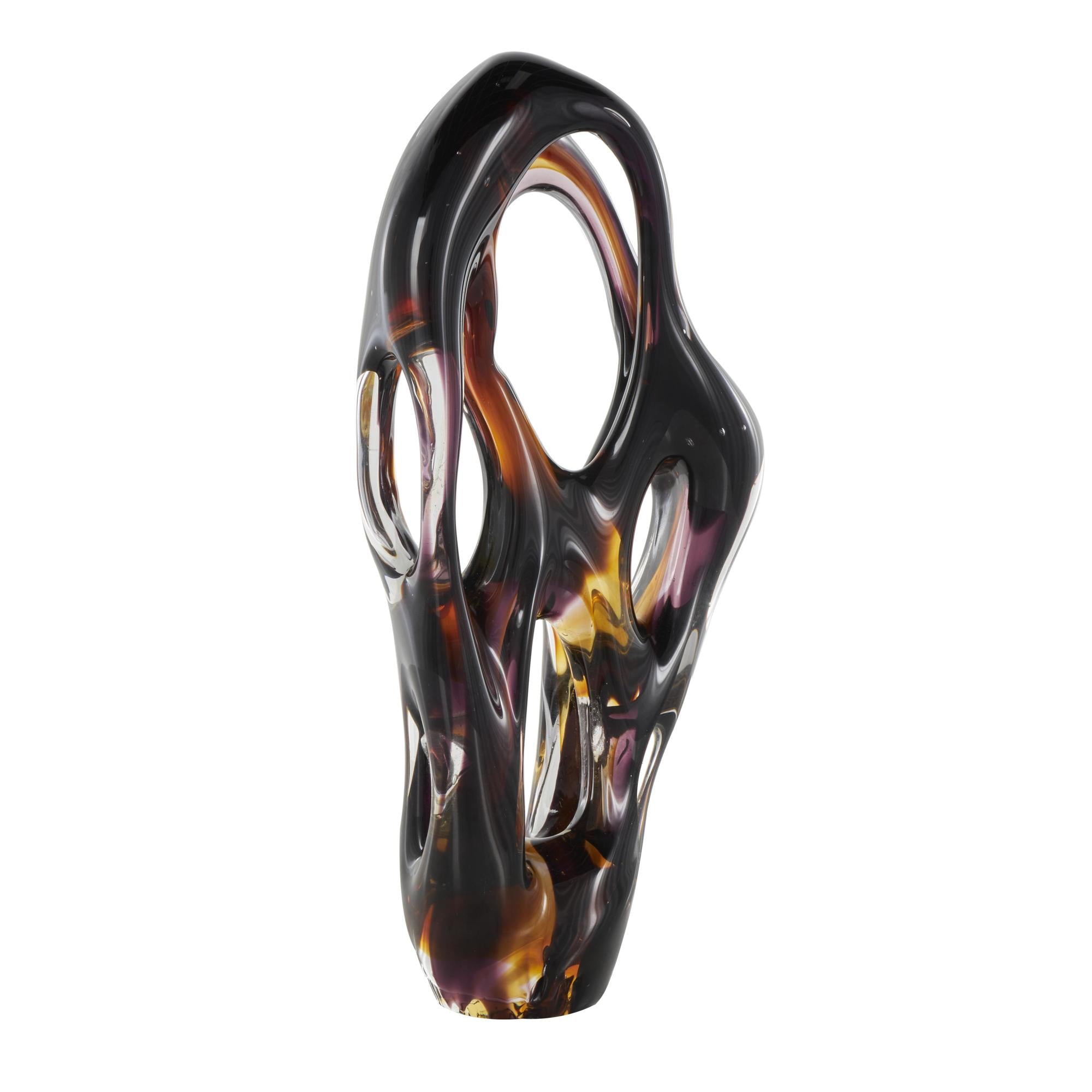 •This contemporary accent statue is molded with glass, pulled to form the abstract shape and tinted with amber accents, which demonstrates excellent craftsmanship