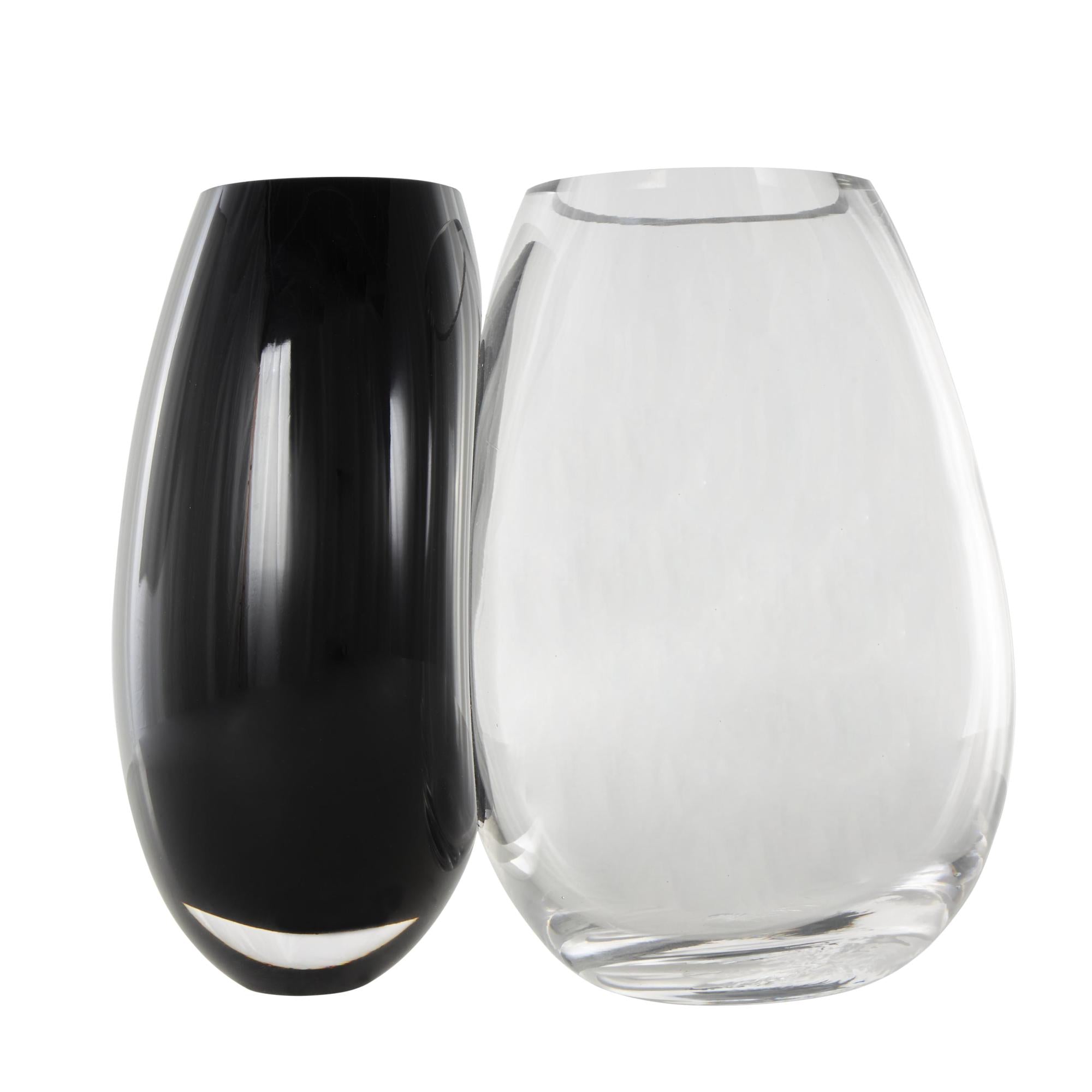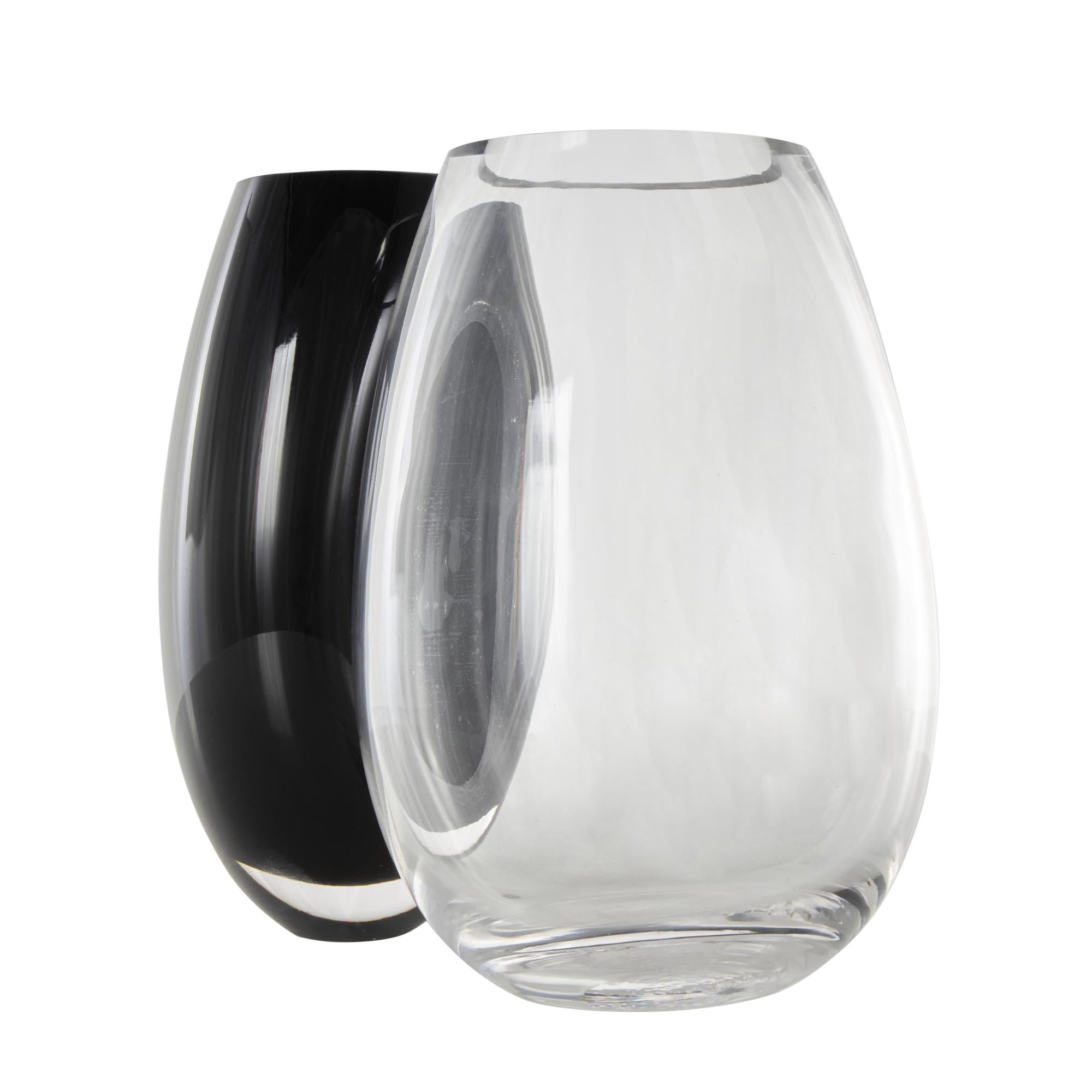 Abstract Black Recycled Glass Handmade Rounded 2 Opening 2 Opening Decorative Vase with Clear Glass Accent