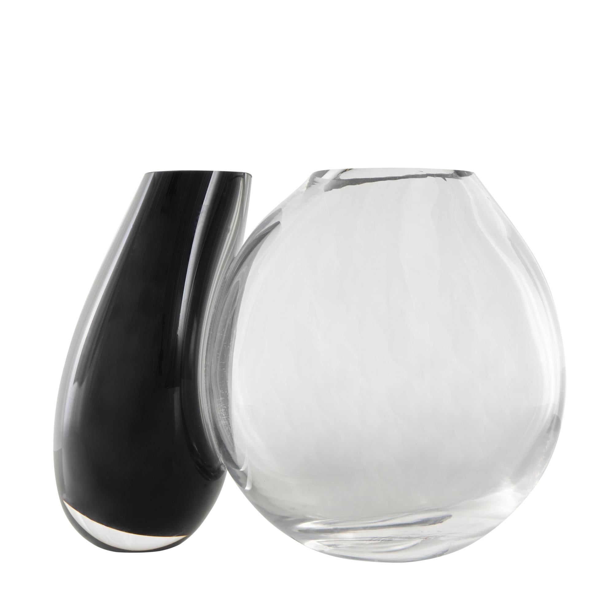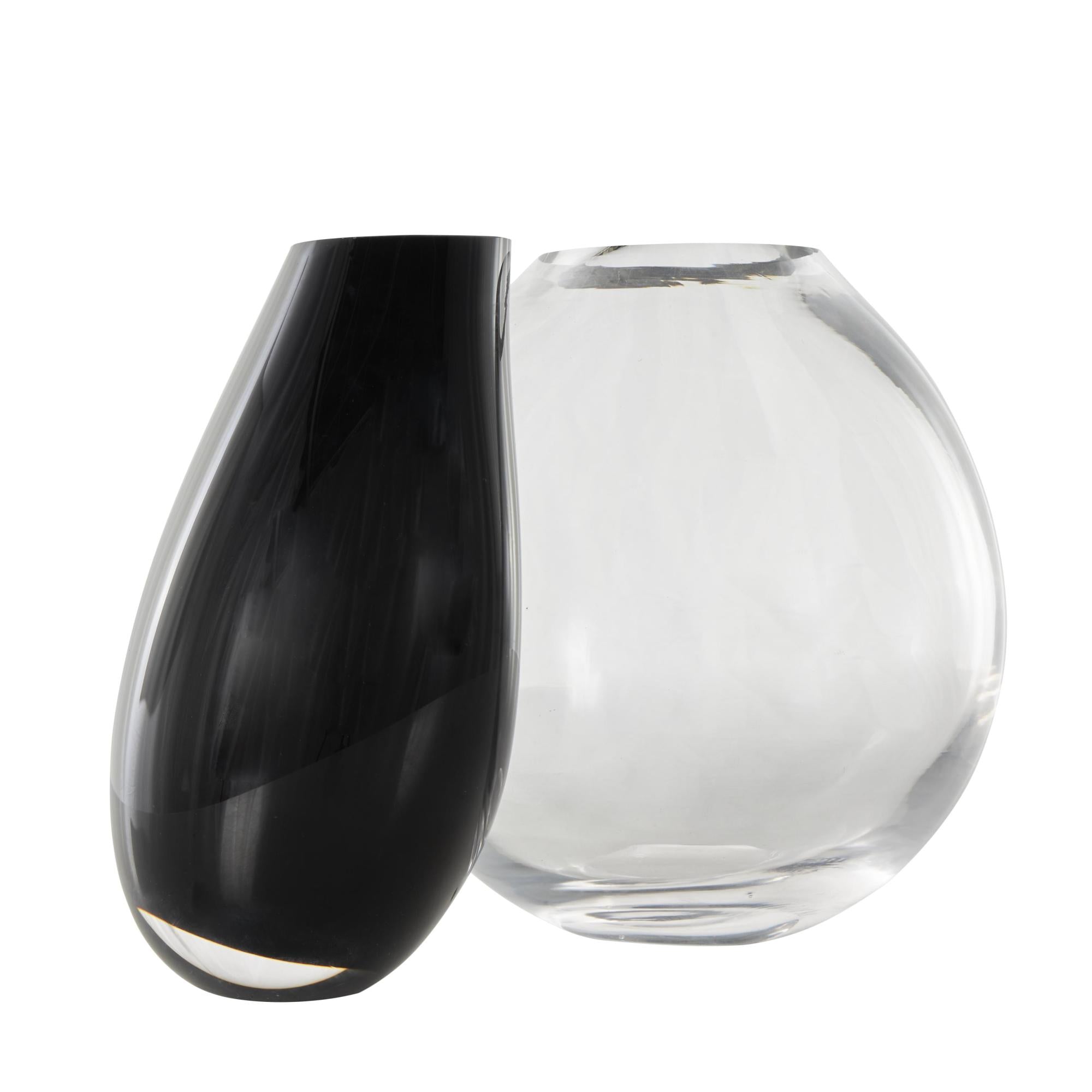 Abstract Black Recycled Glass Handmade Rounded 2 Opening 2 Opening Decorative Vase with Clear Glass Accent