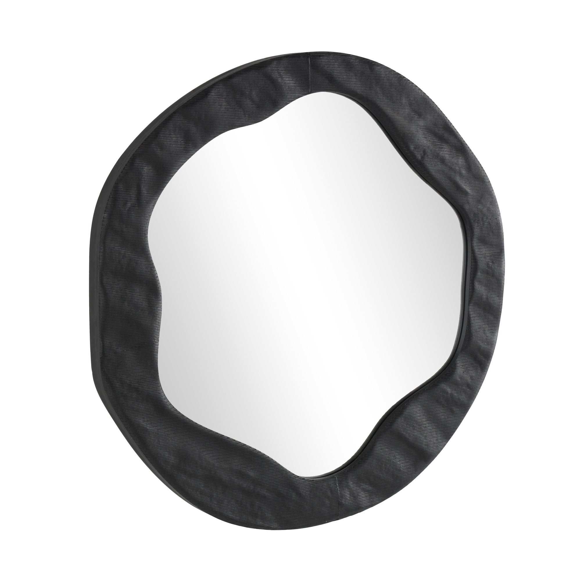 •This smooth mirror for wall has a wavy round shape, making it an eye-catching piece in any decor