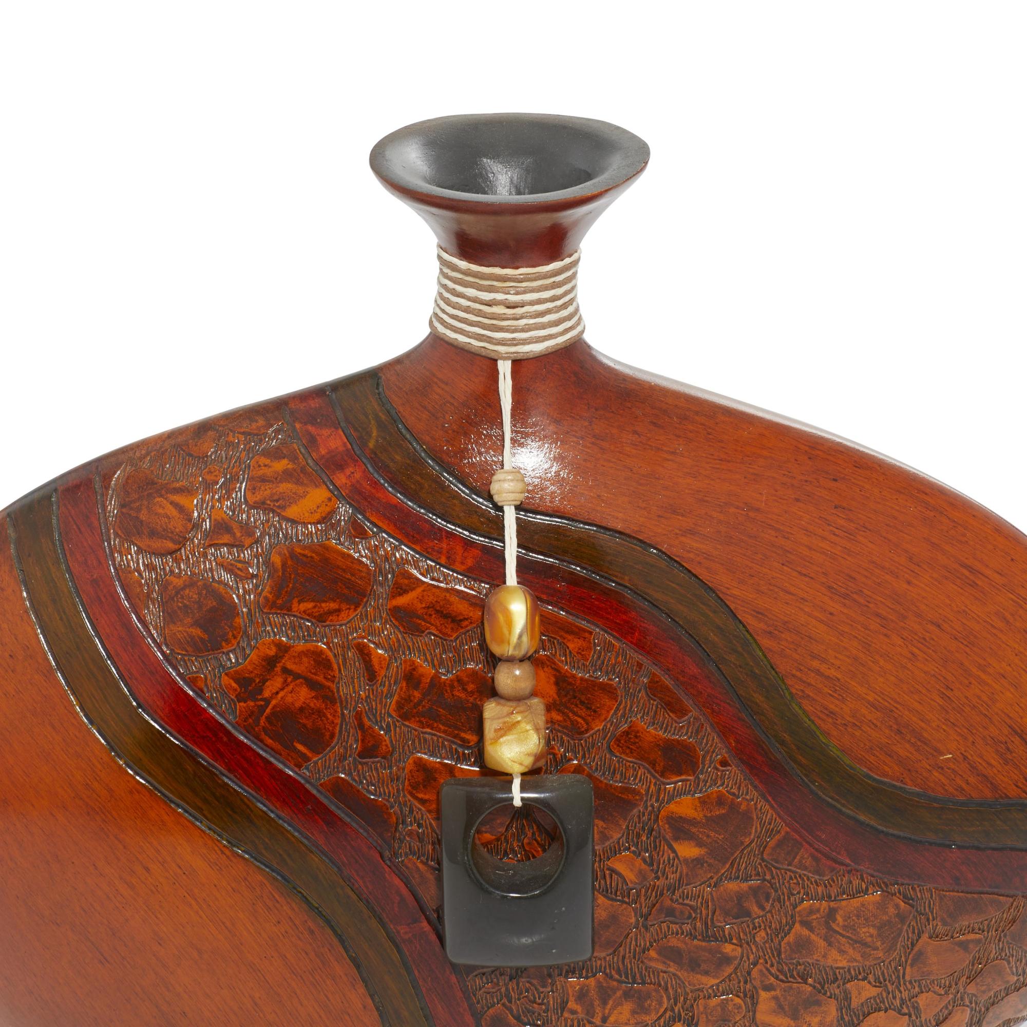 Abstract Brown Polystone Decorative Vase with Embossed Details