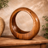 Abstract Brown Teak Wood Handmade Round Decorative Sculpture