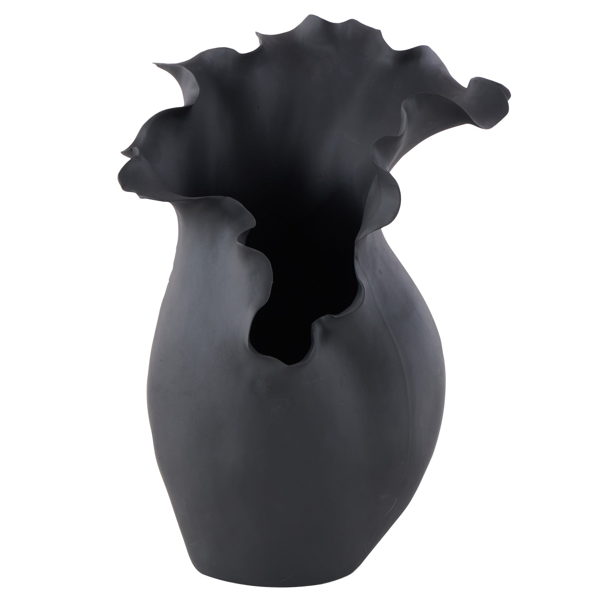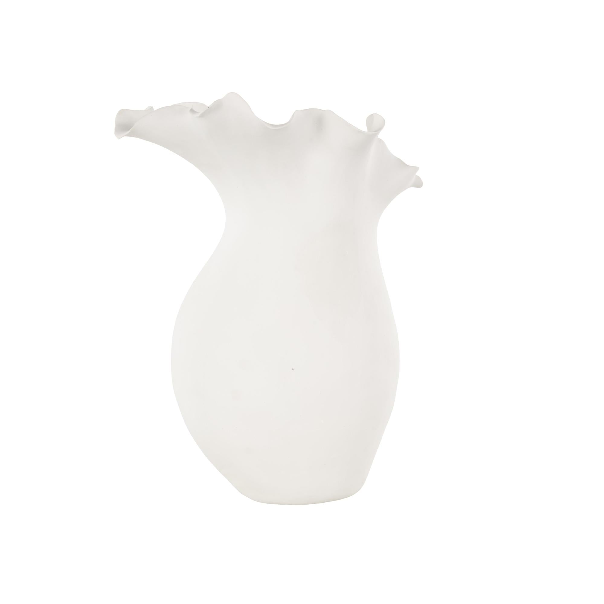 Abstract Ceramic Floral Inspired Decorative Vase with Wavy Folded Rim