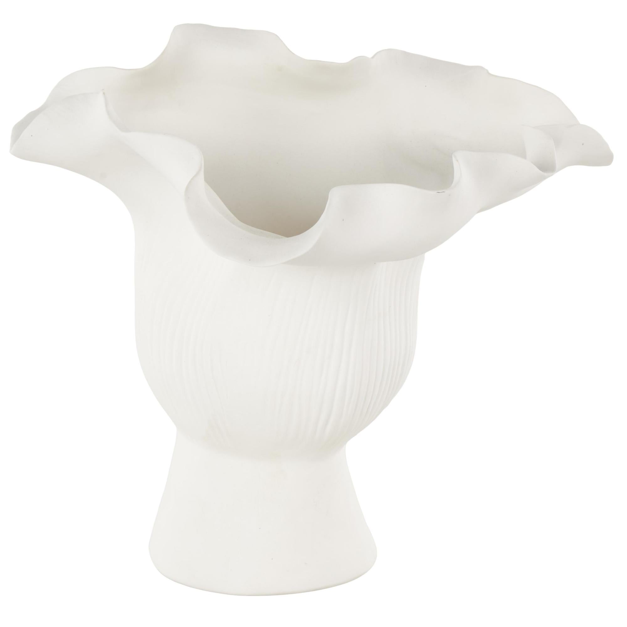 Abstract Ceramic Floral Inspired Decorative Vase with Wavy Folded Rim and Linear Grooves