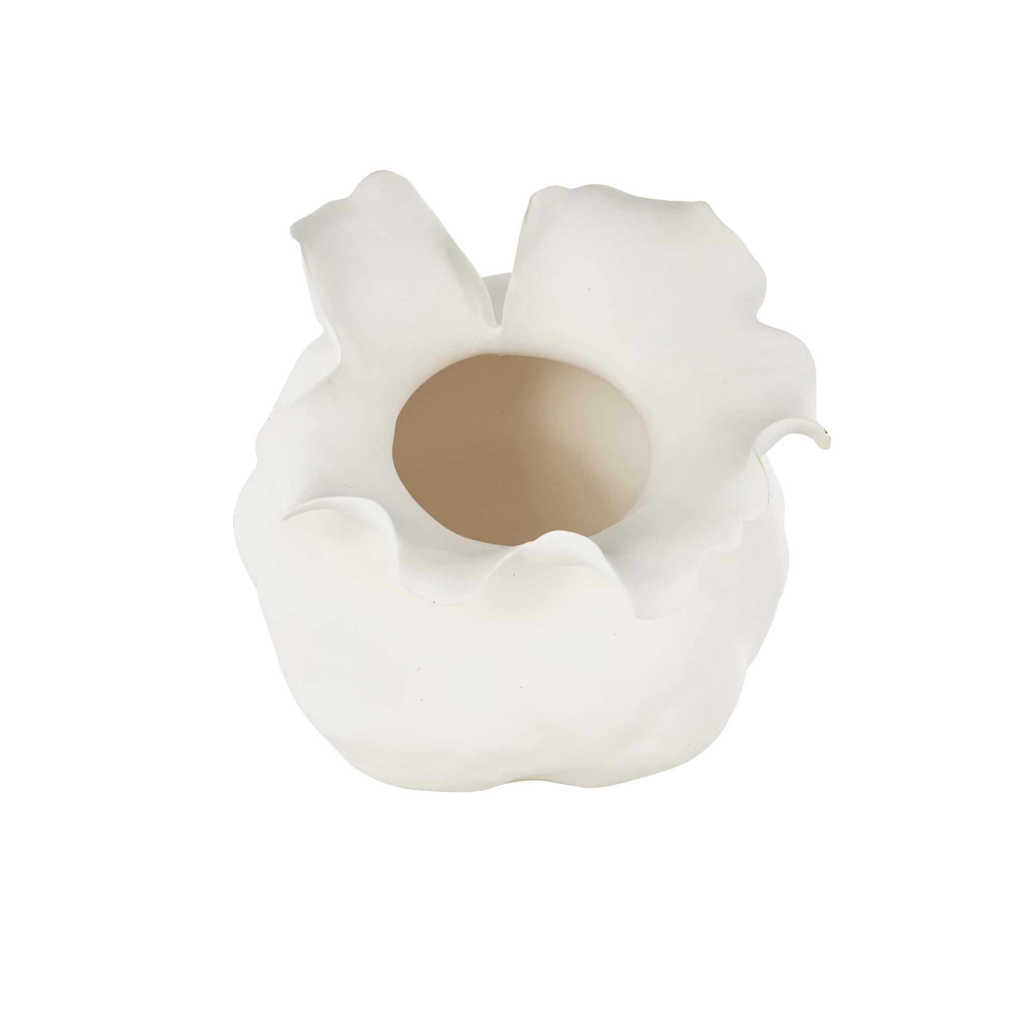 •This contemporary vase for home decor was molded with ceramic and shaped with a floral form that catches the eye