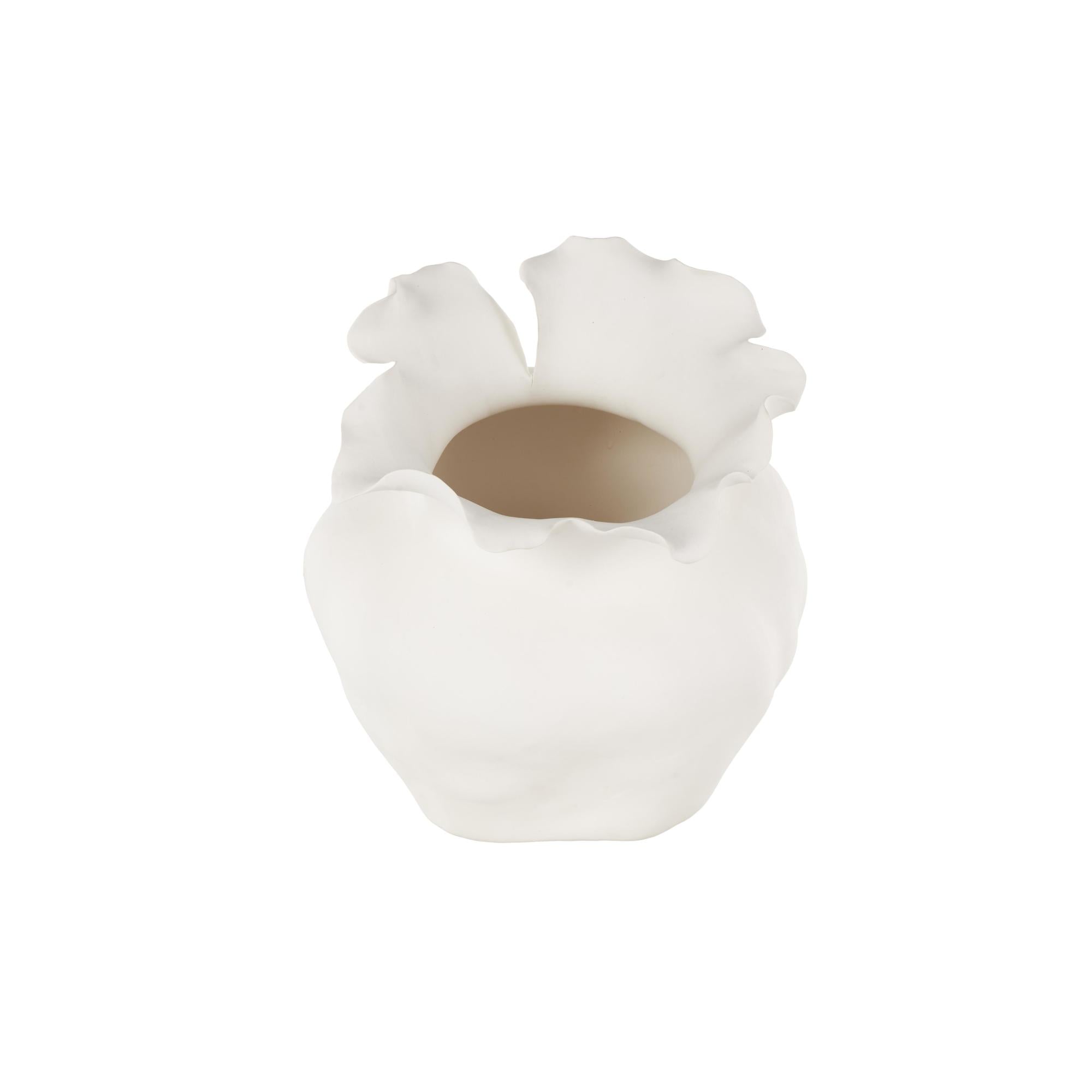 •Contemporary vase for home decor was molded with ceramic and shaped with a floral form that catches the eye