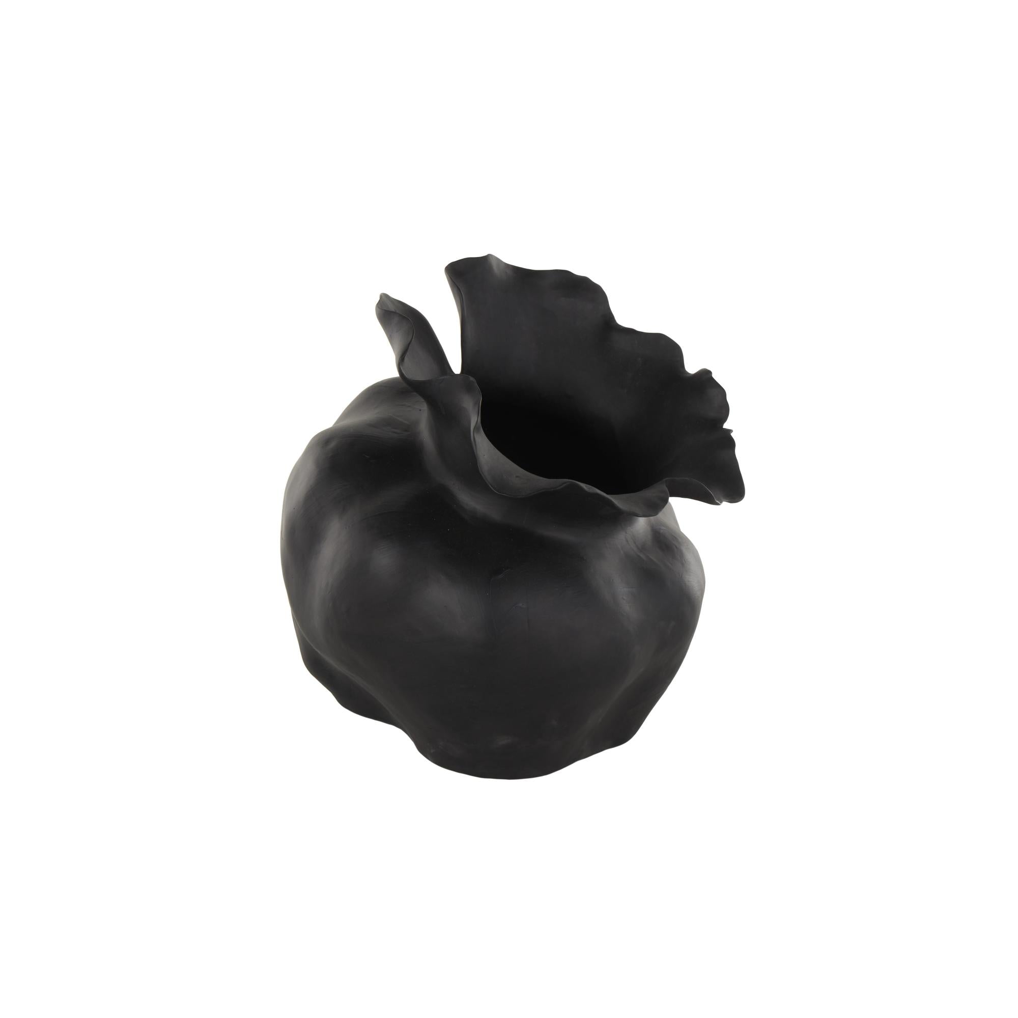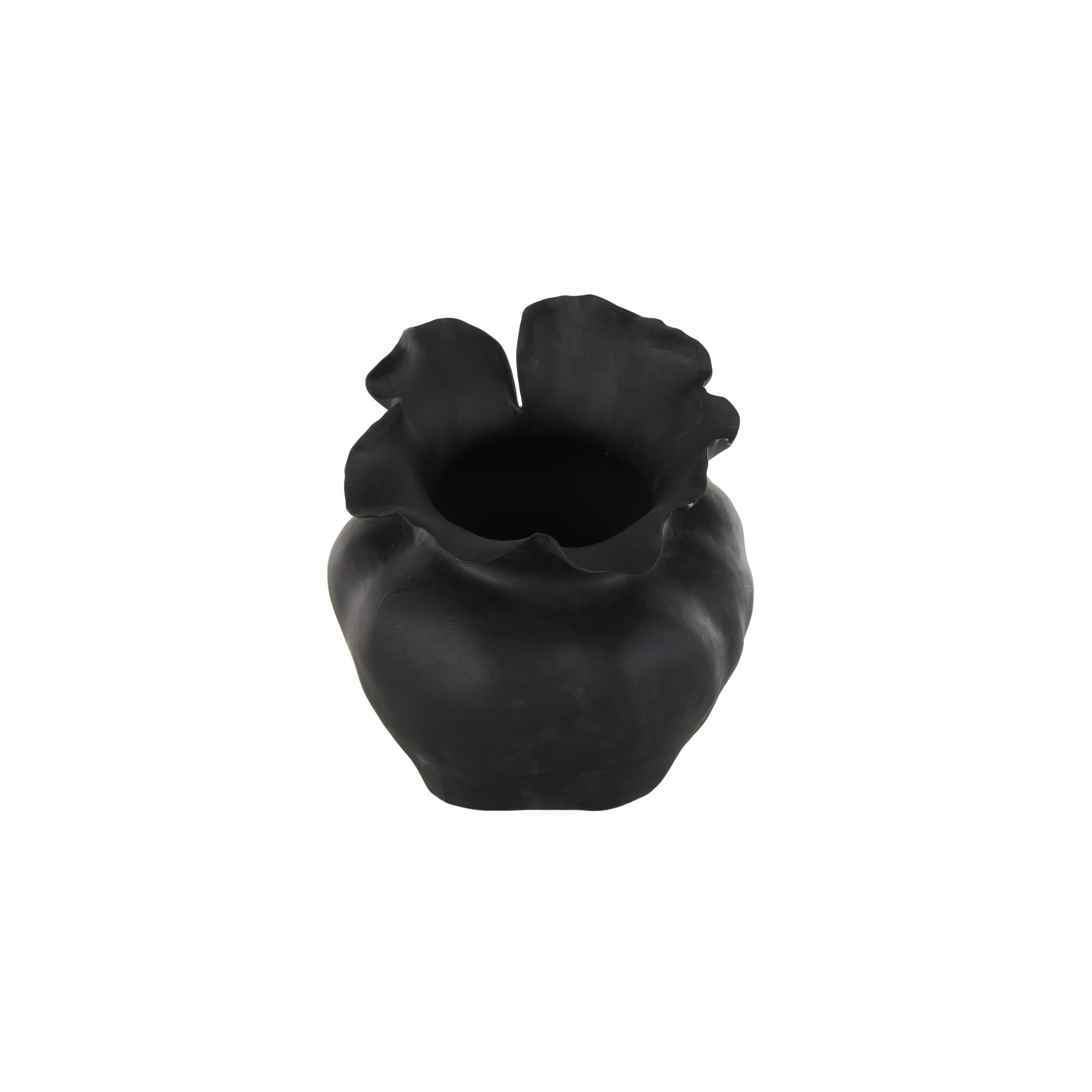 Abstract Ceramic Wide Rounded Floral Shaped Decorative Vase with Petal Rim