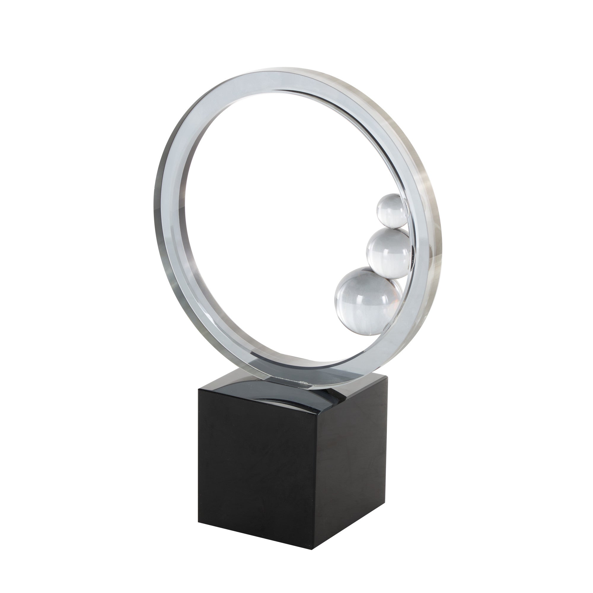 •This glam accent statue showcases expert craftsmanship, molding glass into a ring with orbs and placing it on a sturdy base