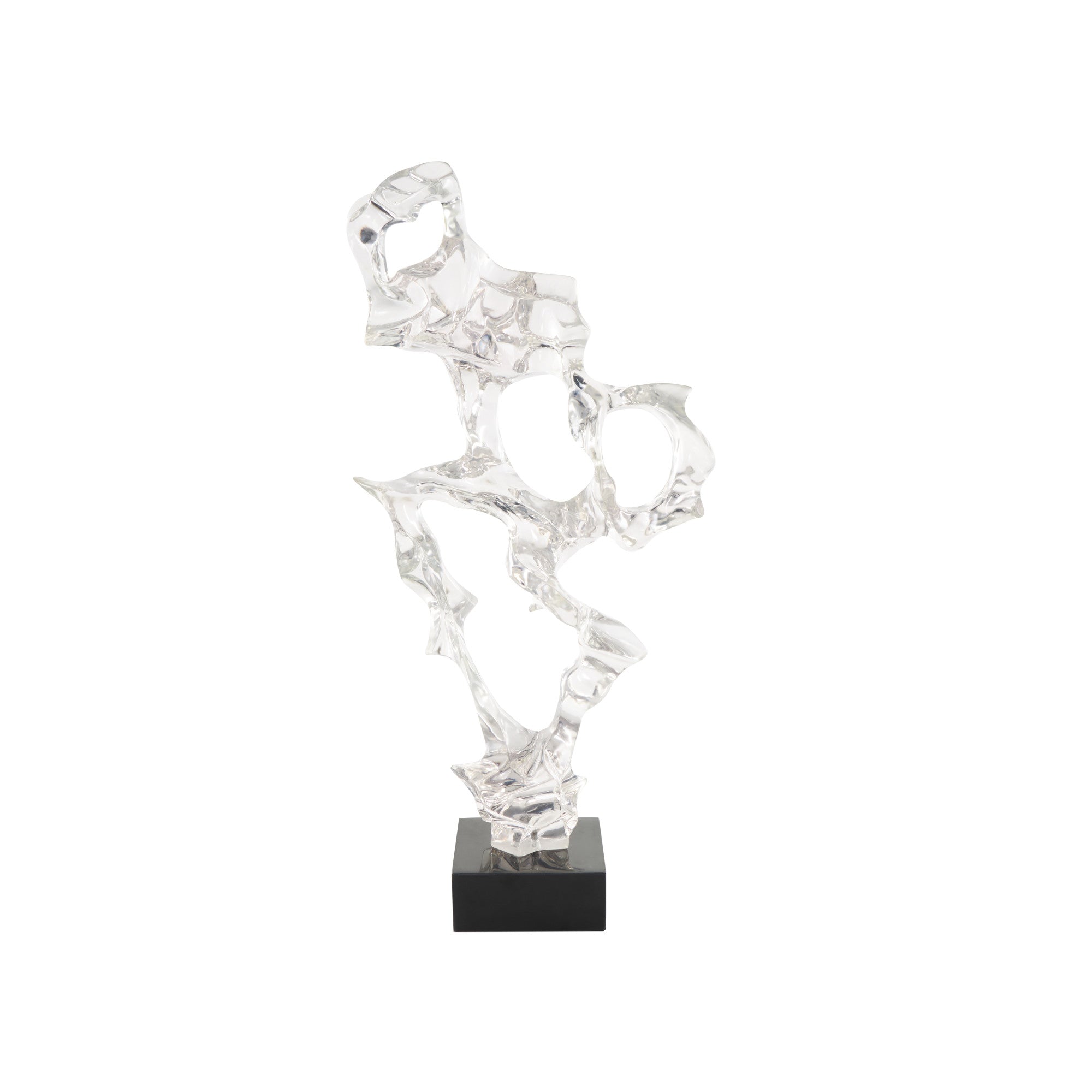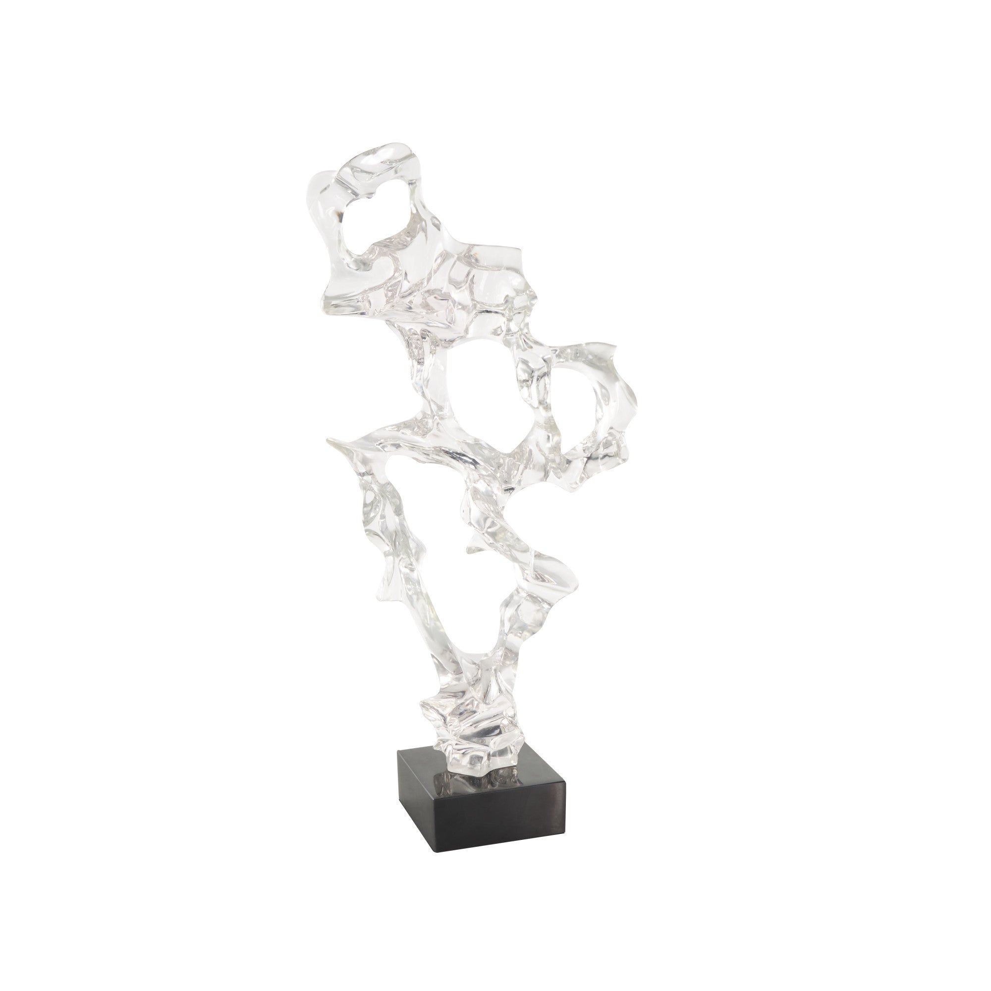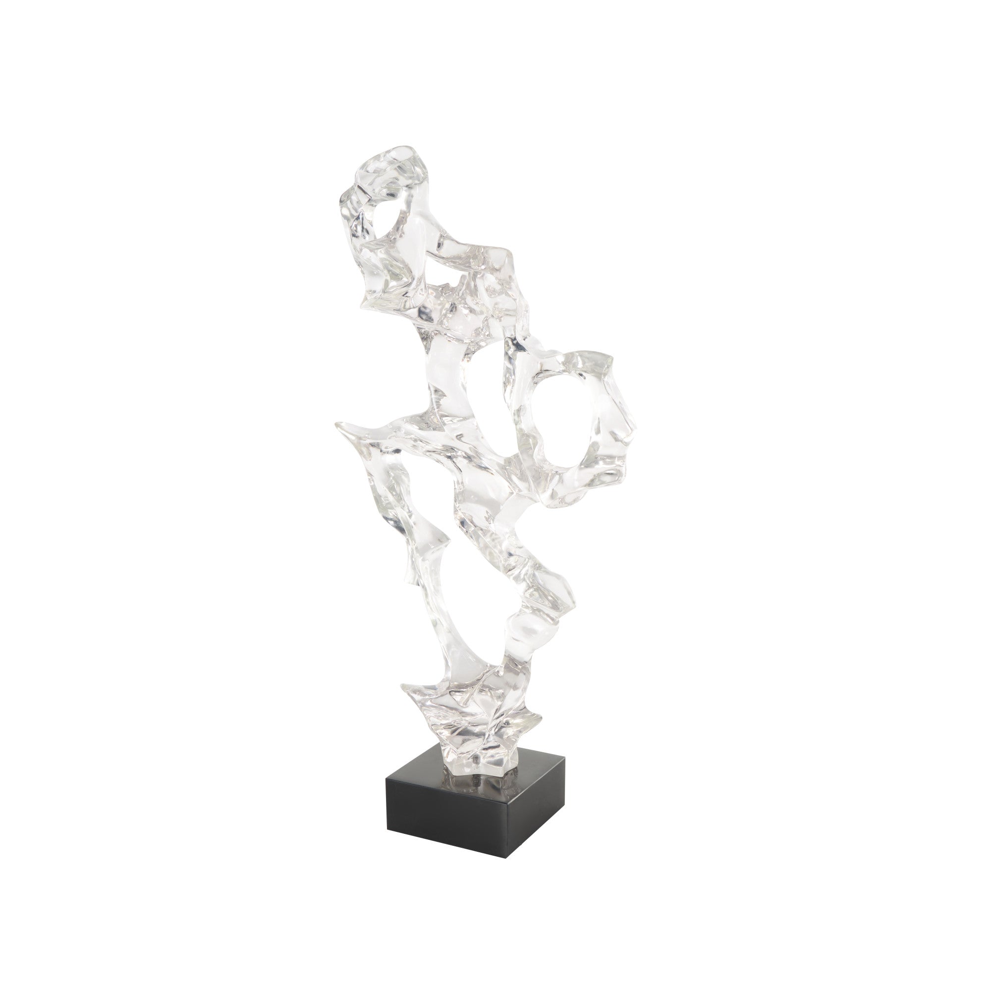 Abstract Clear Resin Decorative Sculpture with Black Square Base