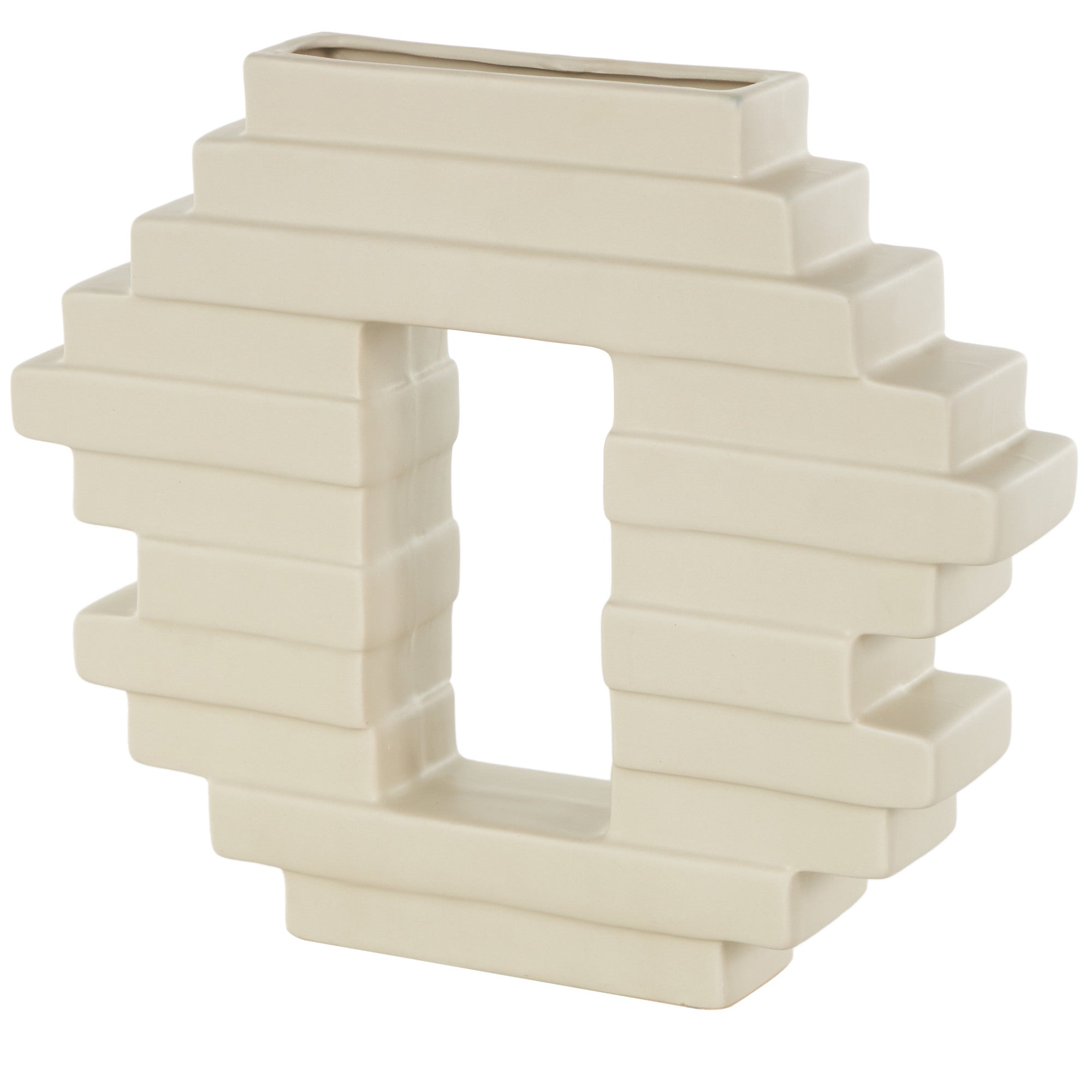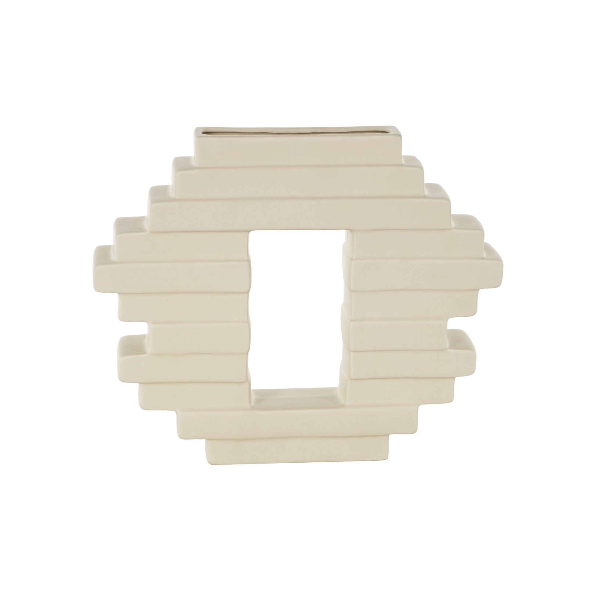 Abstract Cream Ceramic Decorative Vase with Rectangular Center Cutout