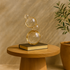 •Tinted home decor figurine showcases a modern round shape with its stacked orb design