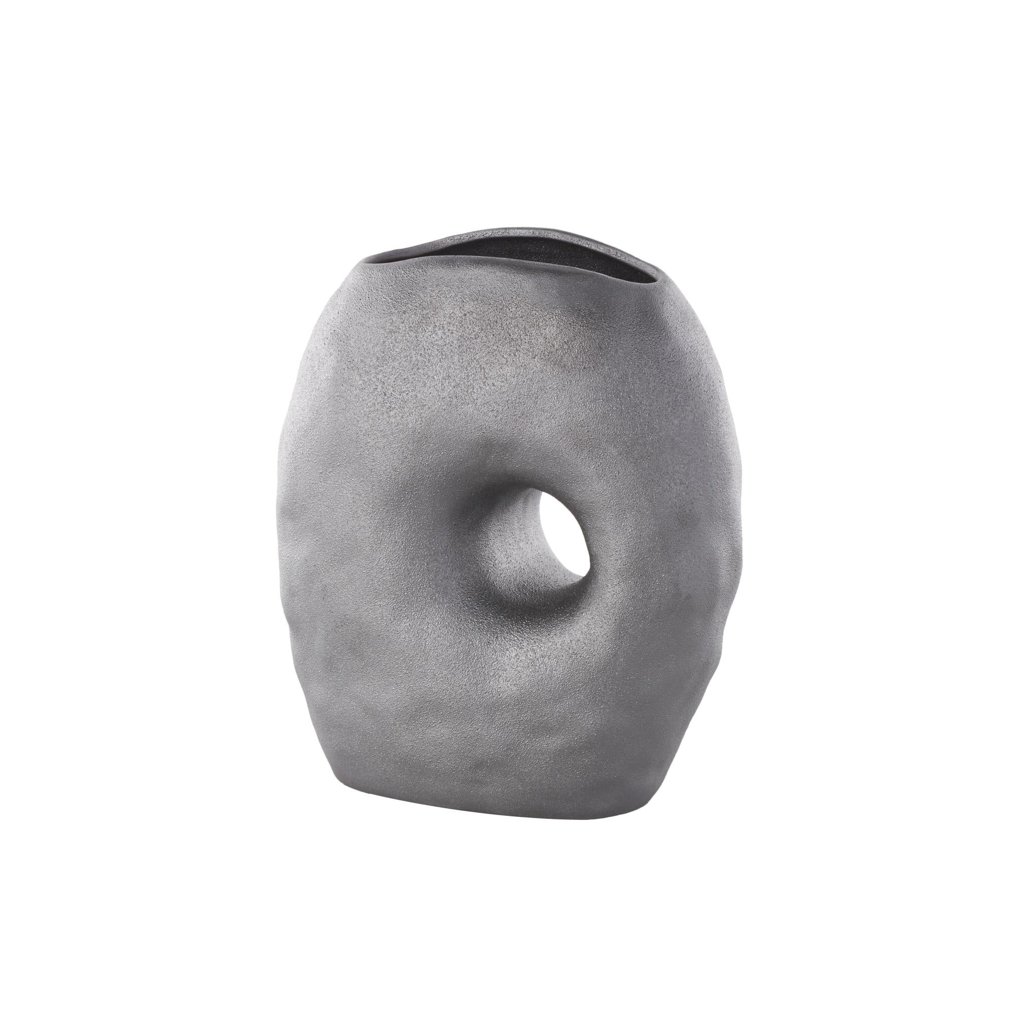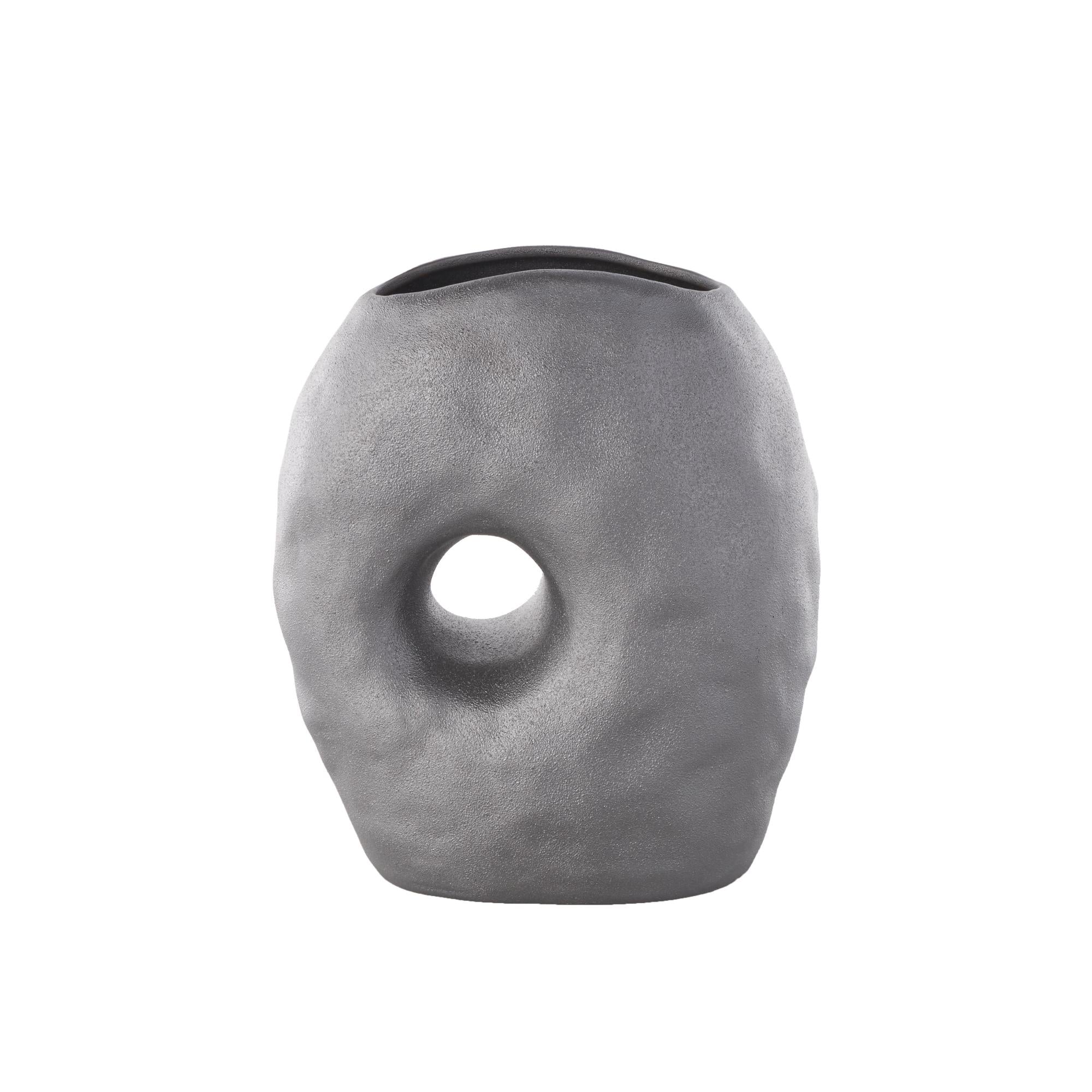 Abstract Gray Ceramic Wavy Donut Decorative Vase with Cutout Center
