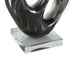 •Polished home decor figurine has a curved shape, oval cutouts, and a square base that offers a modern take on traditional glass sculpture forms
