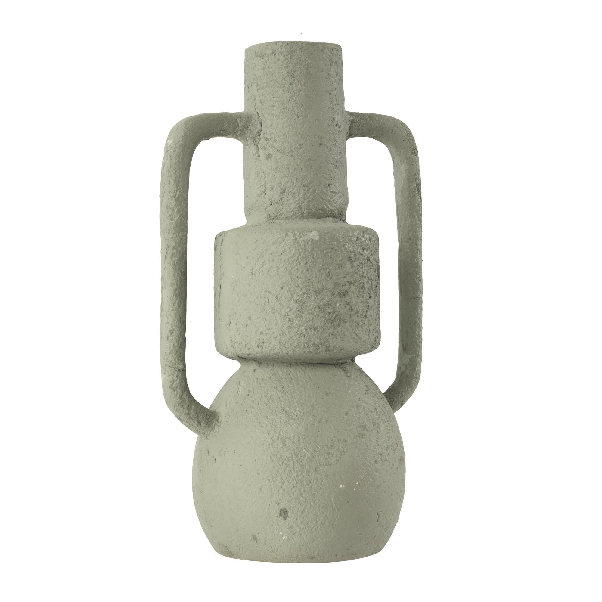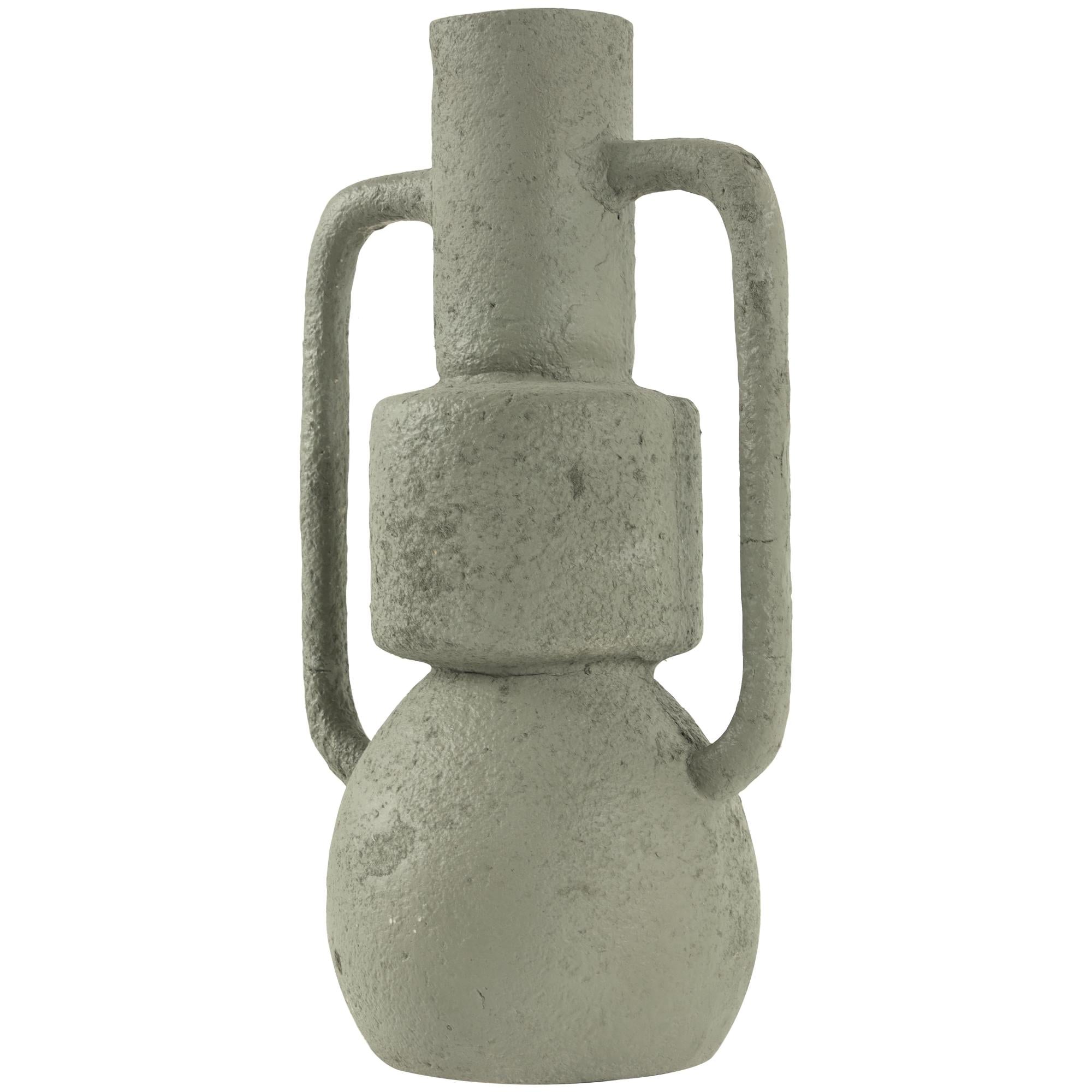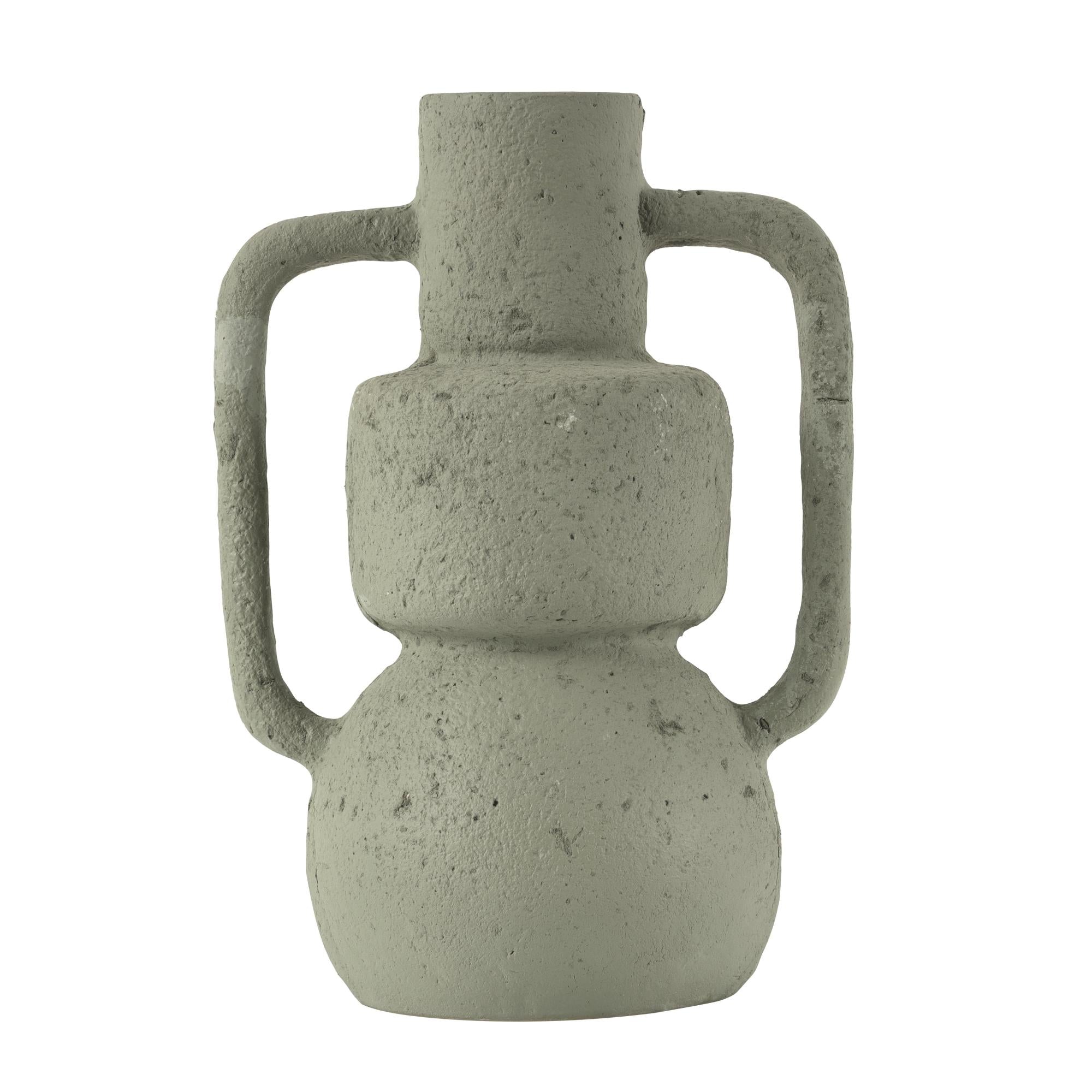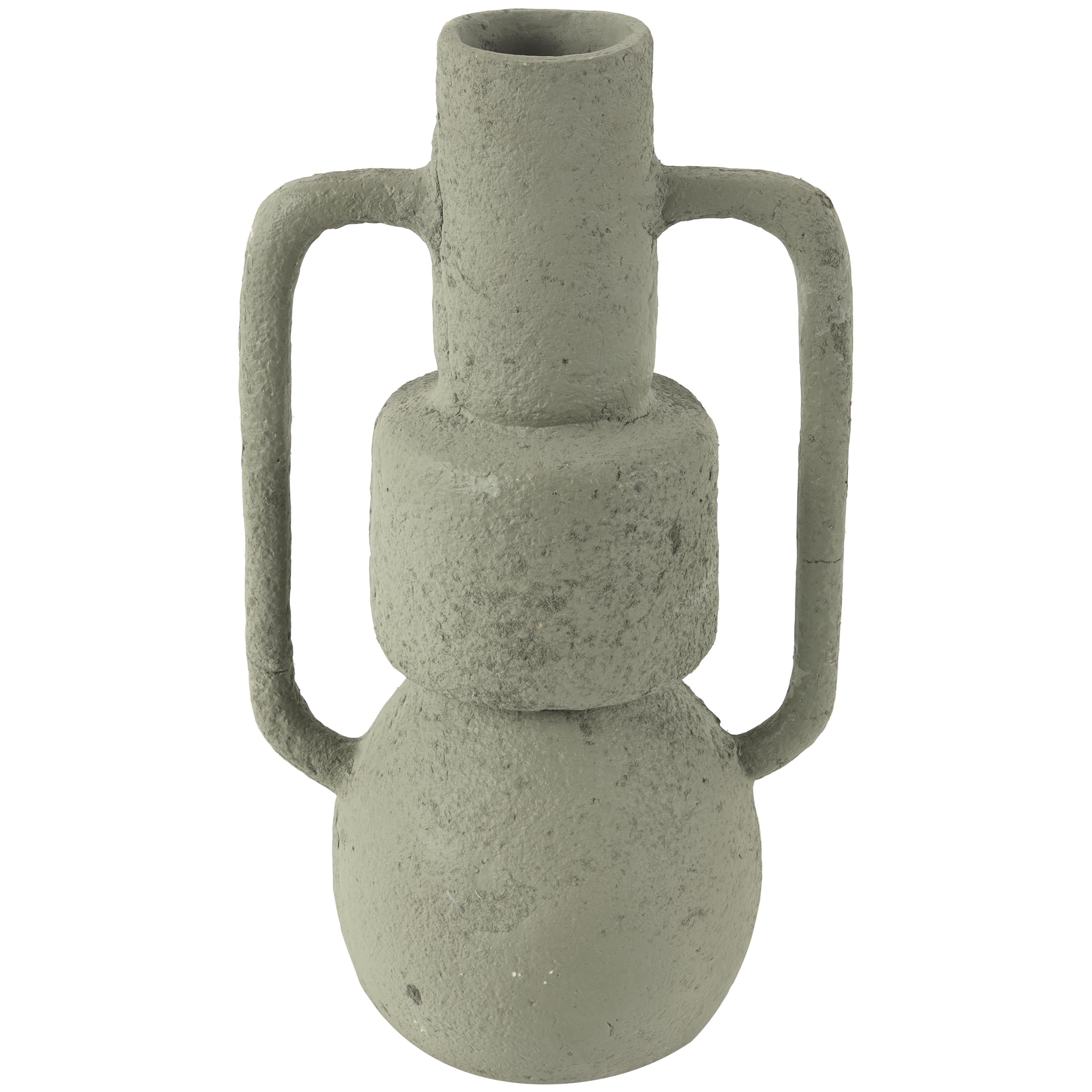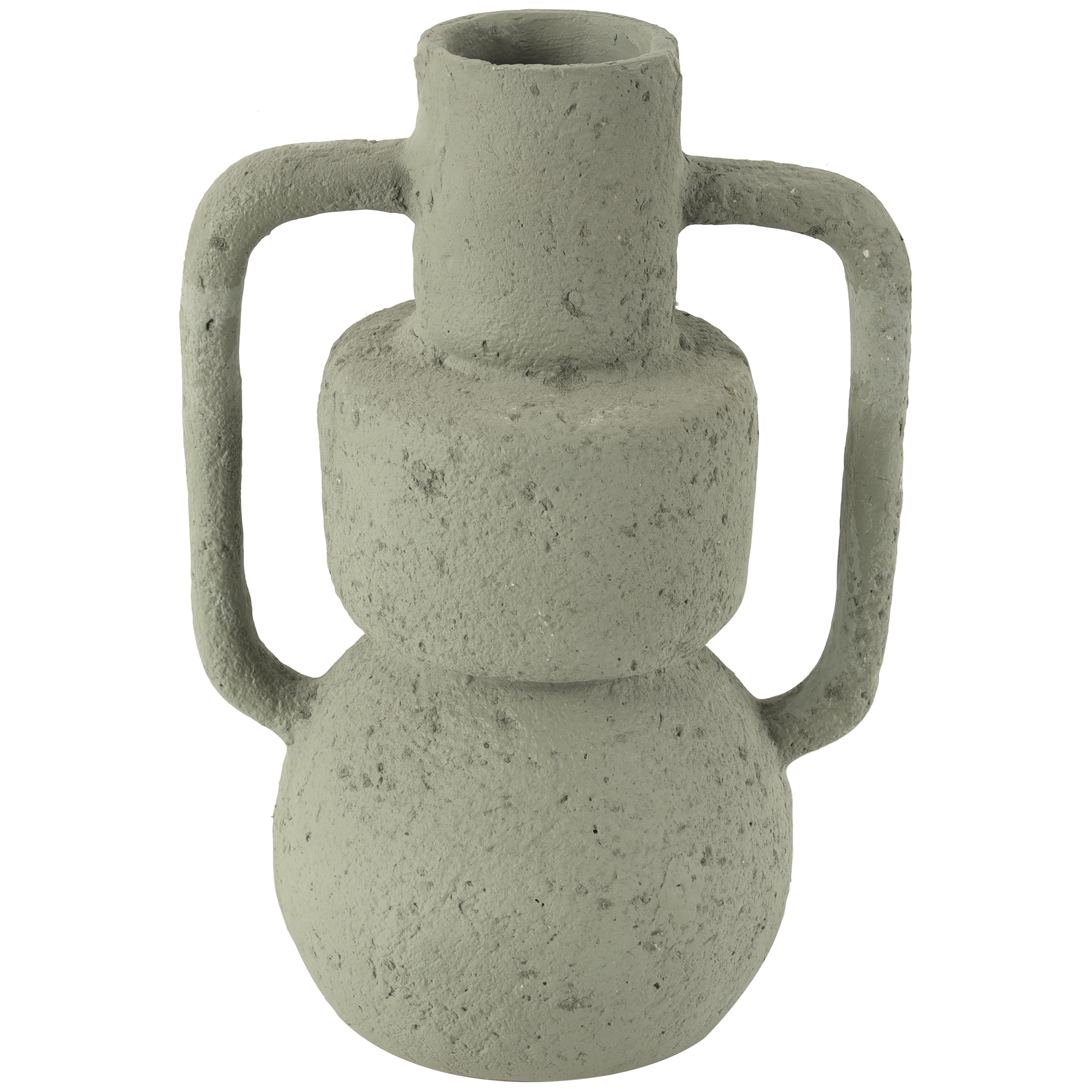 Abstract Light Gray Paper Mache Textured Decorative Vase with Squared Handles