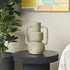 •The sandstone vase for faux flowers showcases a modern bubble shape with an elongated opening and squared handles on each side