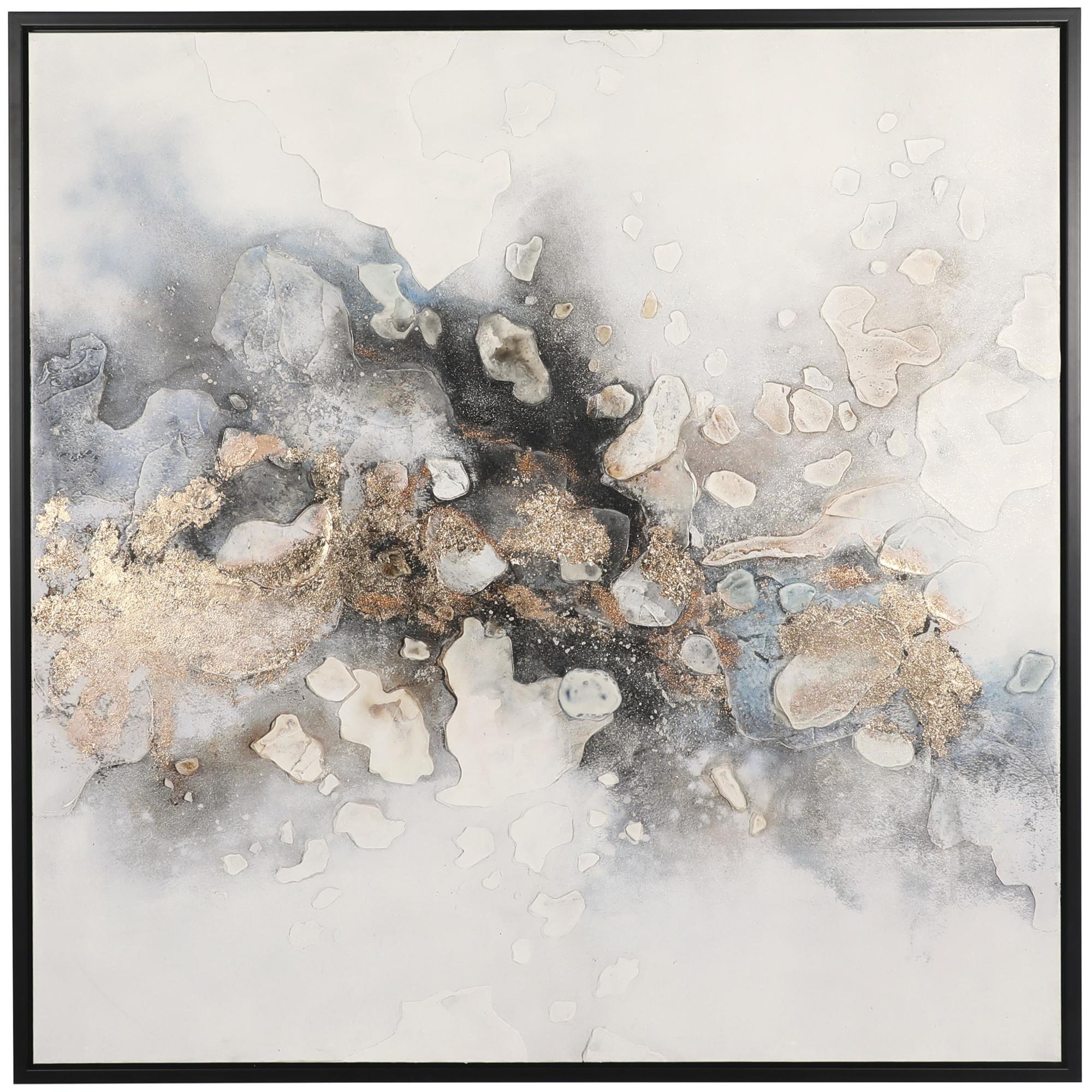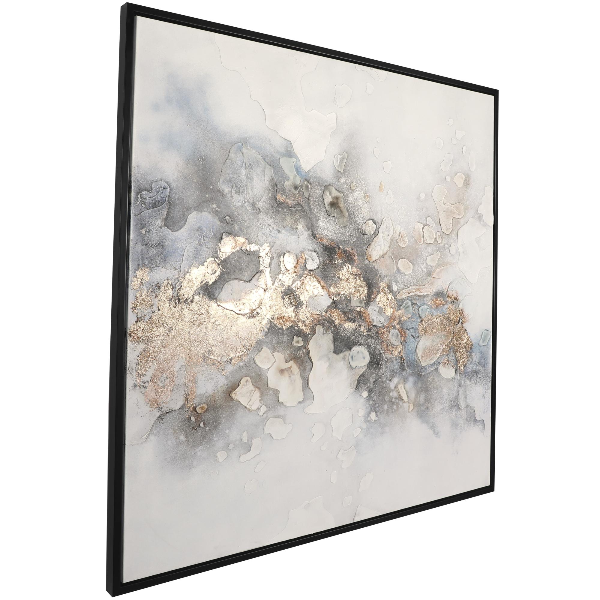 •The canvas framed wall art features a contemporary style with a unique abstract design enhanced by foil accents