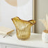 •This glass vase features a unique ribbed surface and folded curve opening that add depth and visual interest to the piece