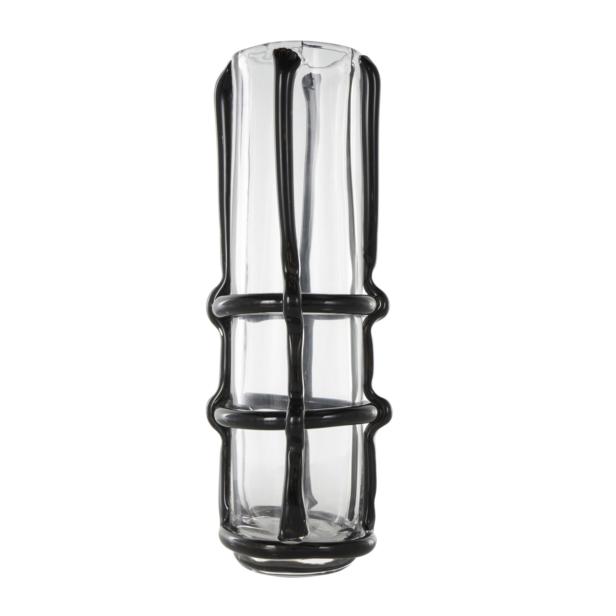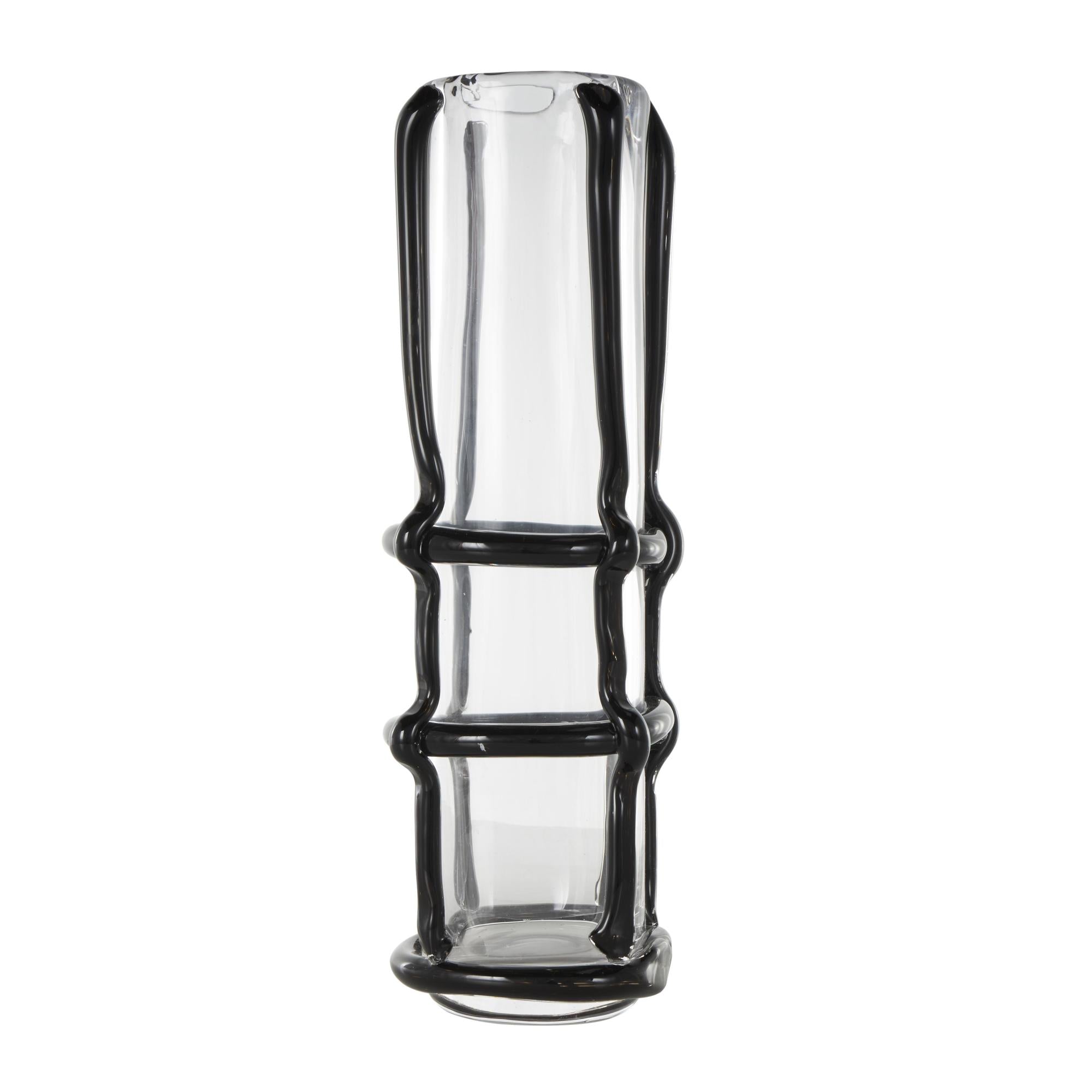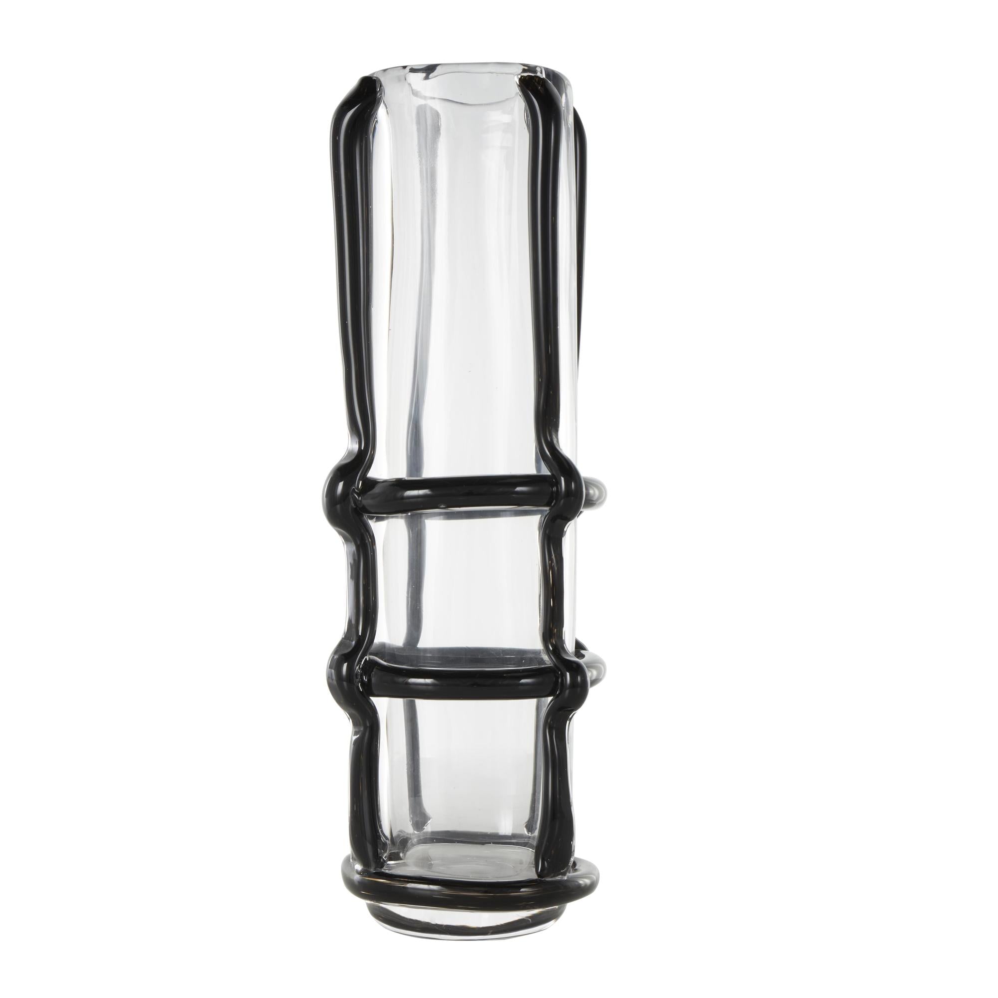 •This eclectic vase for home decor is meticulously handcrafted from recycled glass, shaped into a tall round form, then framed with additional line glass for a distinctive look