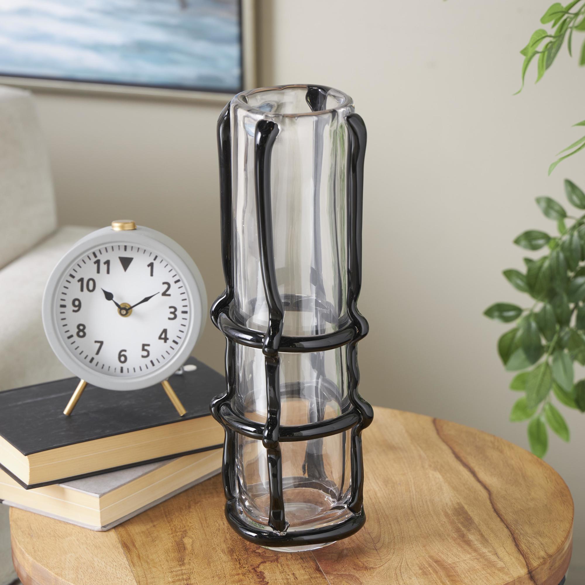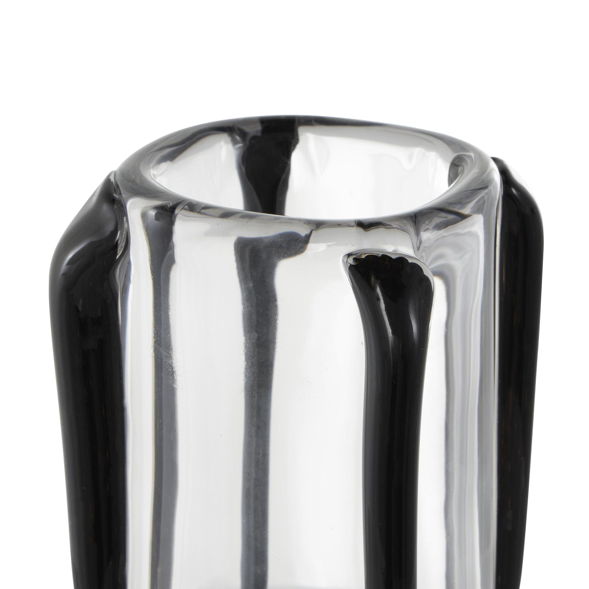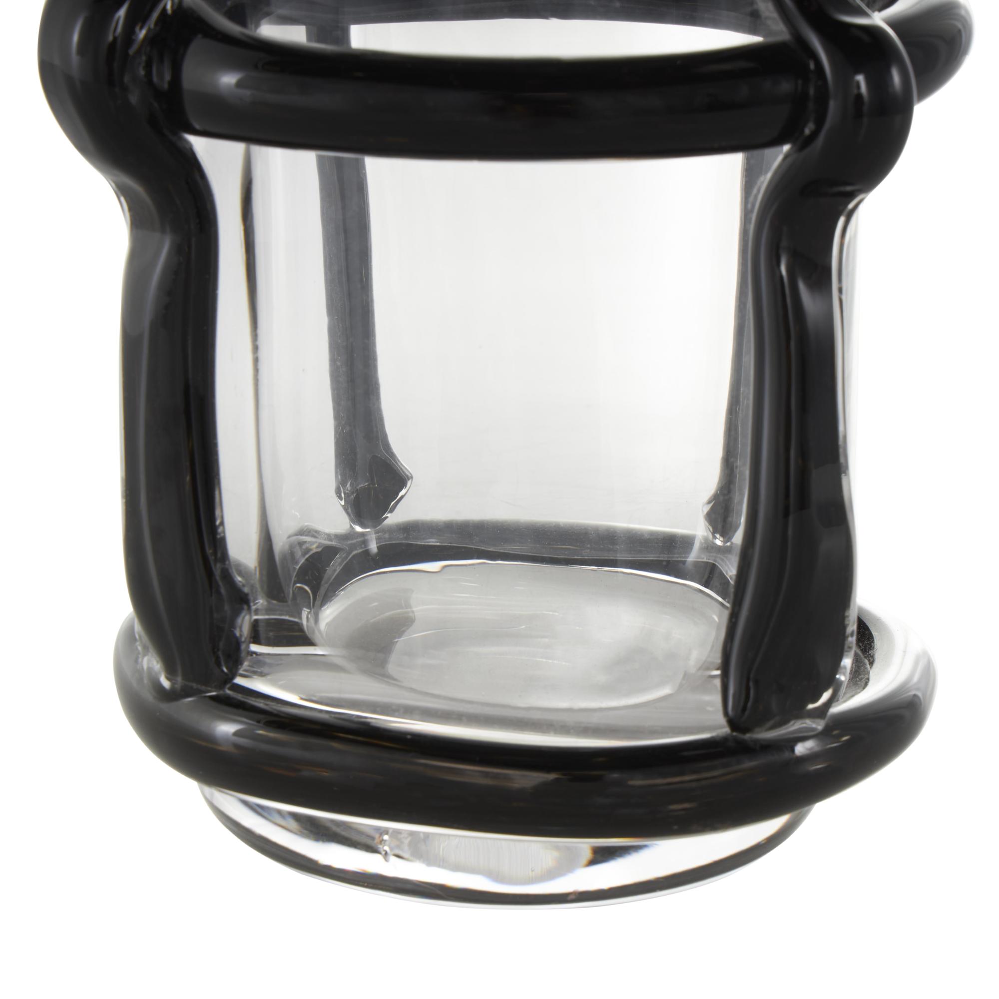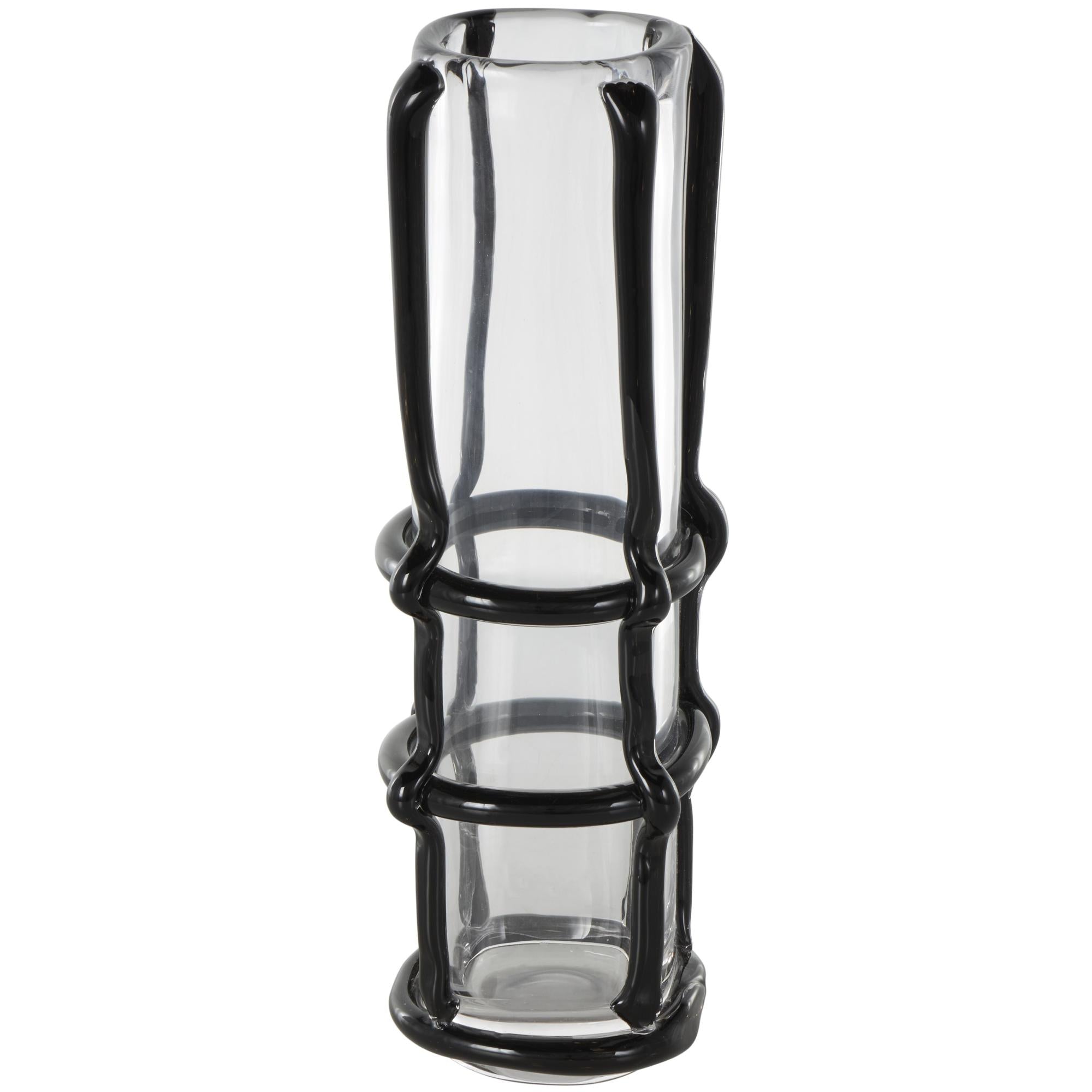 •This eclectic vase for home decor is meticulously handcrafted from recycled glass, shaped into a tall round form, then framed with additional line glass for a distinctive look
