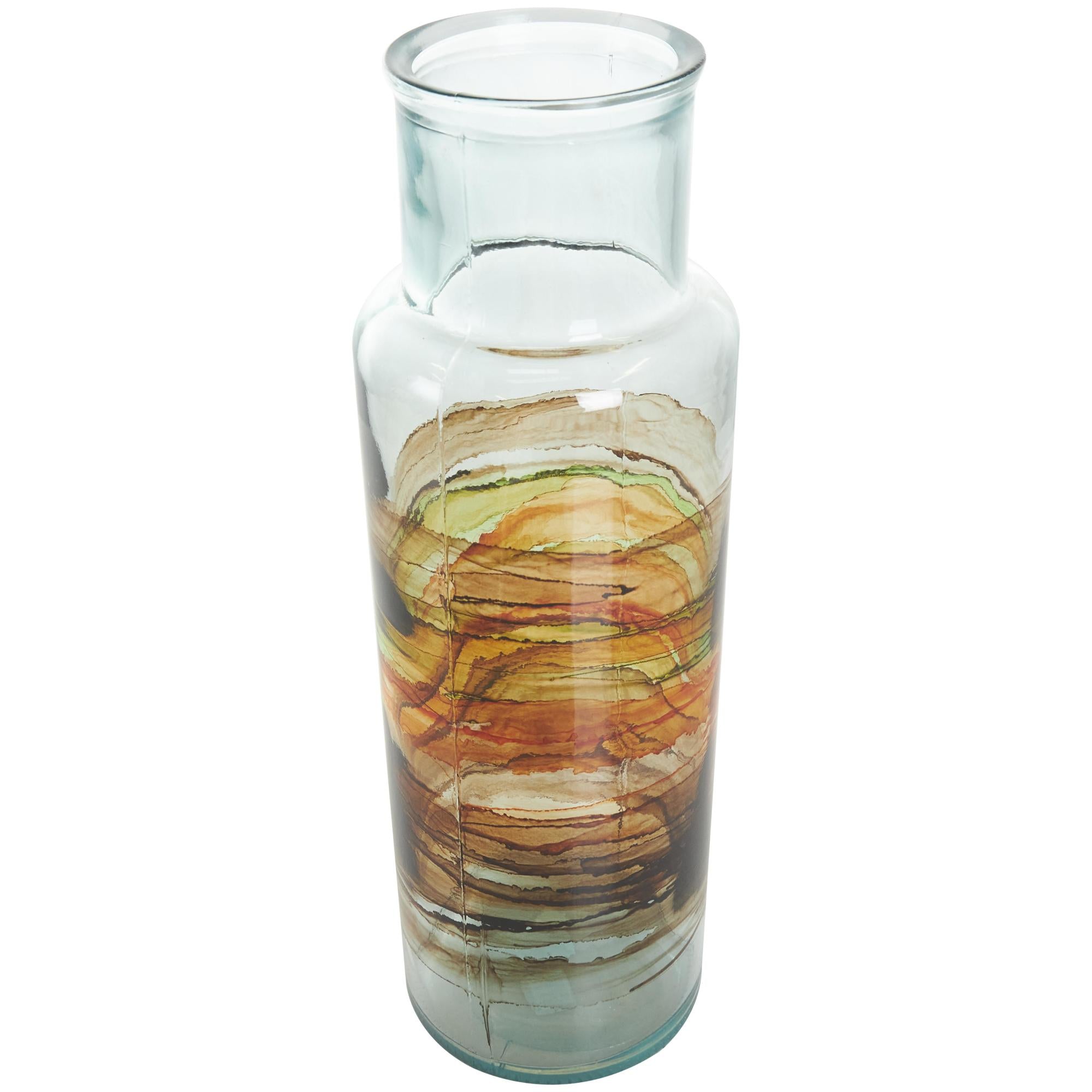 Abstract Recycled Glass Handmade Slim Spanish Bottle Neck Decorative Vase with Ombre Swirled Bands