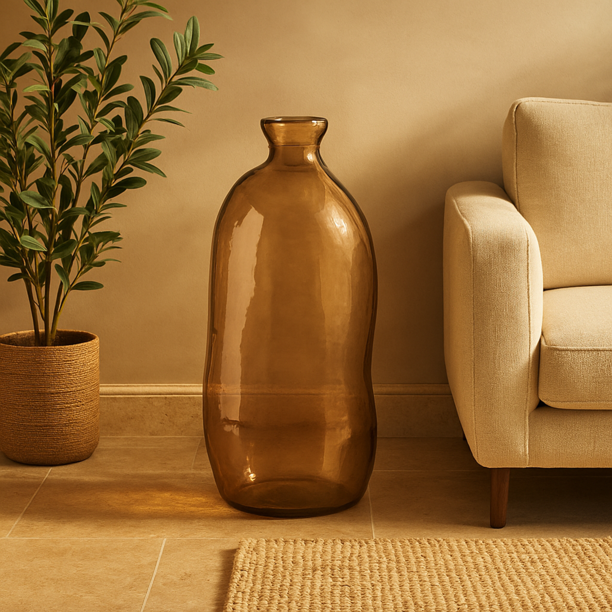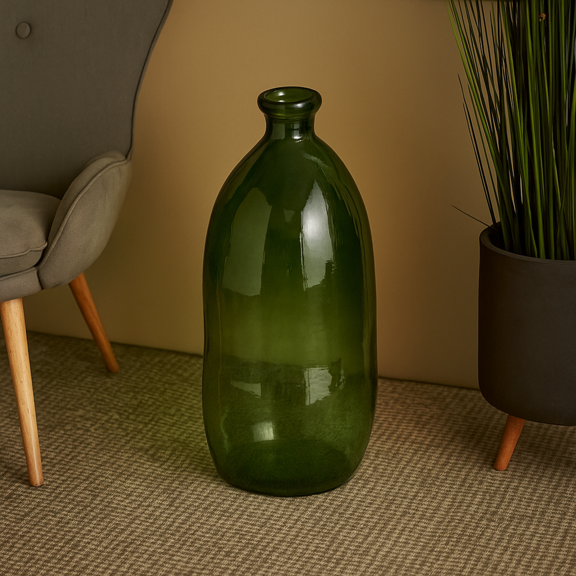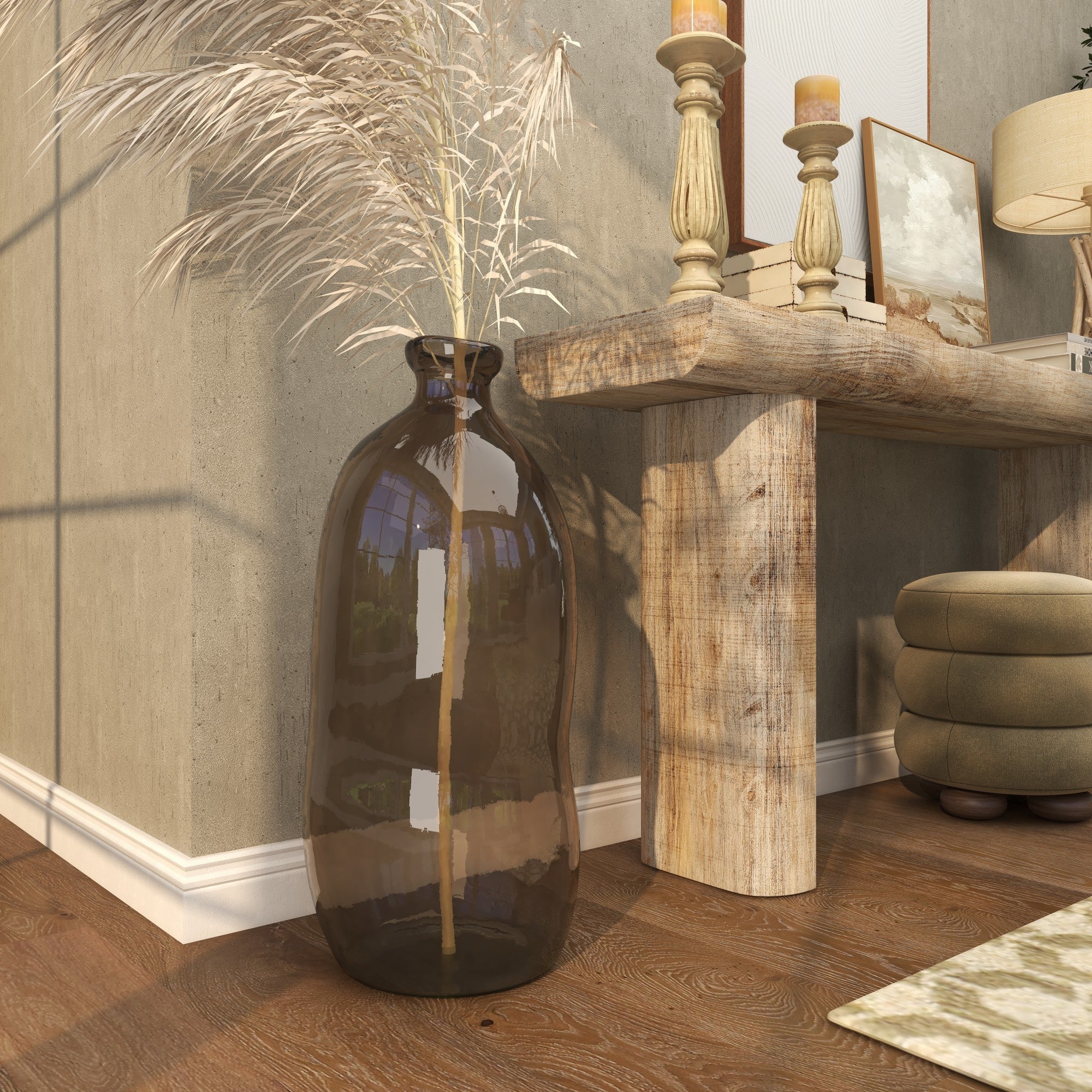 Recycled Glass Handmade Spanish Bottleneck Curved Decorative Vase 13" x 13" x 29"