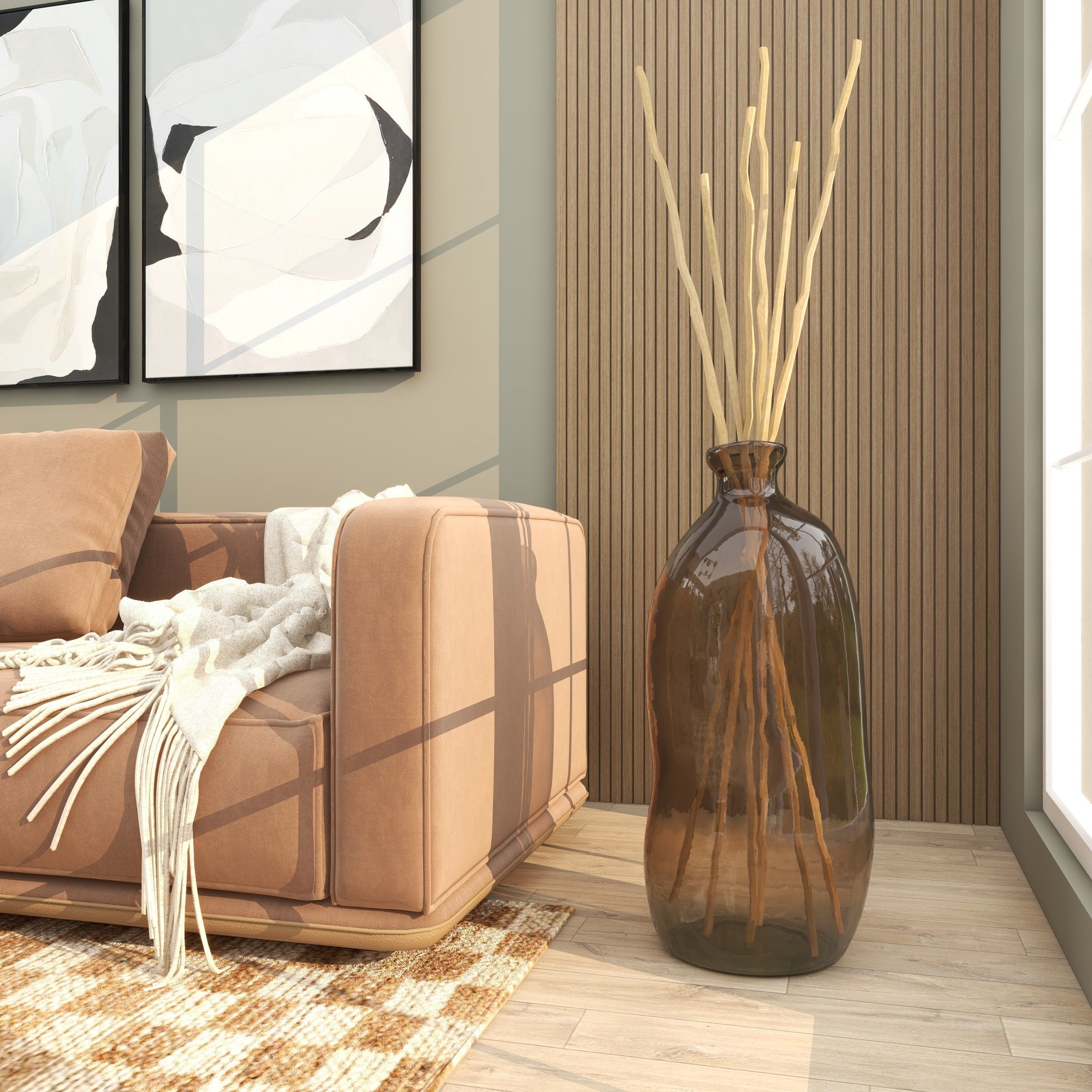 •This tinted vase for dried flowers has a rounded shape and abstract curvature that adds to its modern appeal, with a stylish ombre effect that adds an artistic touch