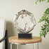 •This contemporary accent statue is meticulously molded with aluminum into a round form and securely affixed to its marble base