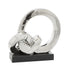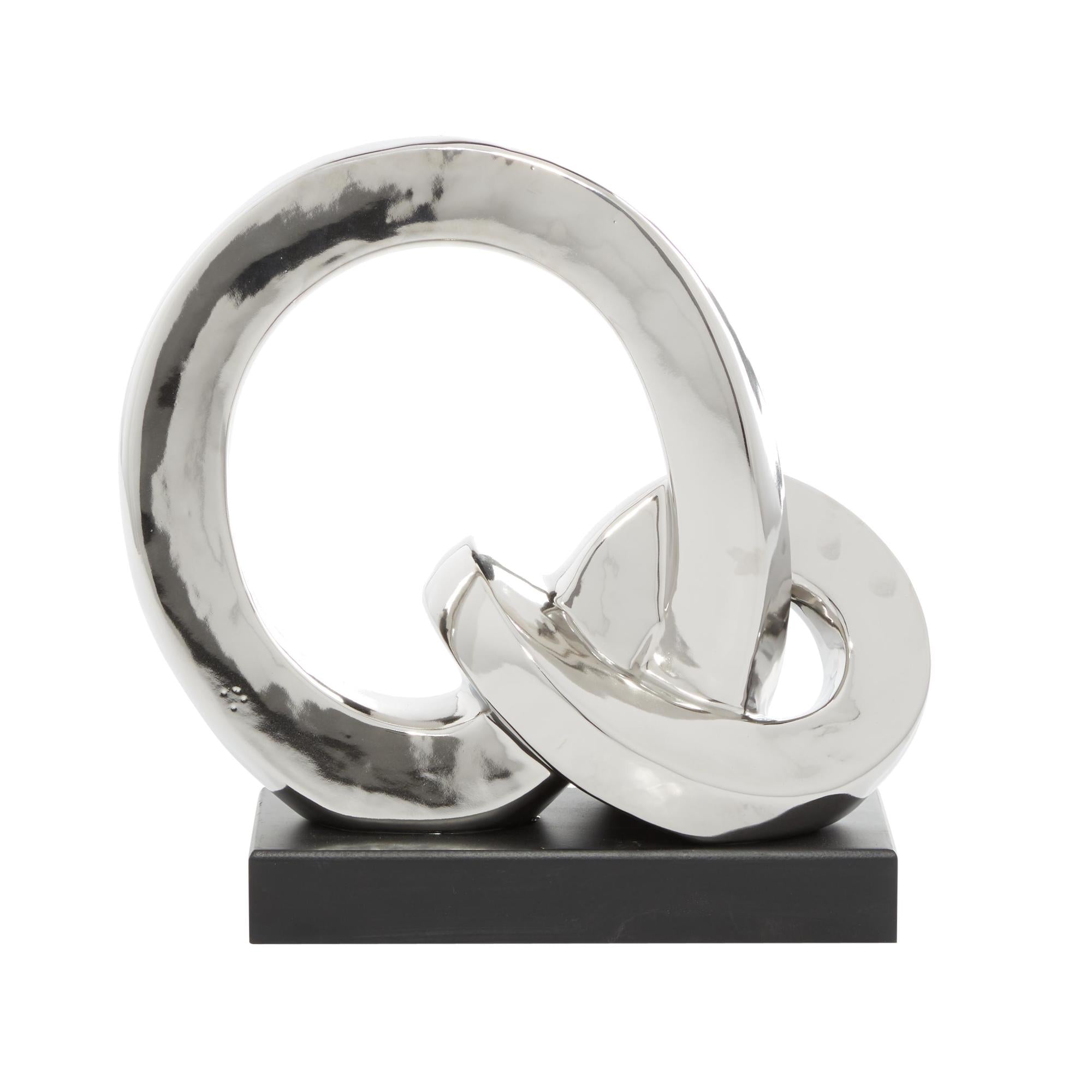 Abstract Silver Porcelain Ceramic Link Decorative Sculpture with Black Base