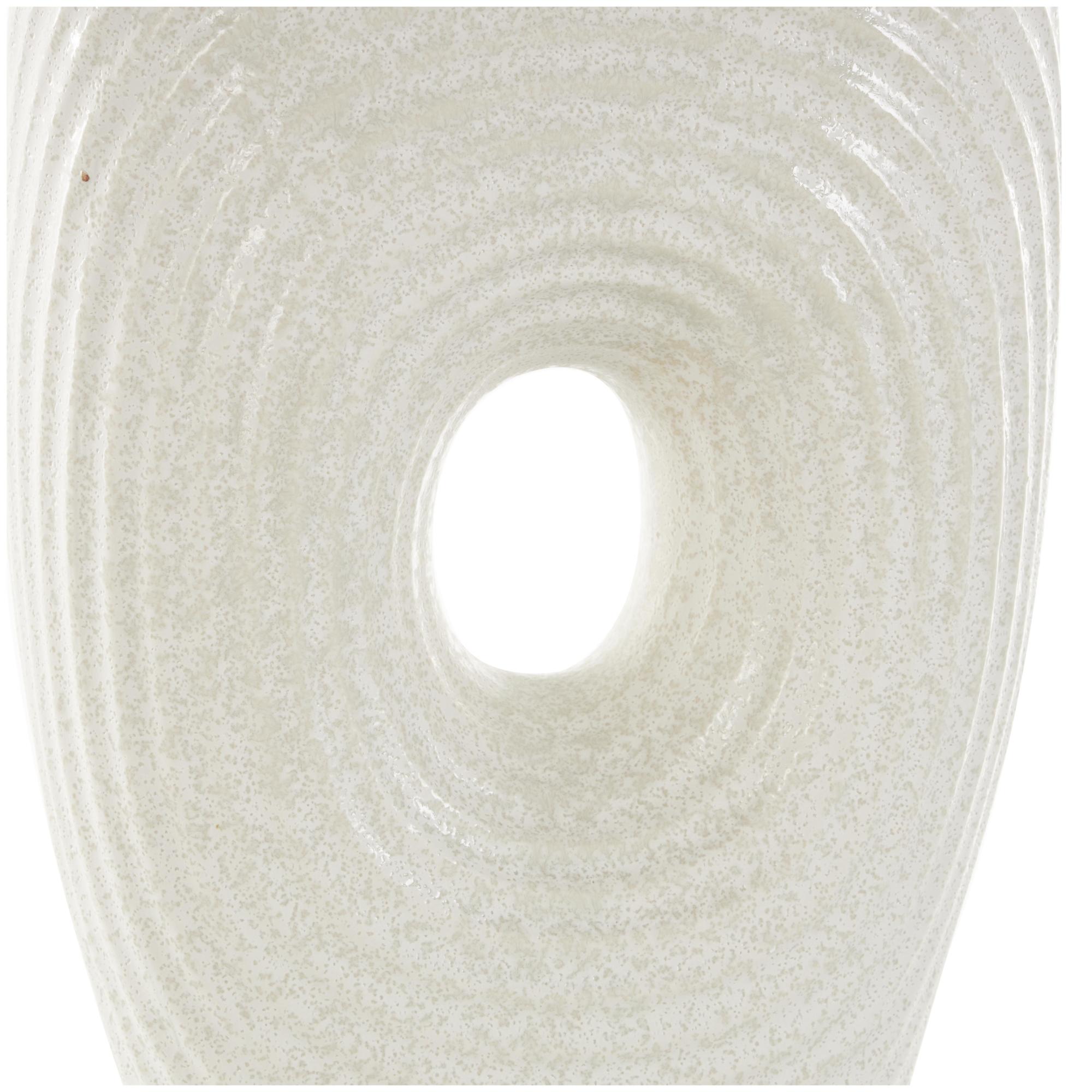 Abstract White Ceramic Ribbed Ring Cutout Decorative Vase with Glossy Speckled Texture