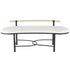 •Matte entry bench features two arch-shaped metal pieces at the base, providing a unique and stylish foundation for this piece of furniture