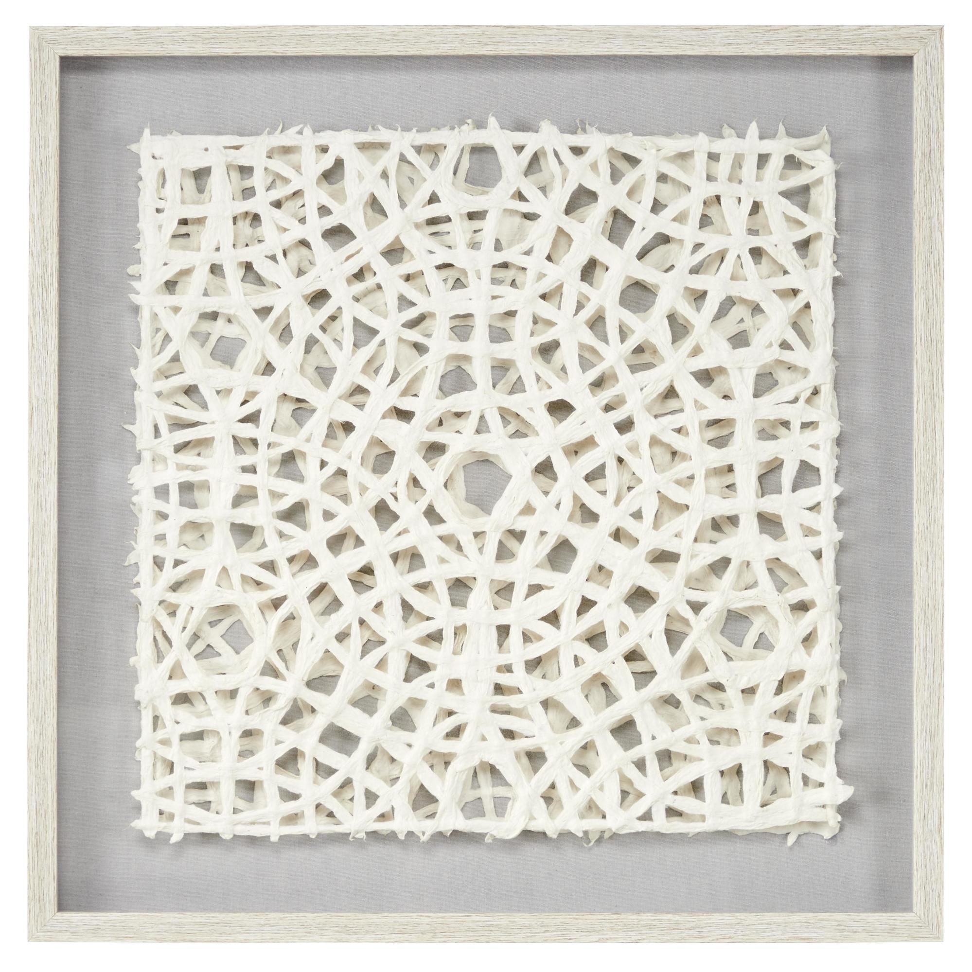 Place the geometric wall sculpture in natural-themed living room or bedroom to add charm and elegance. This item ships in 1 carton. Square wall decor housing hand-cut paper, plastic shadow box frame with wood-like texture. Due to the handmade nature of this item, no two will be alike, there will be slight differences in shape, size, and color. Can be hung vertically using the d-rings; nails and screws not included. Suitable for indoor use only. This item ships fully assembled in one piece. This is a single wall decor. Coastal style.