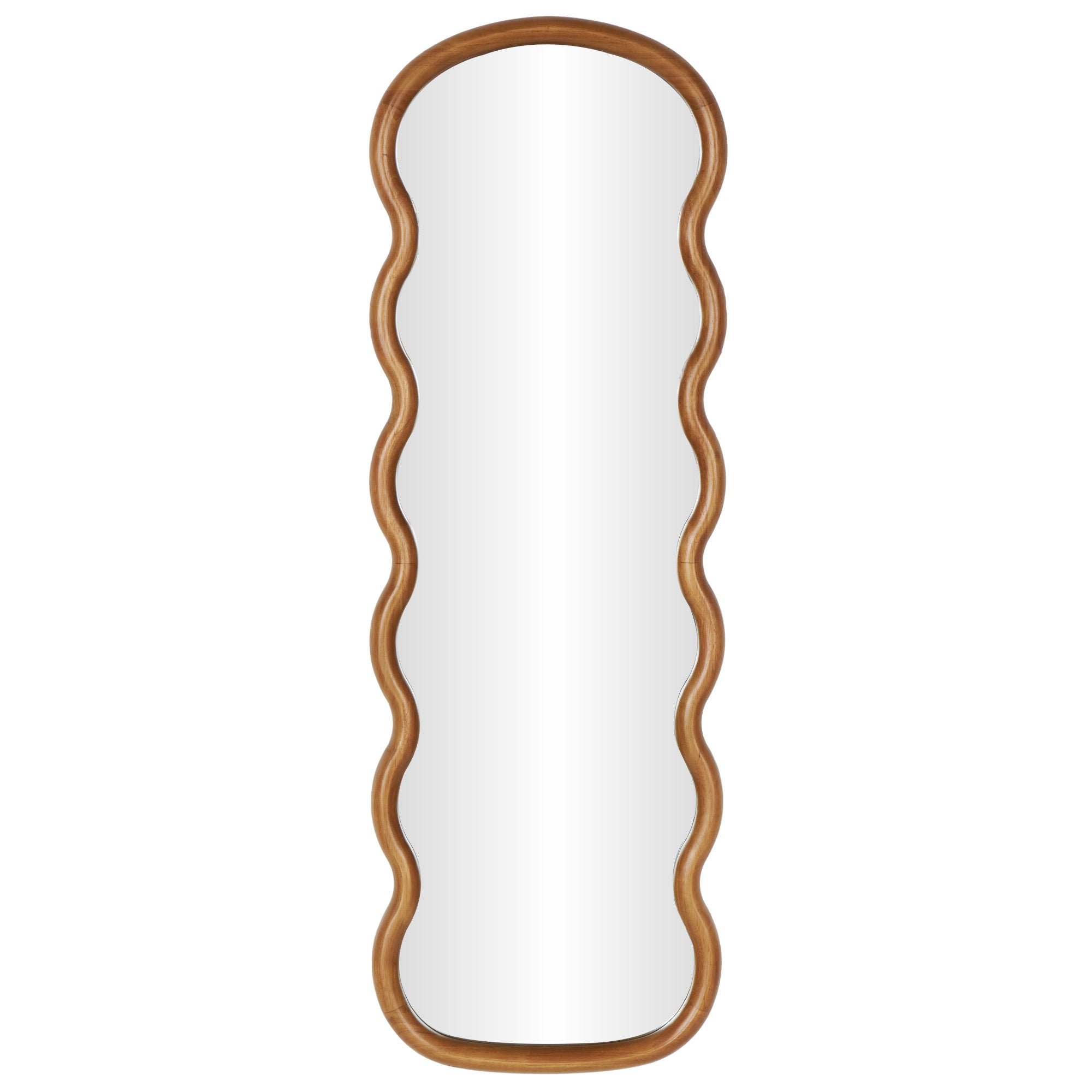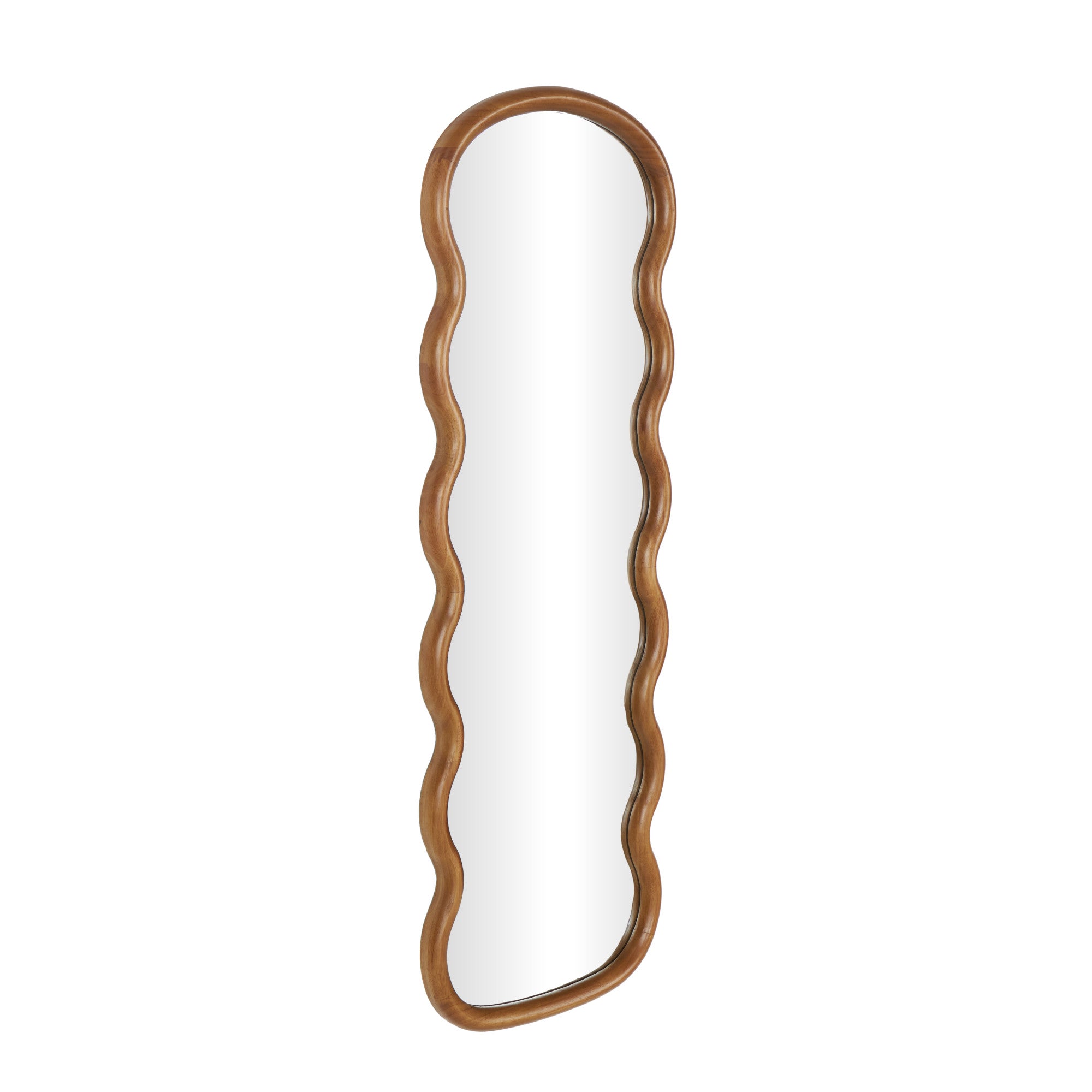 •This wood entryway mirror features a unique wavy design that adds character to any space