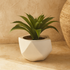 •Matte faux plant showcases a natural stem arrangement set in a solid faceted round planter, enhancing its visual appeal