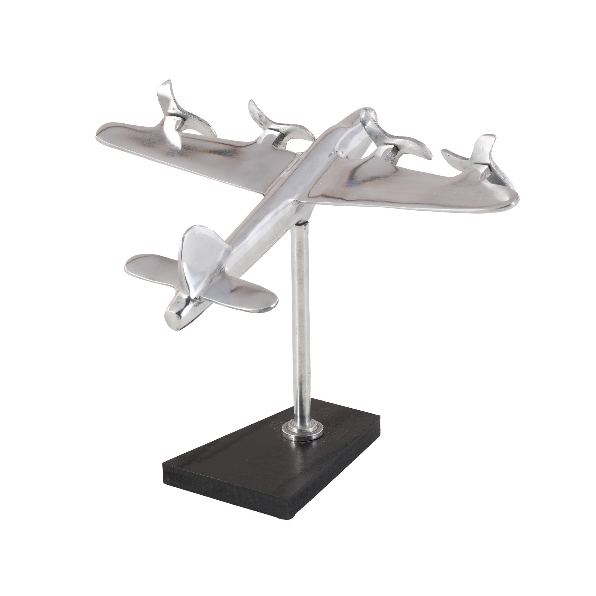 Let these accent pieces provide a sense of style to your home atmosphere by displaying them on top of a shelf, countertop, mantel, or an accent table. Place this airplane home decor statue in your hobby room or traditional style living room for a touch of aviation charm. Designed with felt or rubber stoppers at the base that prevent scratching furniture and table tops, as well as sliding around. This item ships in 1 carton. Please note that this item is for decorative use only. Aluminum sculpture makes a great gift for any occasion. Suitable for indoor use only. This item ships fully assembled in one piece. Made in India. This is a single statue. Traditional style.