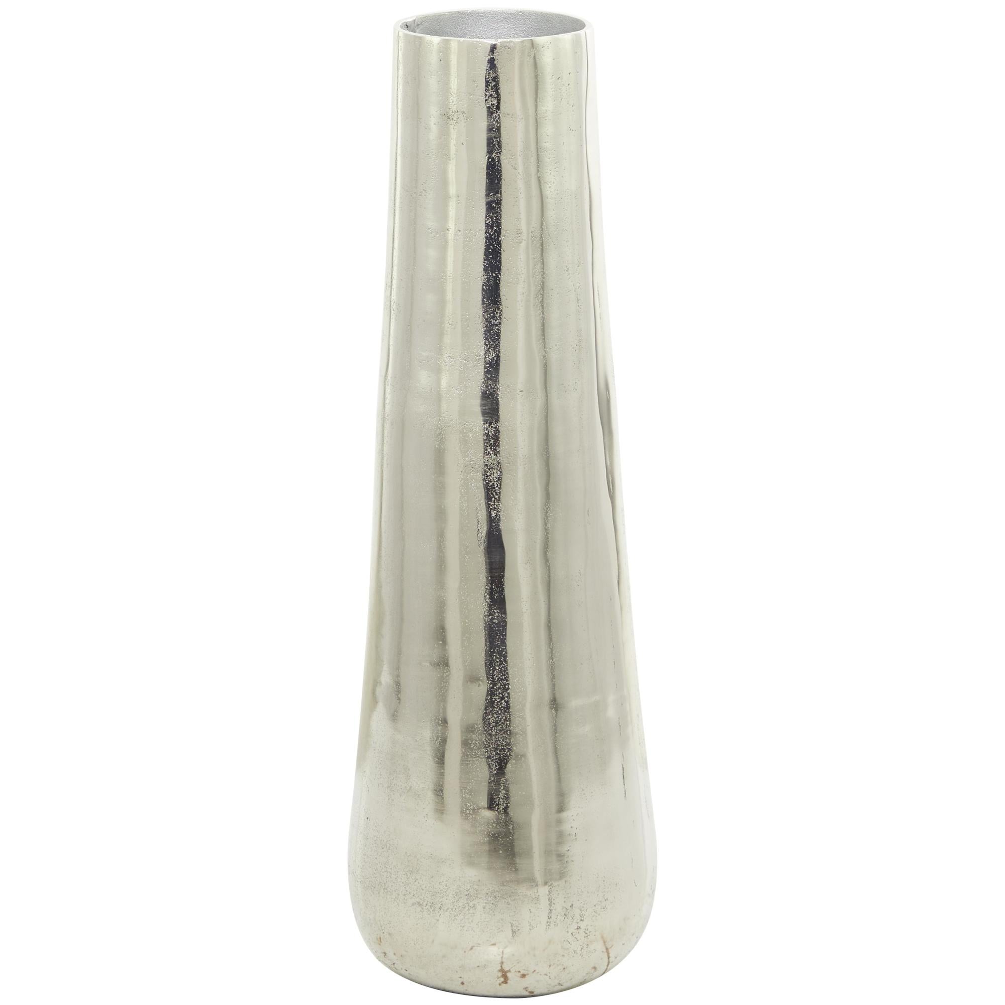 Adorn your living room or entryway corners with this centerpiece vase for an upscale design that pairs well with contemporary accent chairs or consoles. Designed with felt or rubber stoppers at the base that prevent scratching furniture and table tops, as well as sliding around. This item ships in 1 carton. Suitable for indoor use only. This item ships fully assembled in one piece. Made in India. This is a single vase. Contemporary style. Vase has a 5.50 in mouth opening.