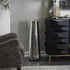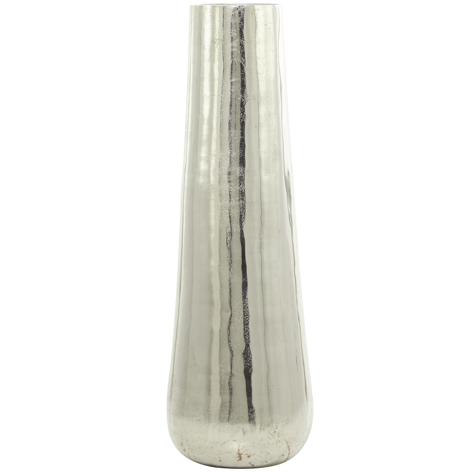 •The polished vase for dried flowers flaunts a tall, round tapered body with slight distressed texture and rounded base