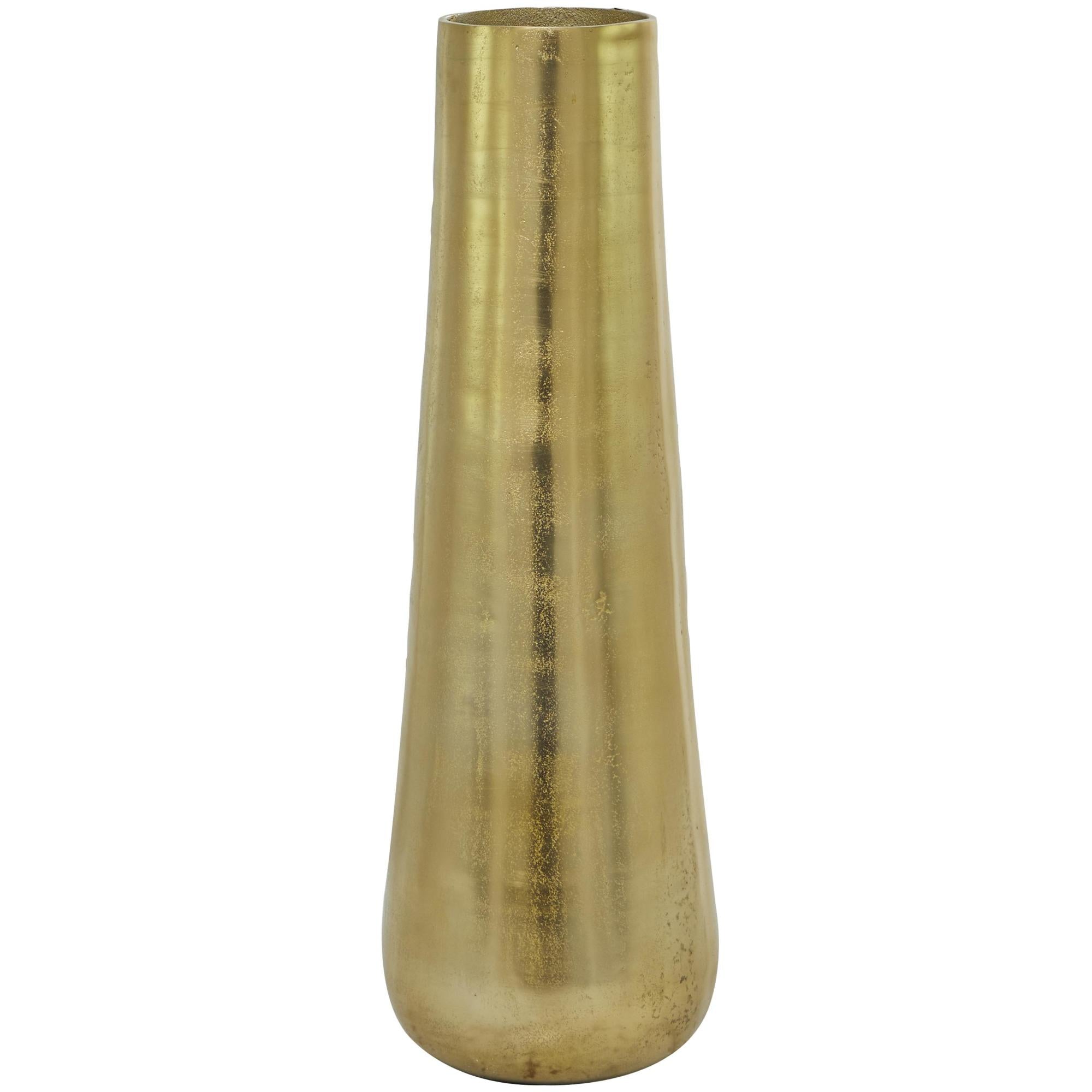 •The contemporary vase for home decor is molded with aluminum into a tall and tapered structure with a wide opening