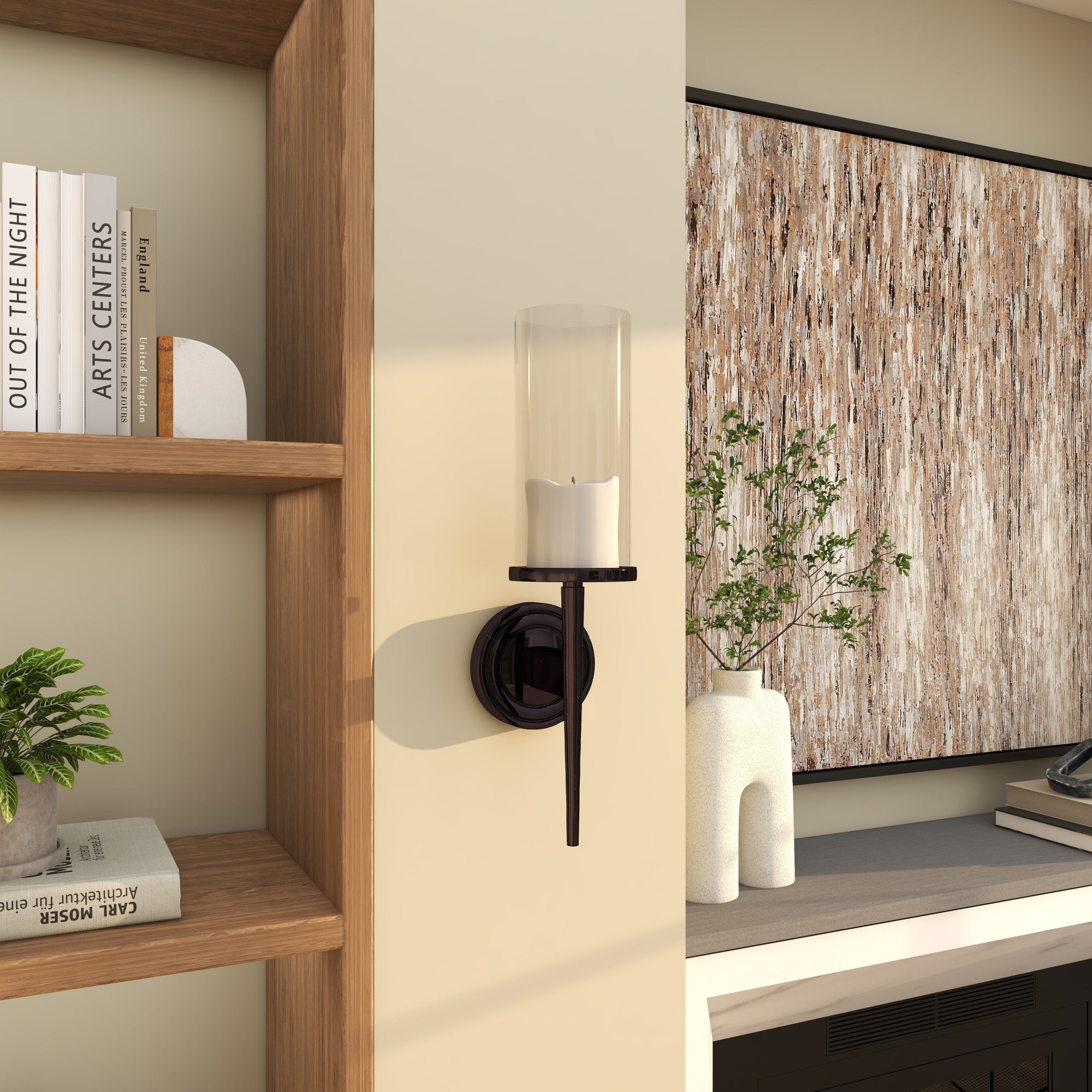 Decorate your open wall space with this stylish wall sconce for a radiant glow. A small piece of decor that make a big difference to give your home an instance refresh. Illuminate your living room with the candle sconce to create an inviting ambiance that combines sophistication with functionality. Can hold 1 pillar candle, not included. This item ships in 1 carton. Can be hung vertically using the keyholes; nails and screws not included. Suitable for indoor use only. This item ships fully assembled in one piece. Made in India. This is a single candle sconce. Modern style.