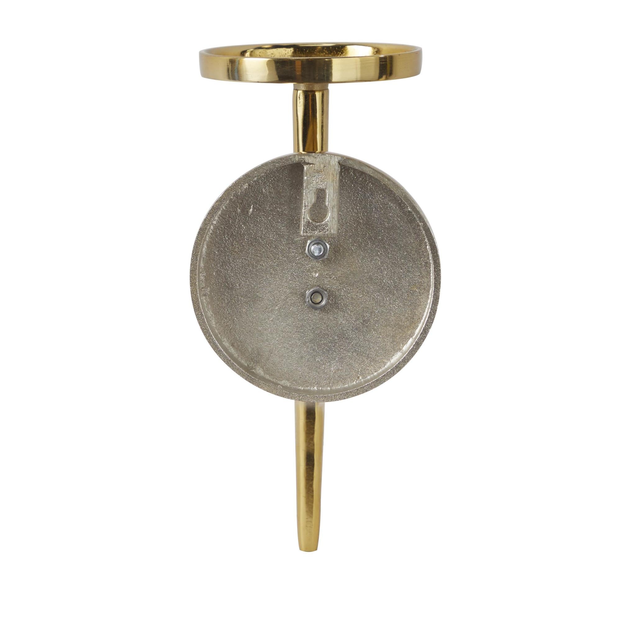 •The modern wall mount candle holder features a welded aluminum base that is given a polished finish and furnished with a molded glass holder