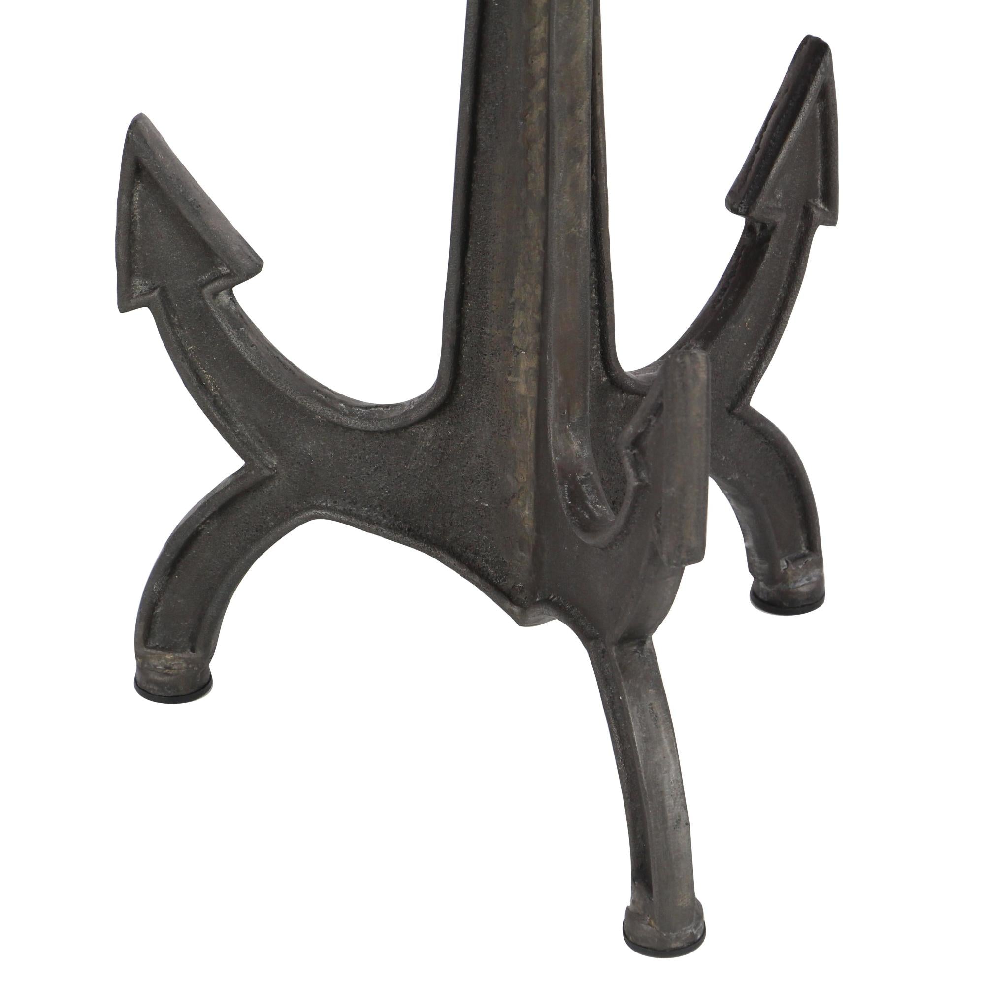 •This iron accent table stands out with its unique features such as a round top and a metal anchor-shaped body supported by a sturdy tripod base