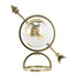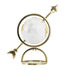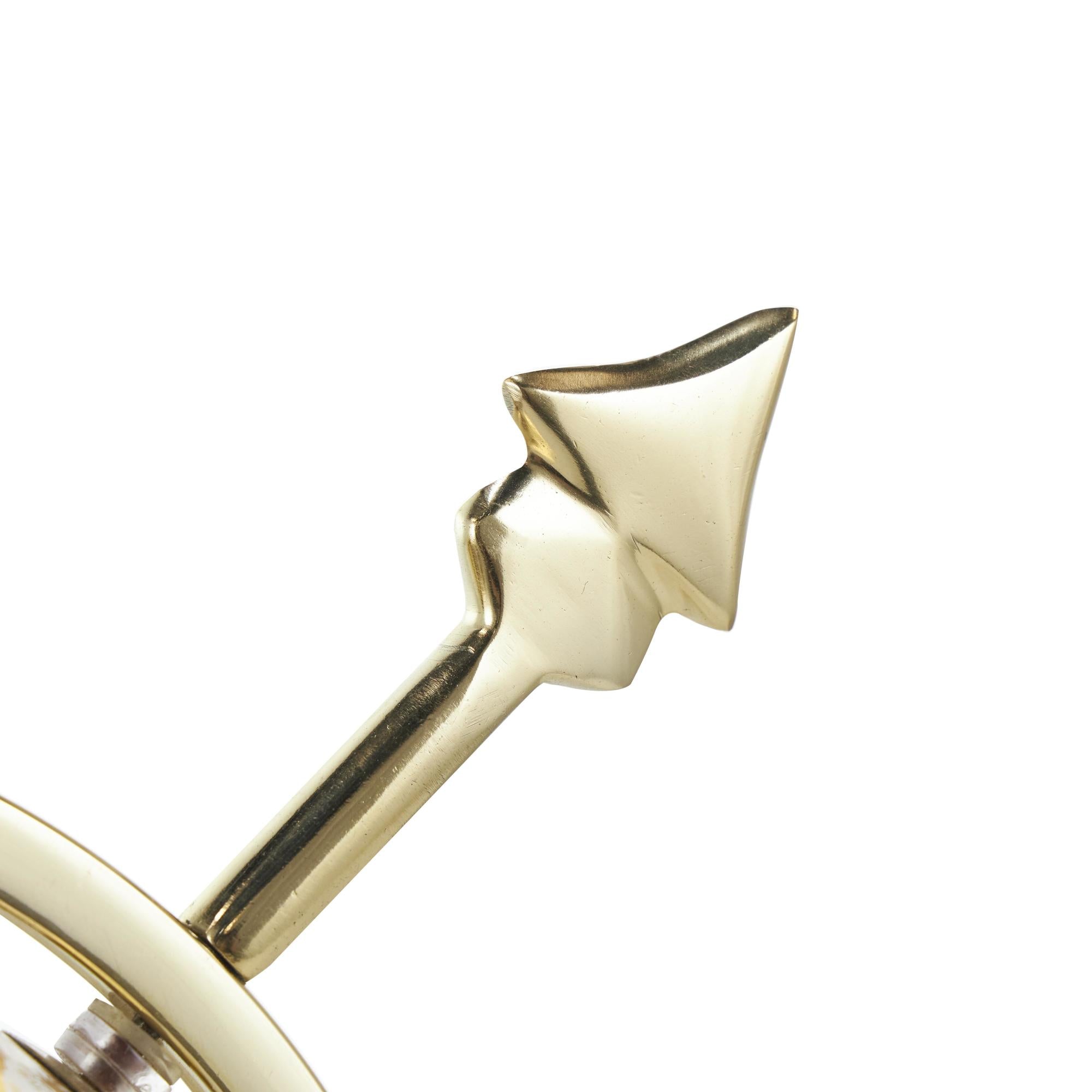 •Polished globe on a stand boasts a bold arrow-shaped frame, suspended in a round ring, with map details that combines modern geometric aesthetics with functional elegance